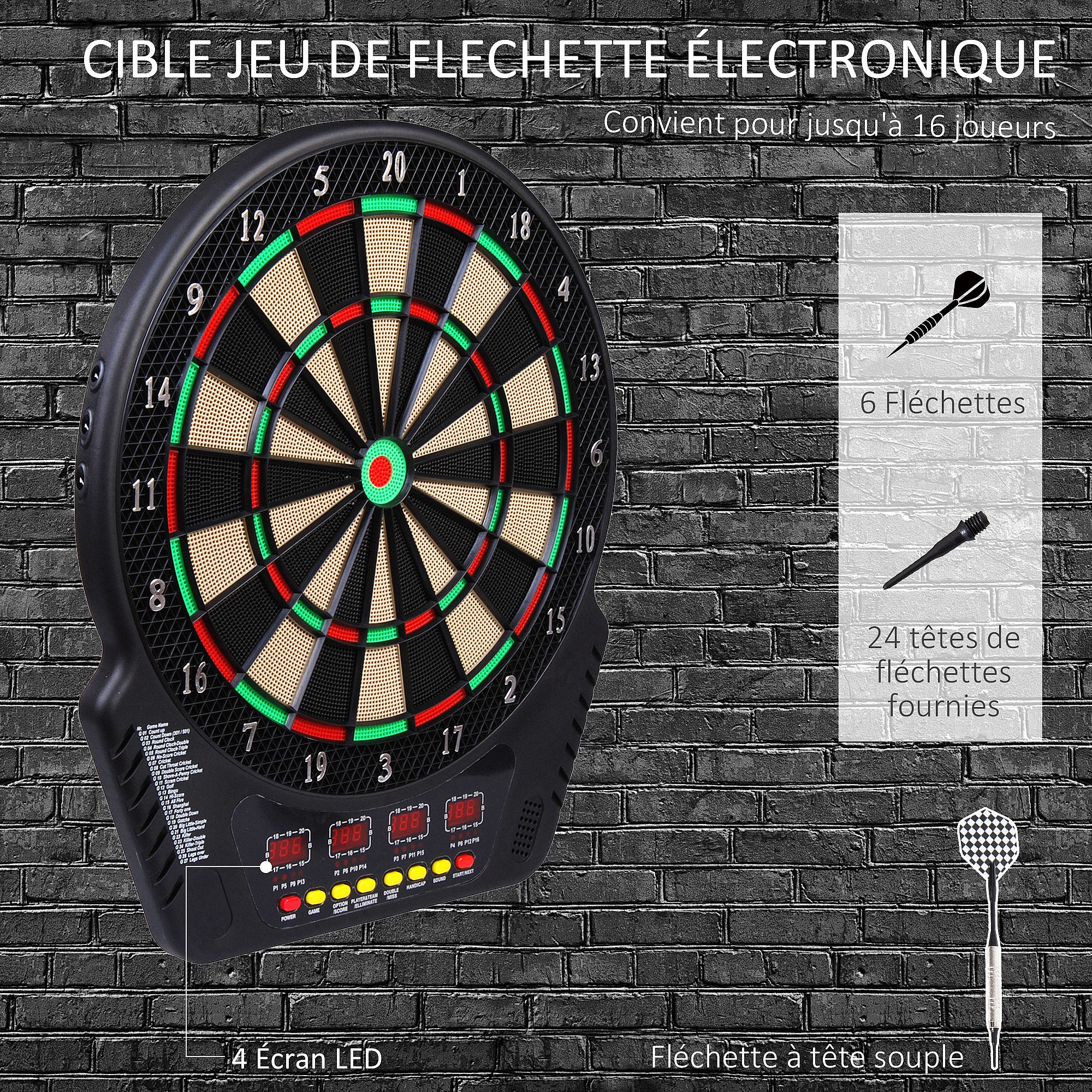 Cible jeu de fléchettes électronique 26 jeux jusqu'à 8 joueurs affichage LCD haut-parleur noir
