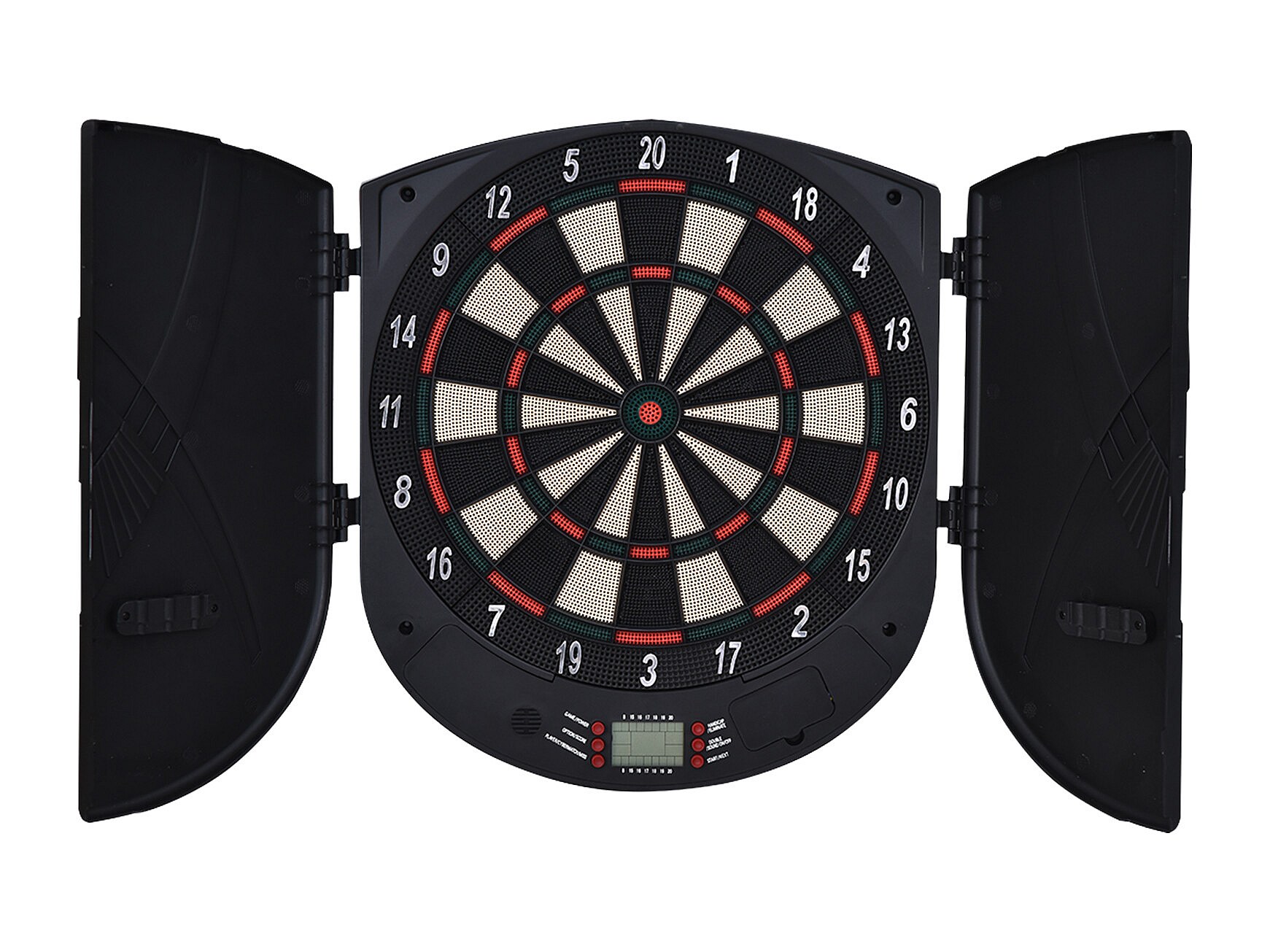 Cible jeu de fléchettes électronique refermable 27 jeux 202 variations jusqu'à 8 joueurs affichage LED haut-parleur noir