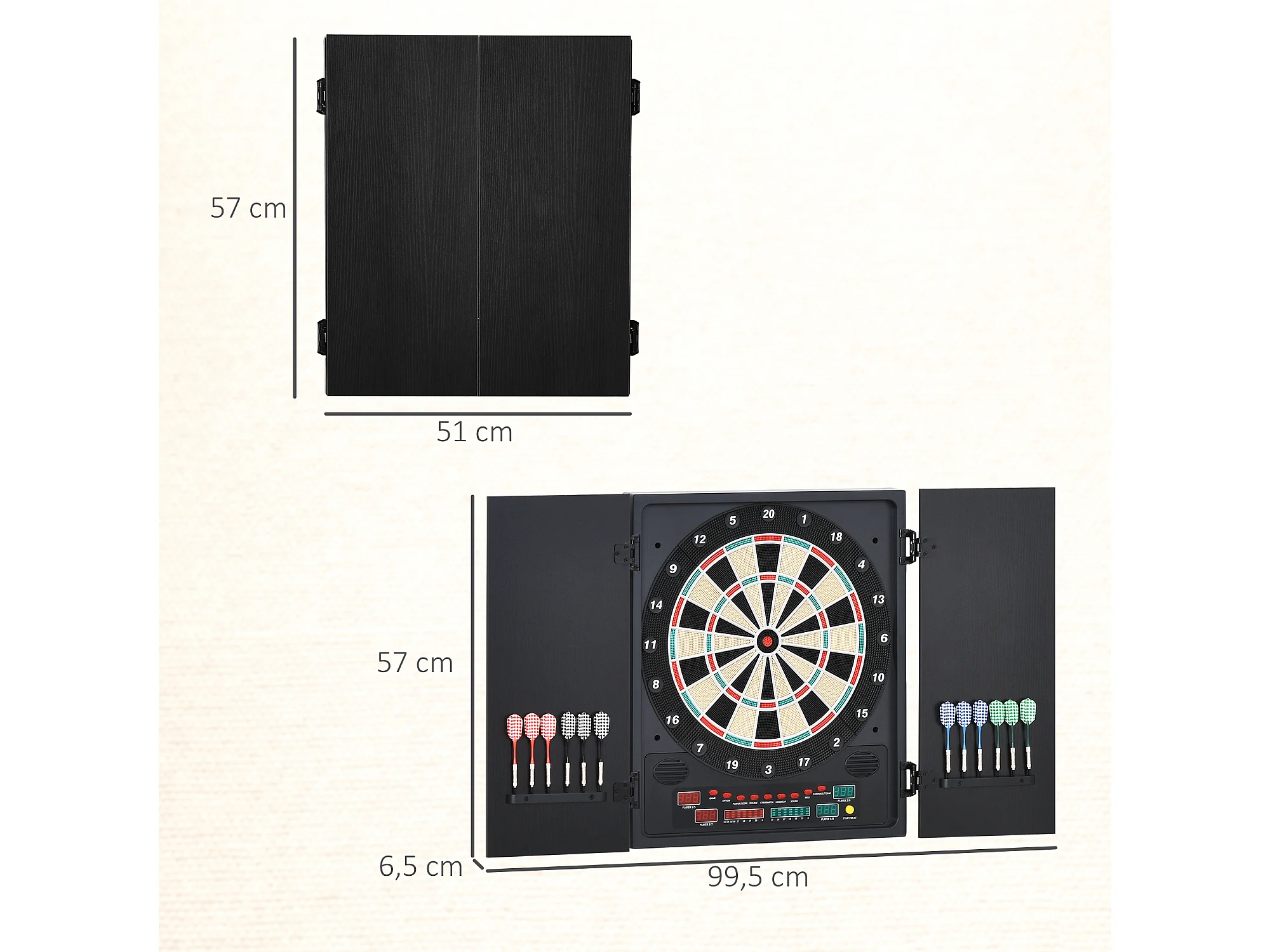 Cible jeu de fléchettes électronique refermable 27 jeux 202 variations jusqu'à 8 joueurs affichage LED haut-parleur noir