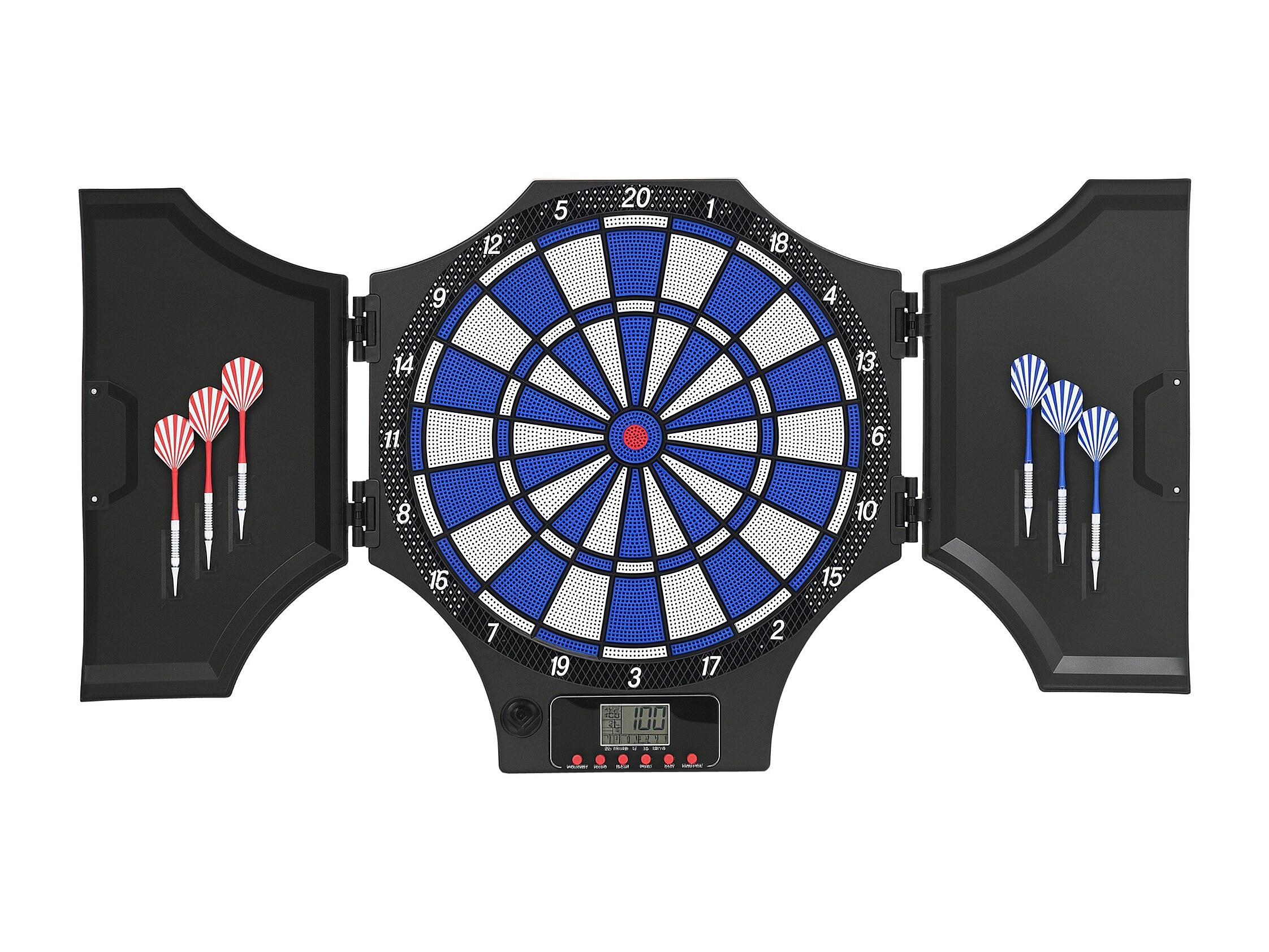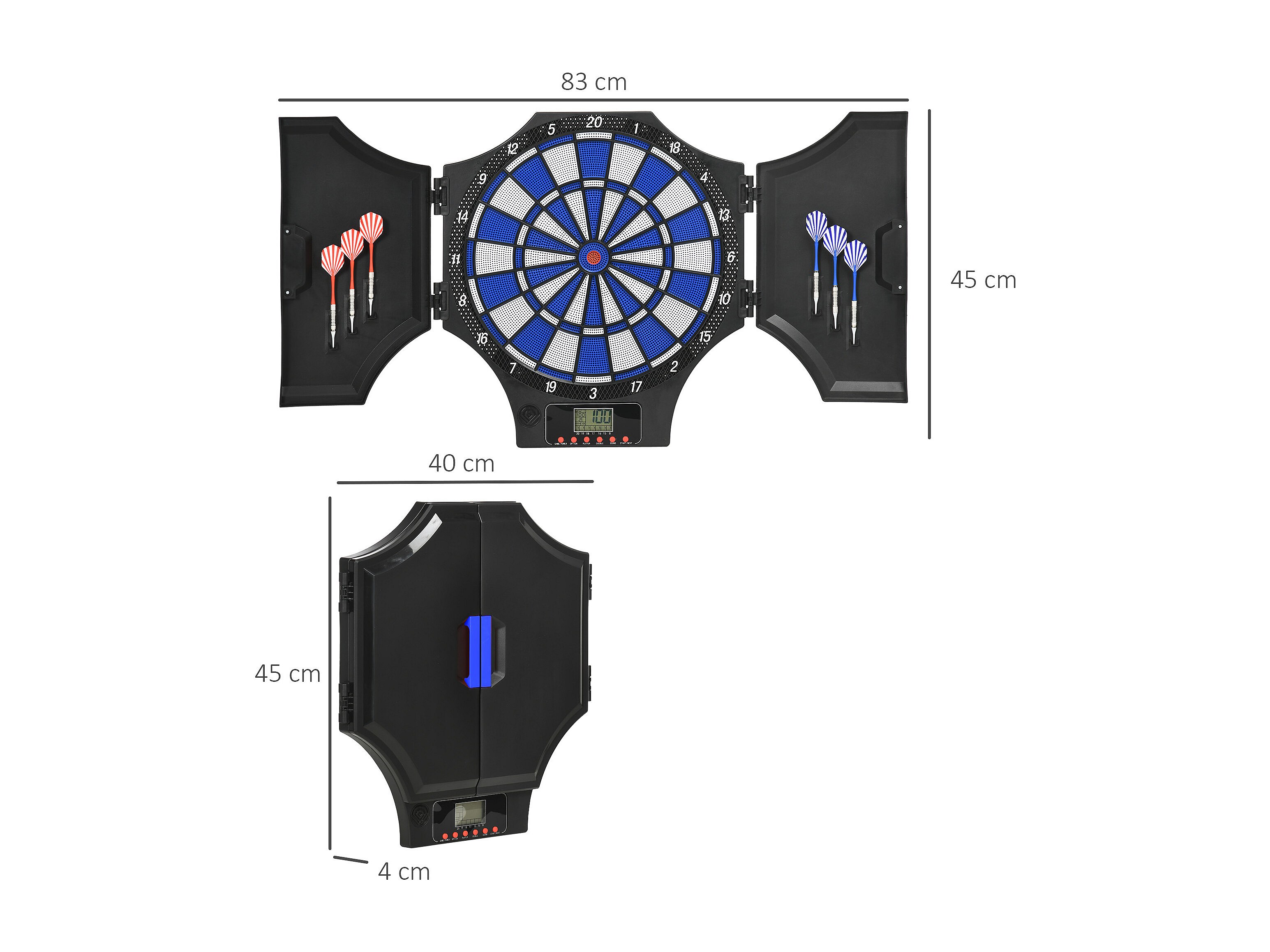 Cible jeu de fléchettes électronique refermable 27 jeux 202 variations jusqu'à 8 joueurs affichage LED haut-parleur noir