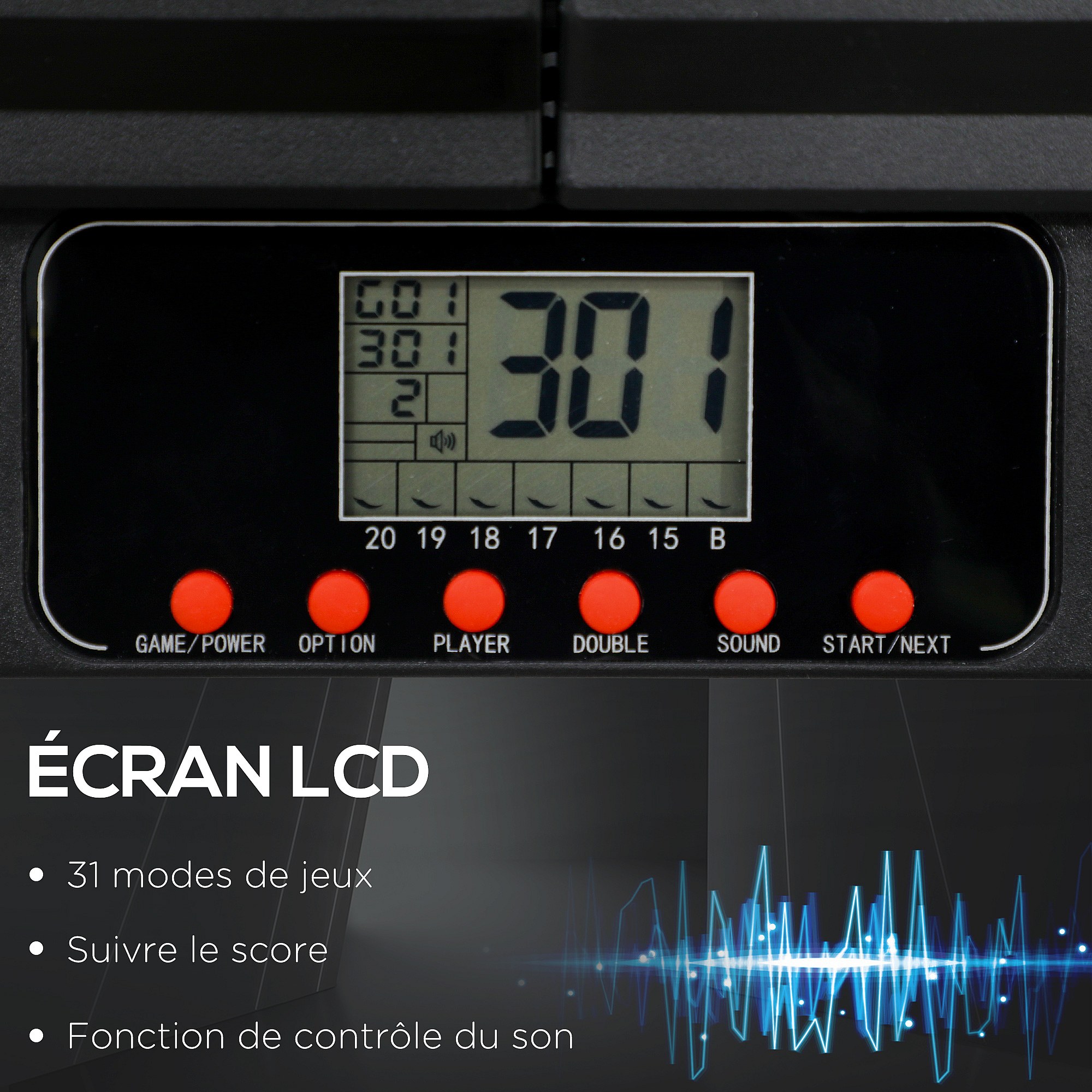 Cible jeu de fléchettes électronique refermable 31 jeux jusqu'à 8 joueurs affichage LCD haut-parleur noir