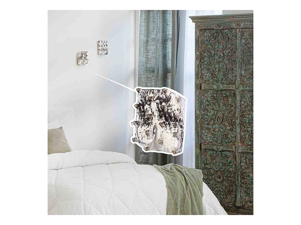 Patère murale en bois sculpté blanc 36x8x20.5h