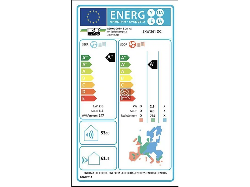 Climatisation mono-split 2,6 kW REMKO SKW 261 DC