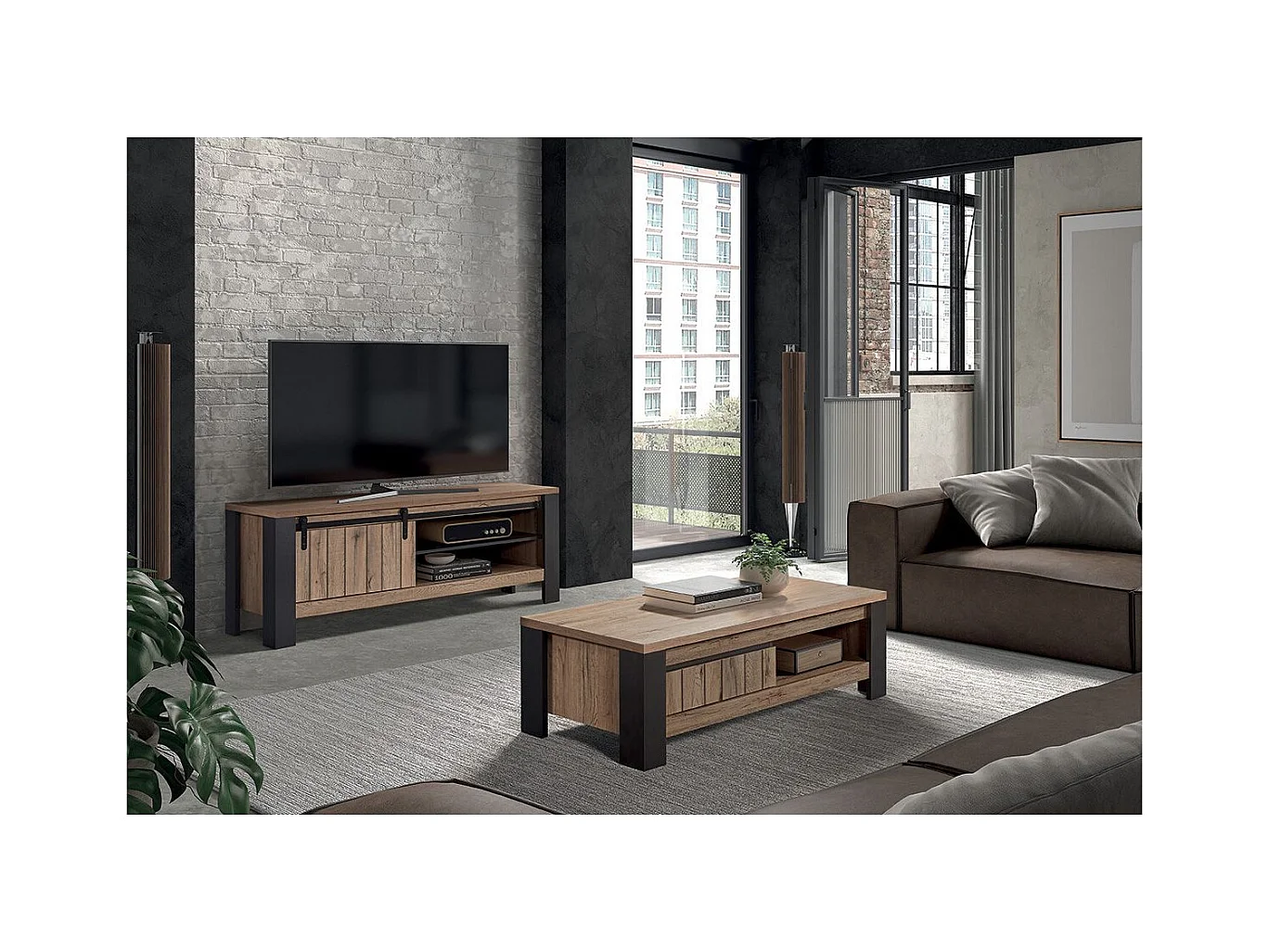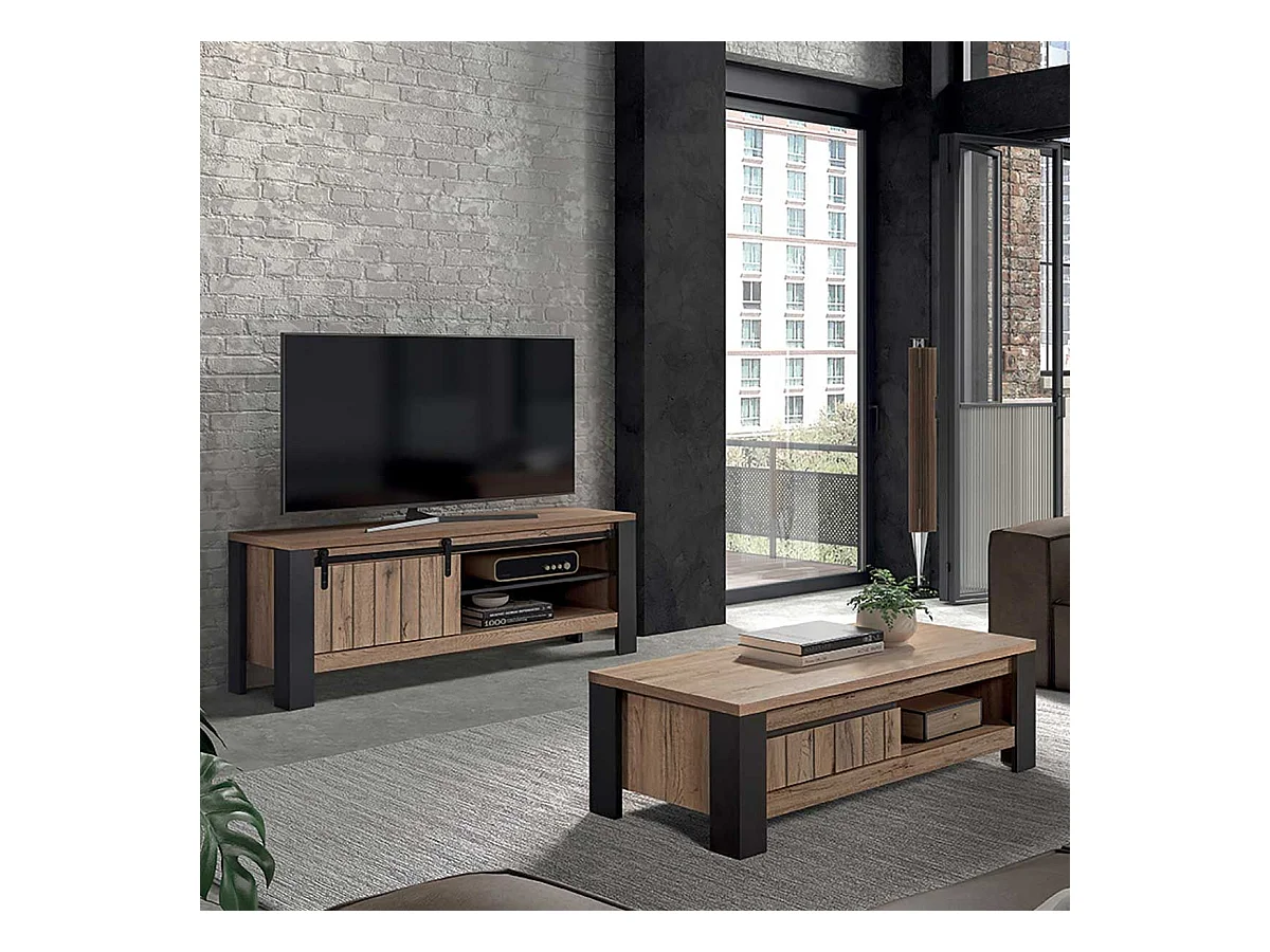 CLODIUS - Ensemble Salon Meuble TV et Table Basse 1 Tiroir et 1 Niche
