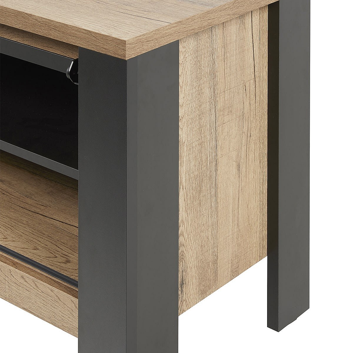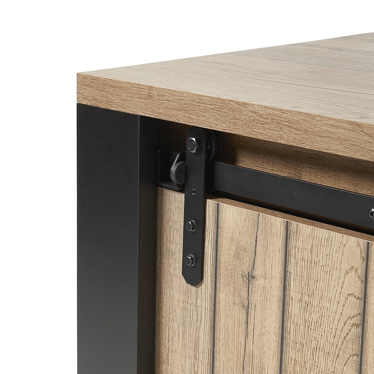 CLODIUS - Meuble TV 1 Porte Coulissante 2 Niches Métal et Aspect Bois