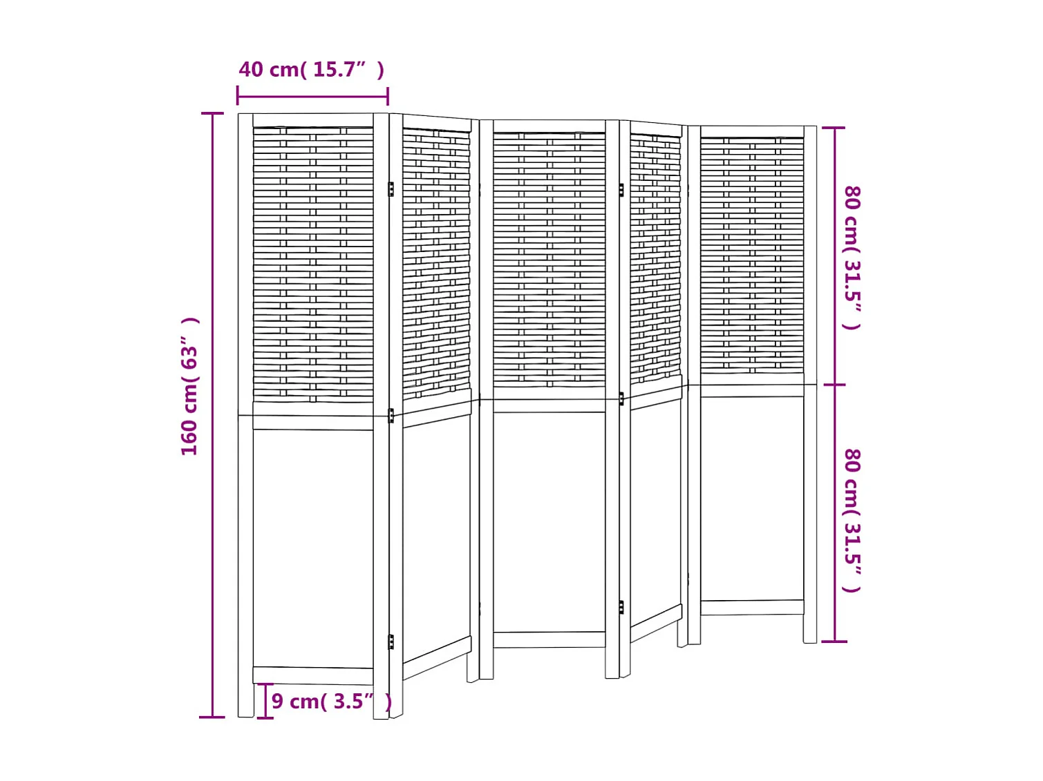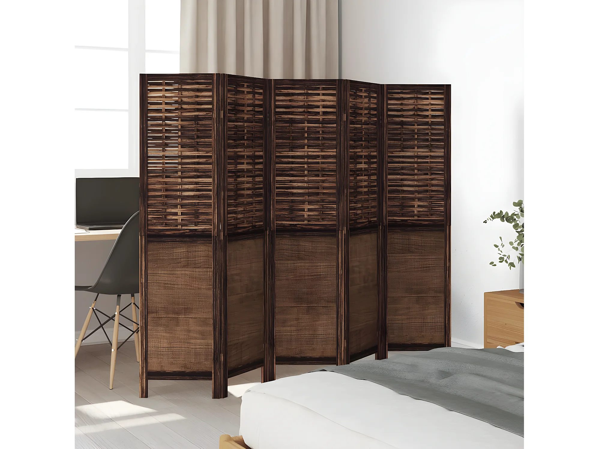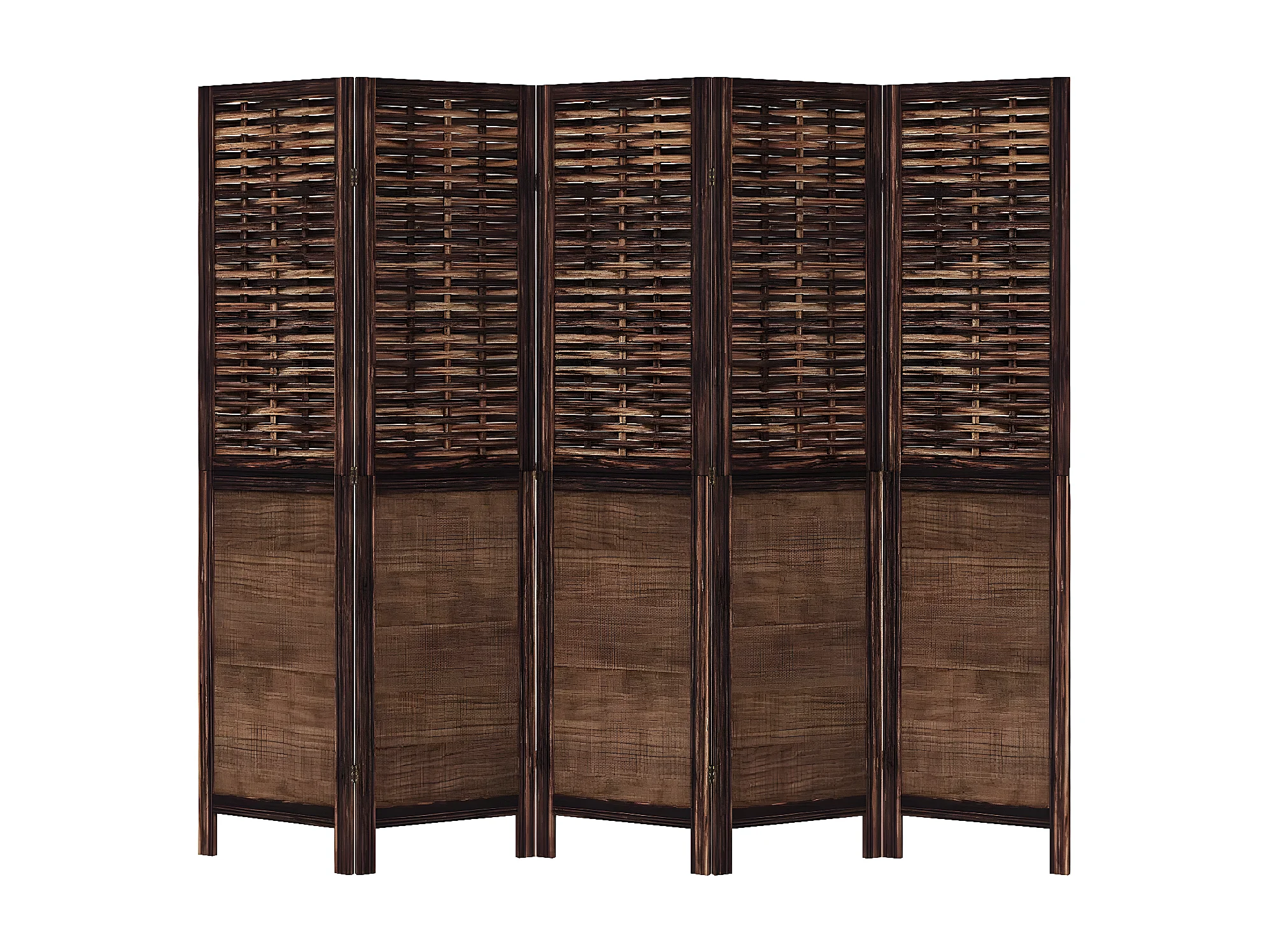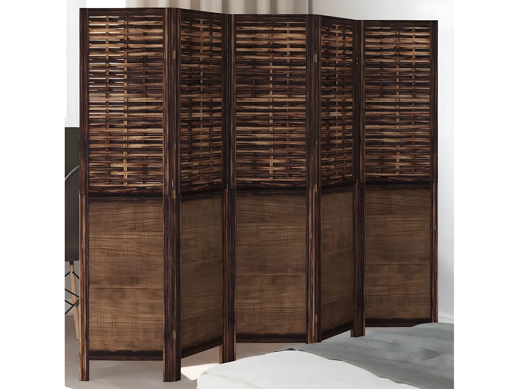 Cloison de séparation 5 panneaux marron foncé paulownia massif