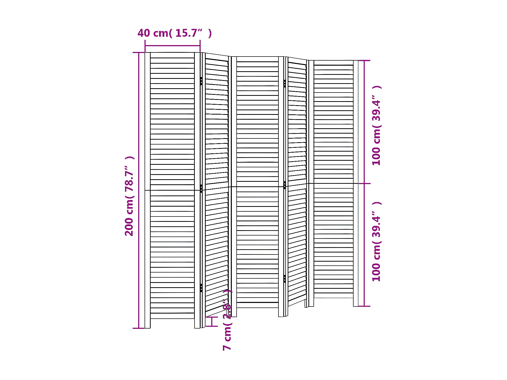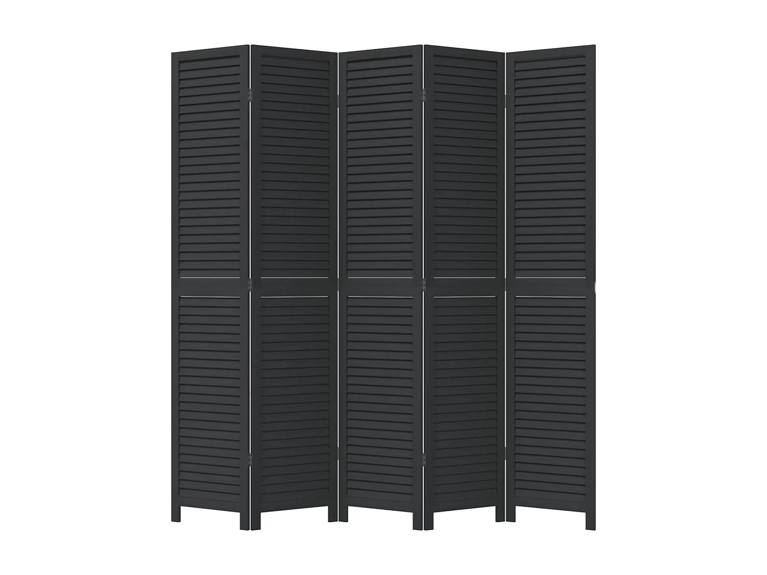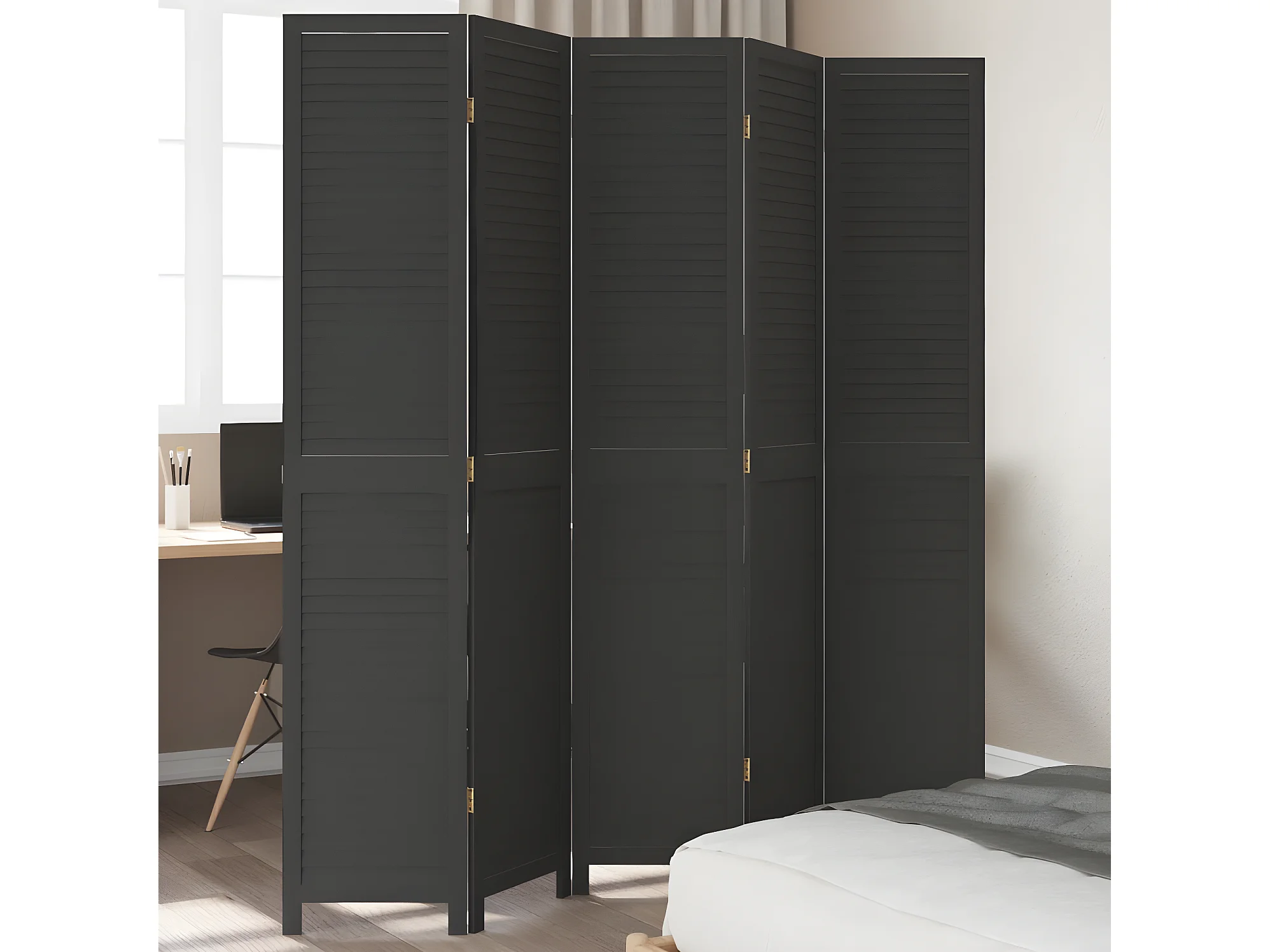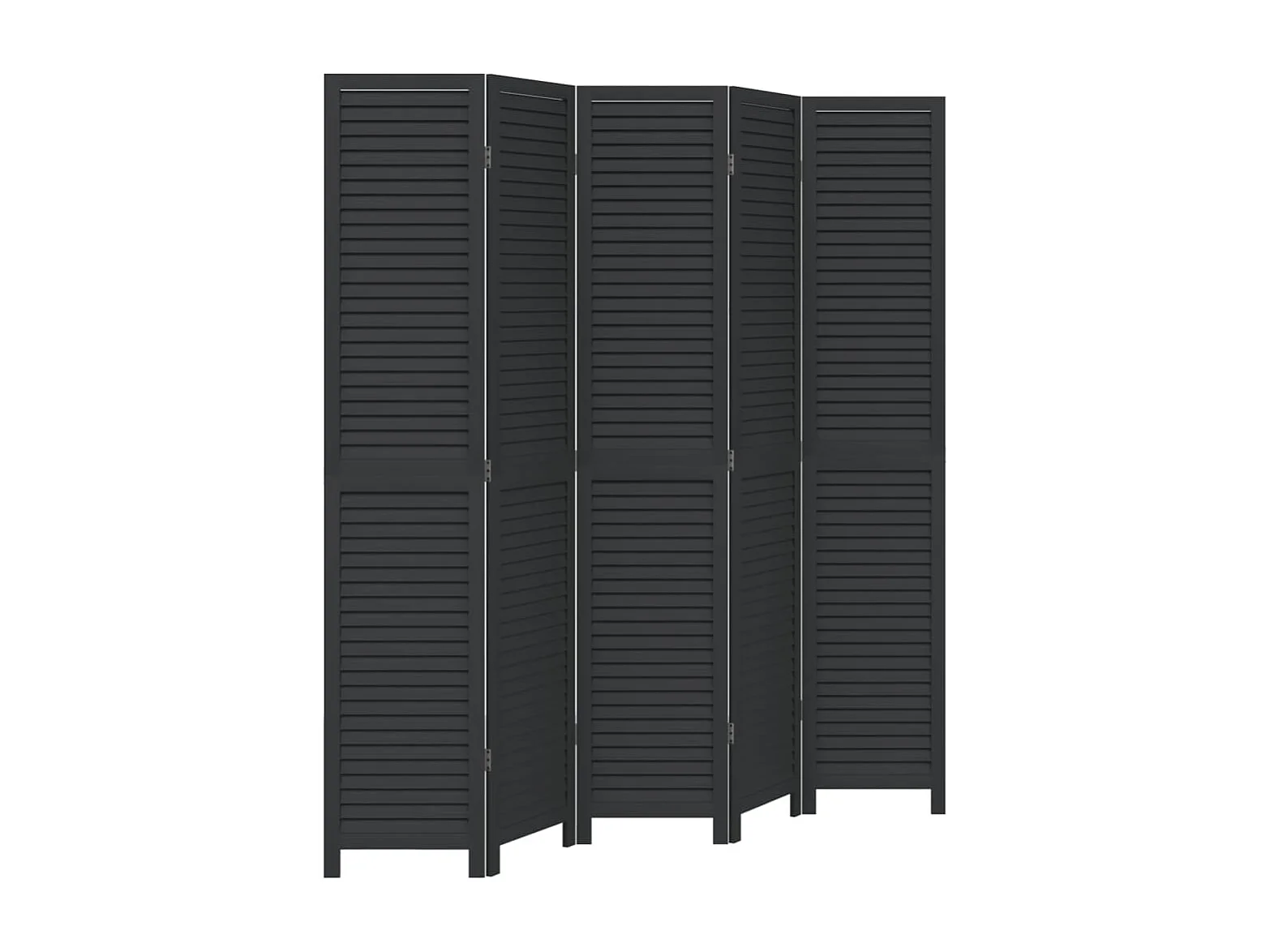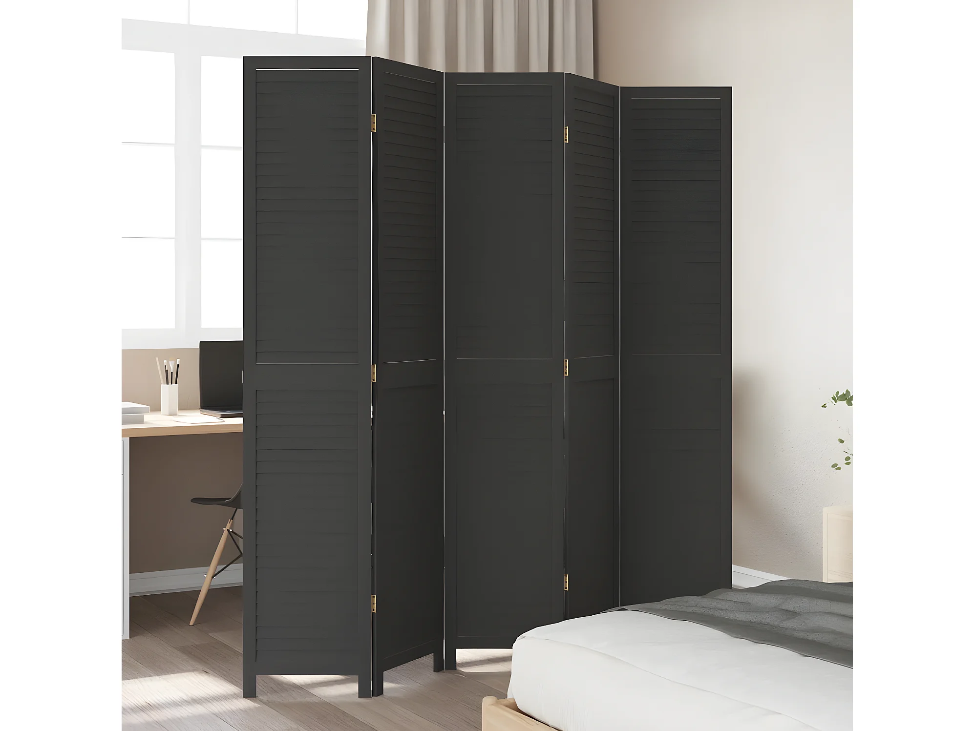 Cloison de séparation 5 panneaux noir bois de paulownia massif