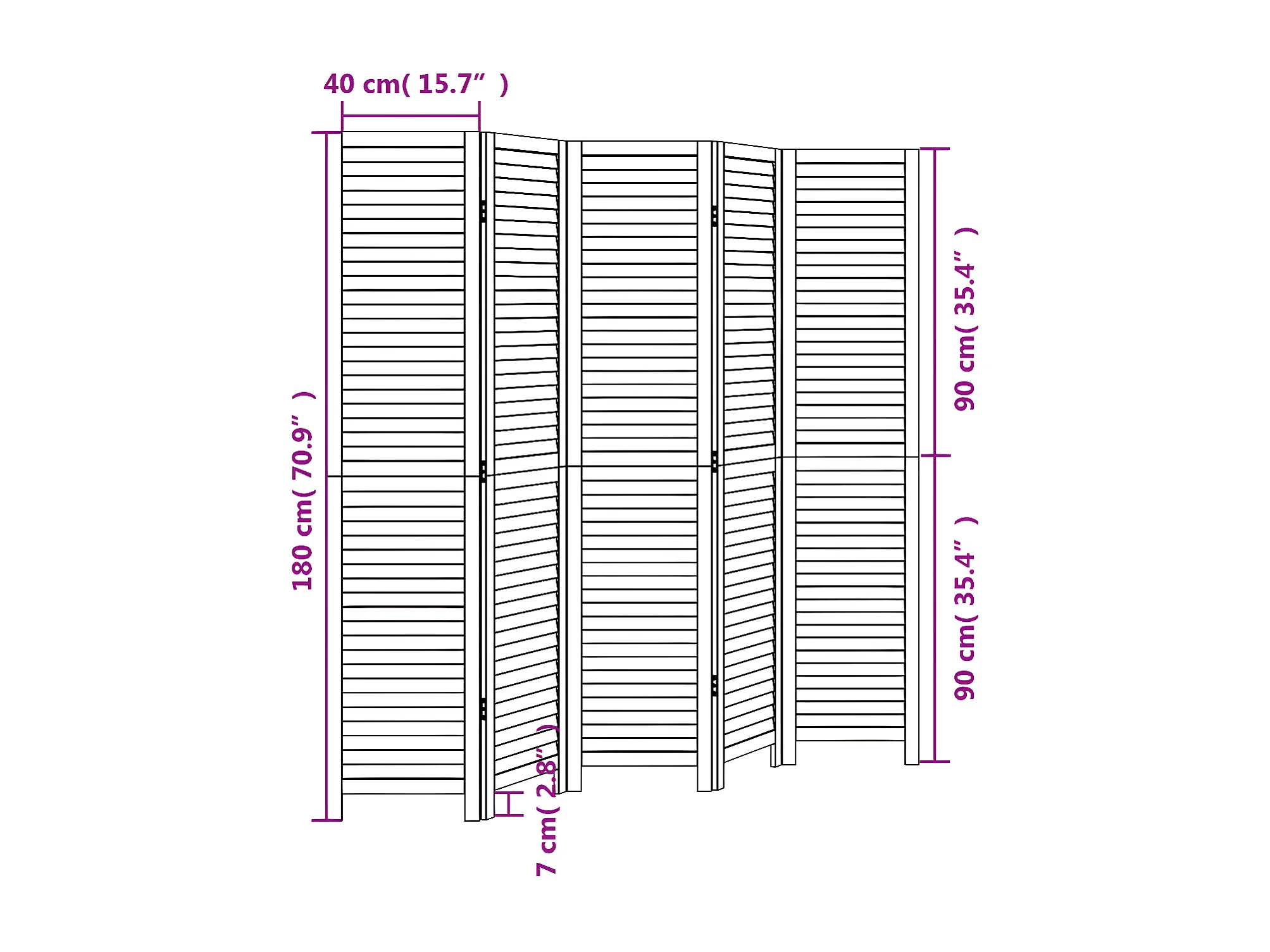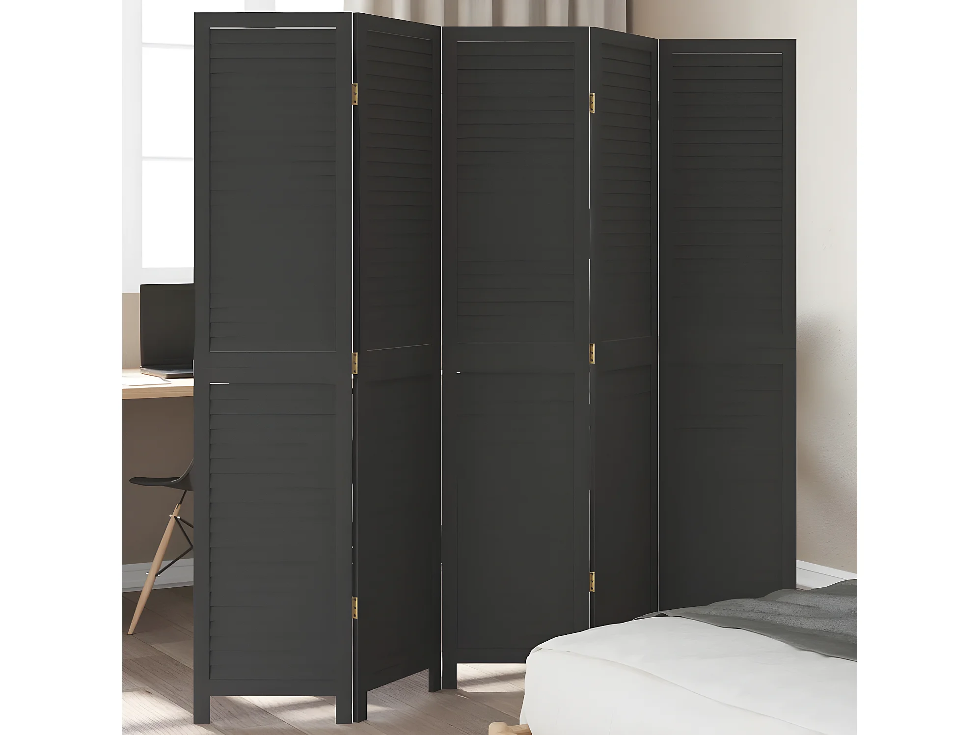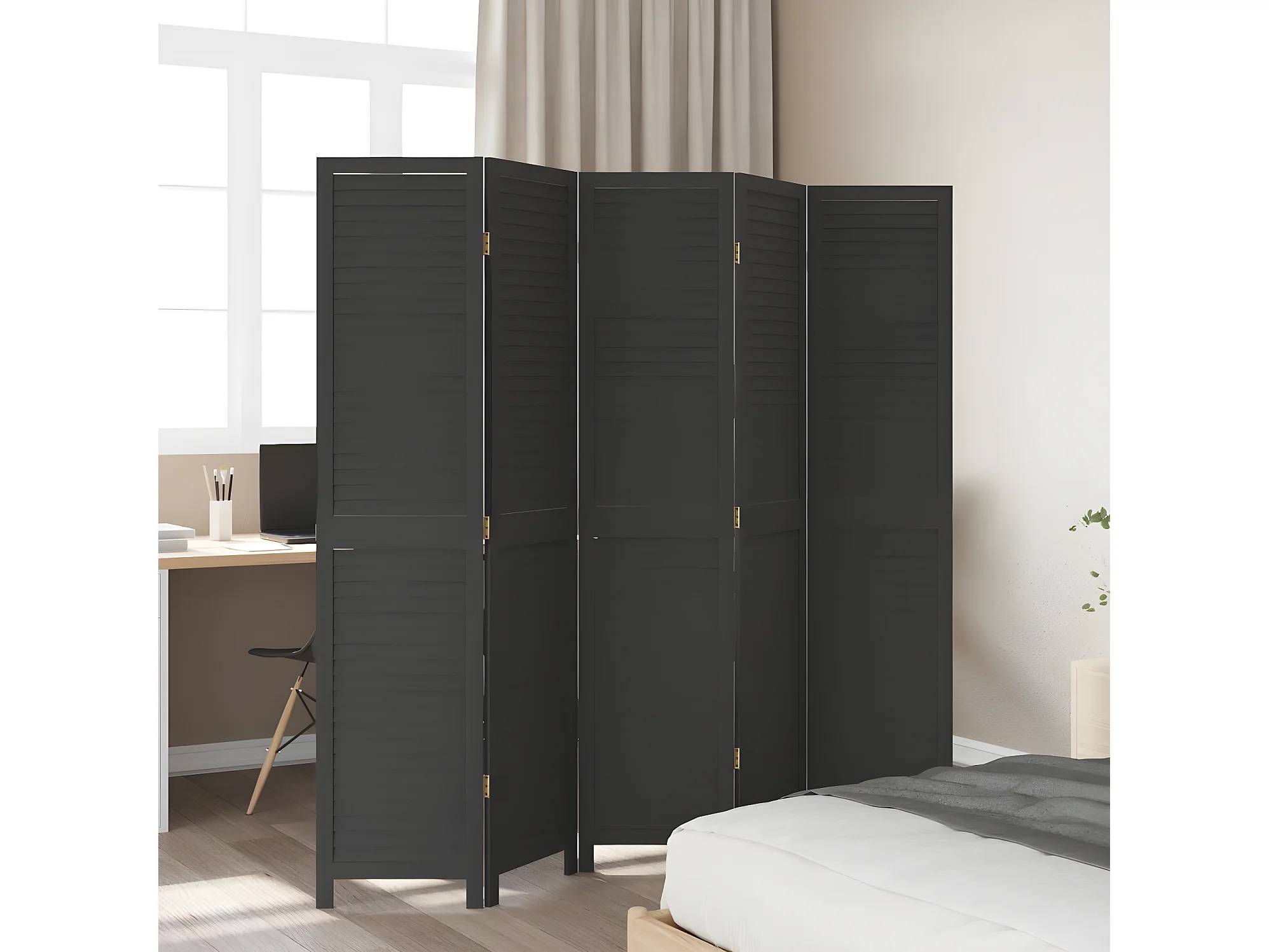 Cloison de séparation 5 panneaux noir bois de paulownia massif