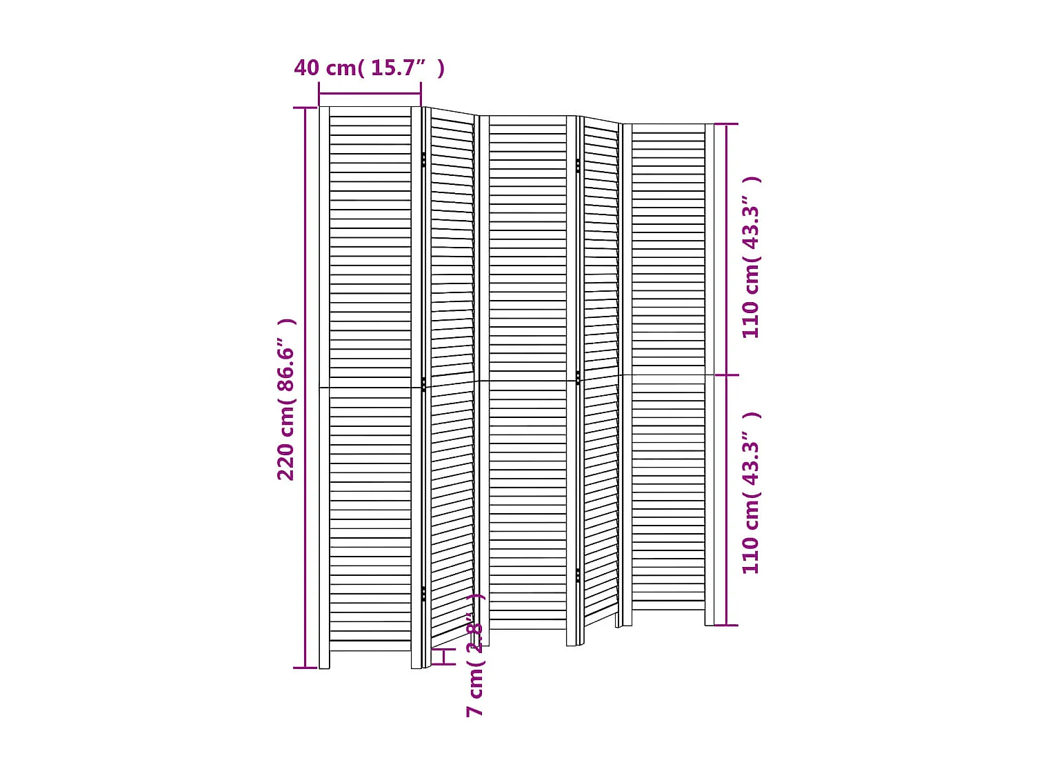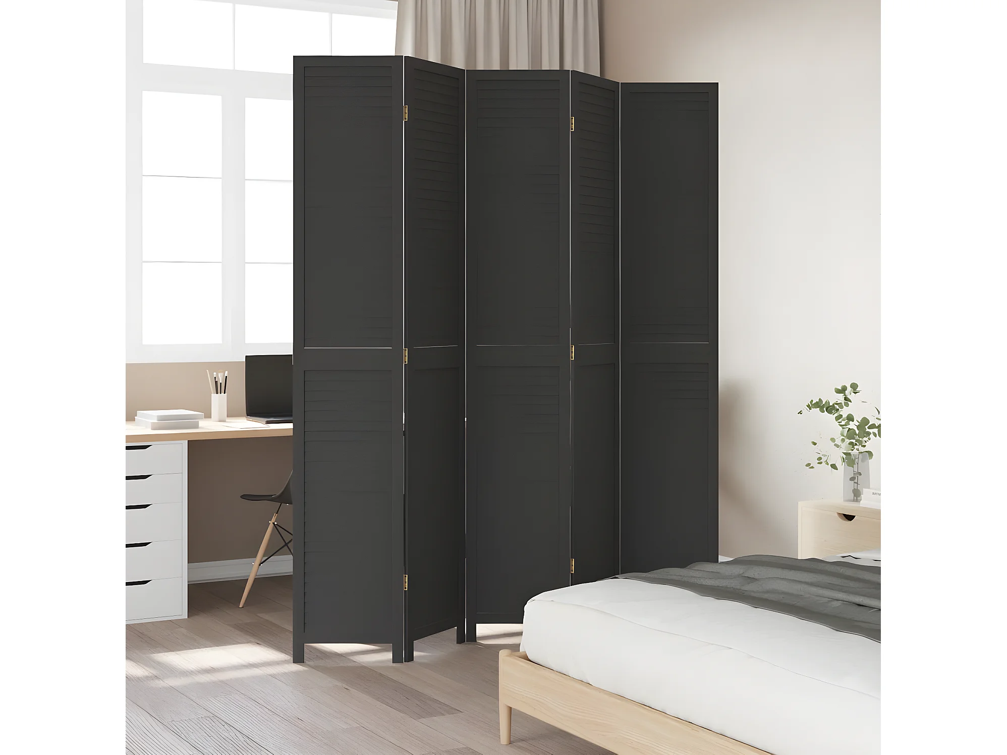 Cloison de séparation 5 panneaux noir bois de paulownia massif
