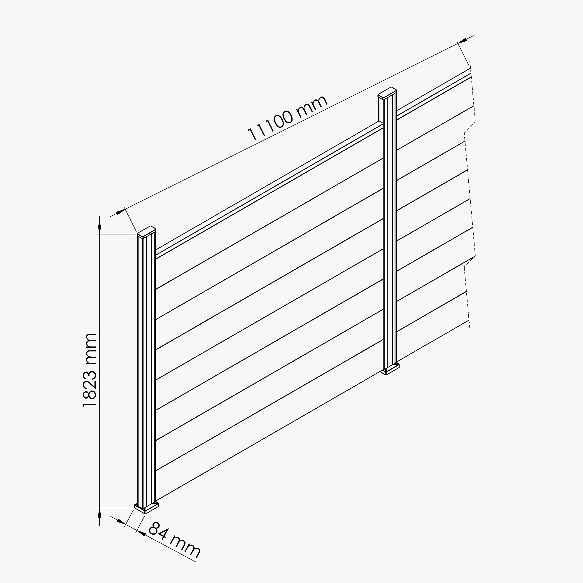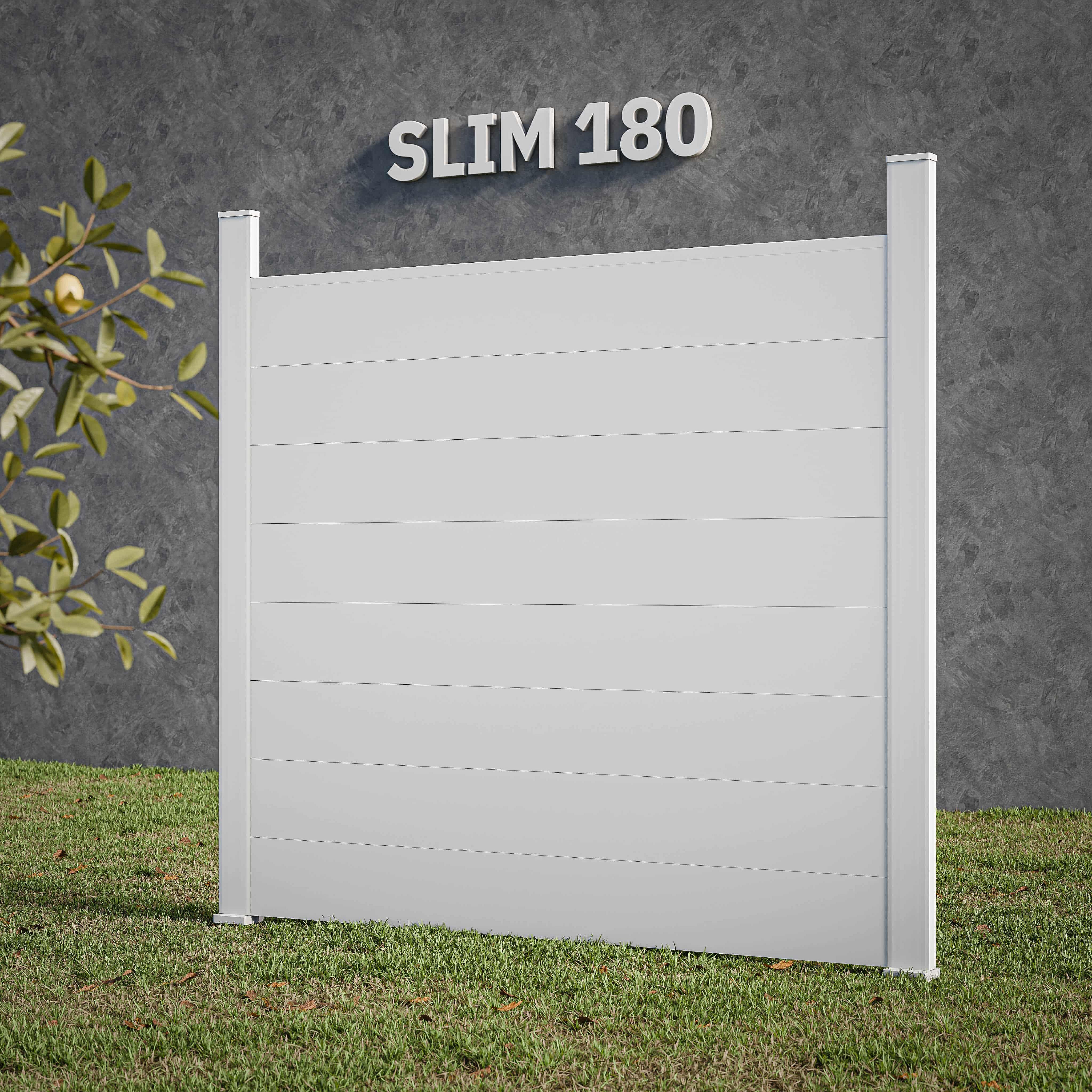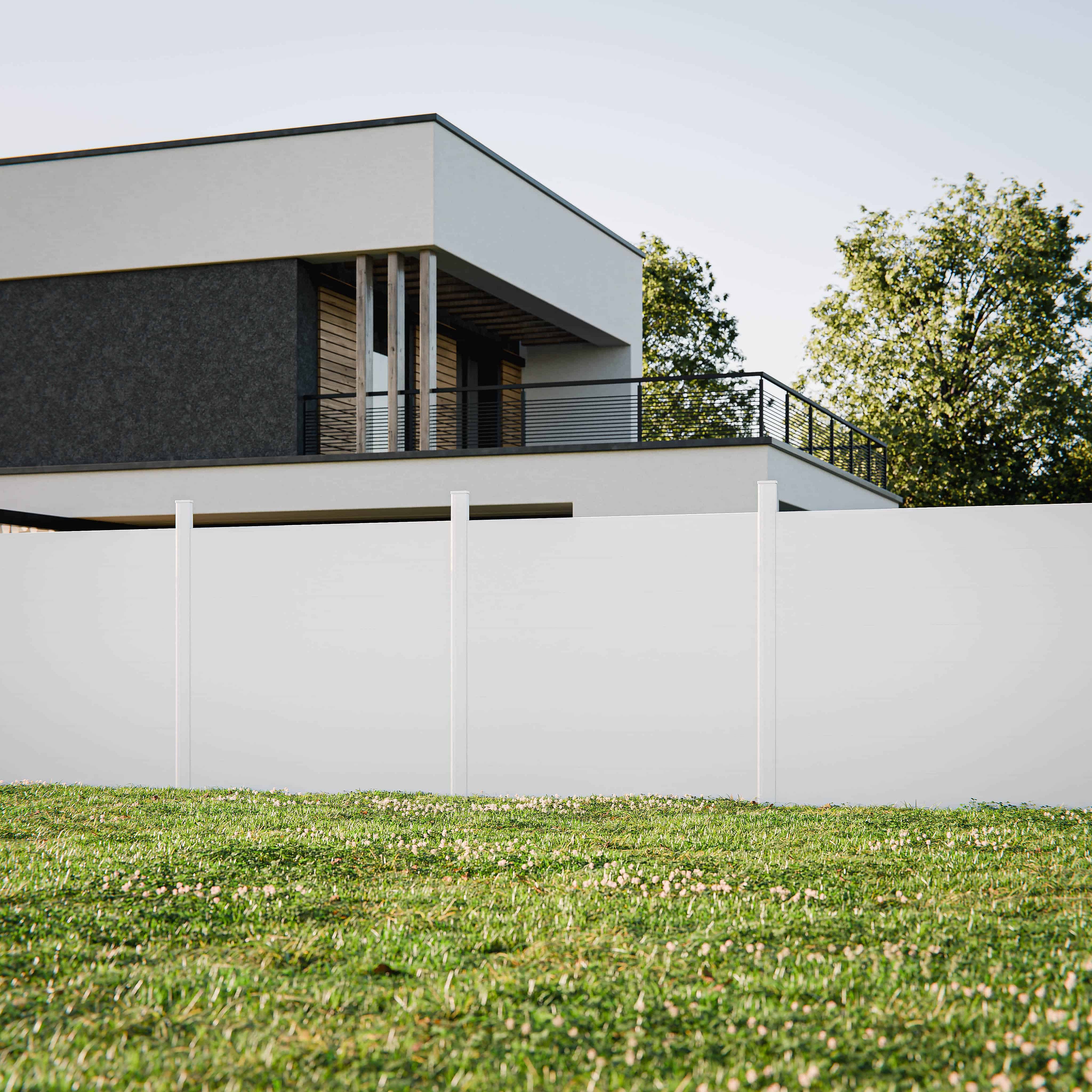 Kit Clôture SLIM PVC Blanc H. 180 cm x L. 11.10 m - 8 Soubassements