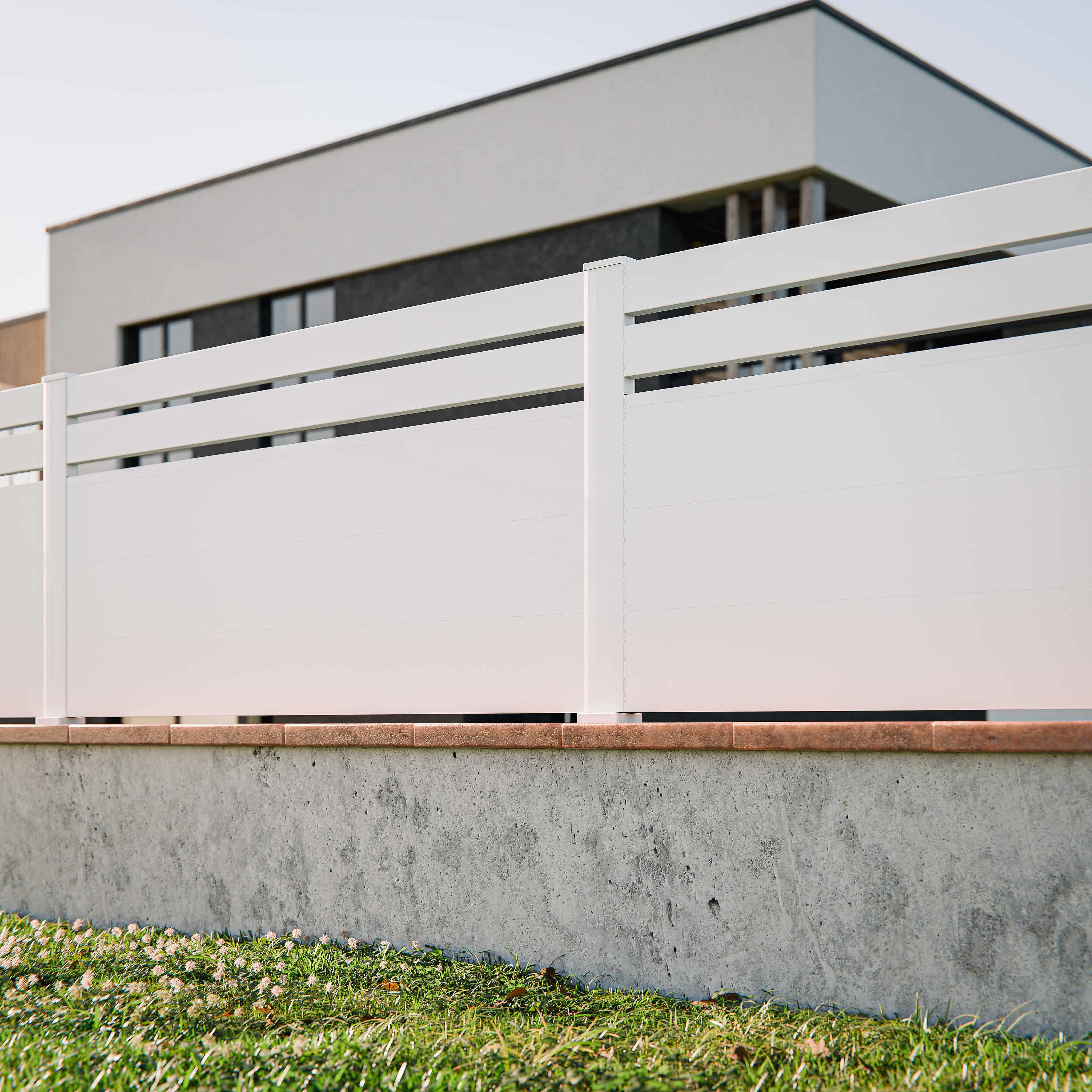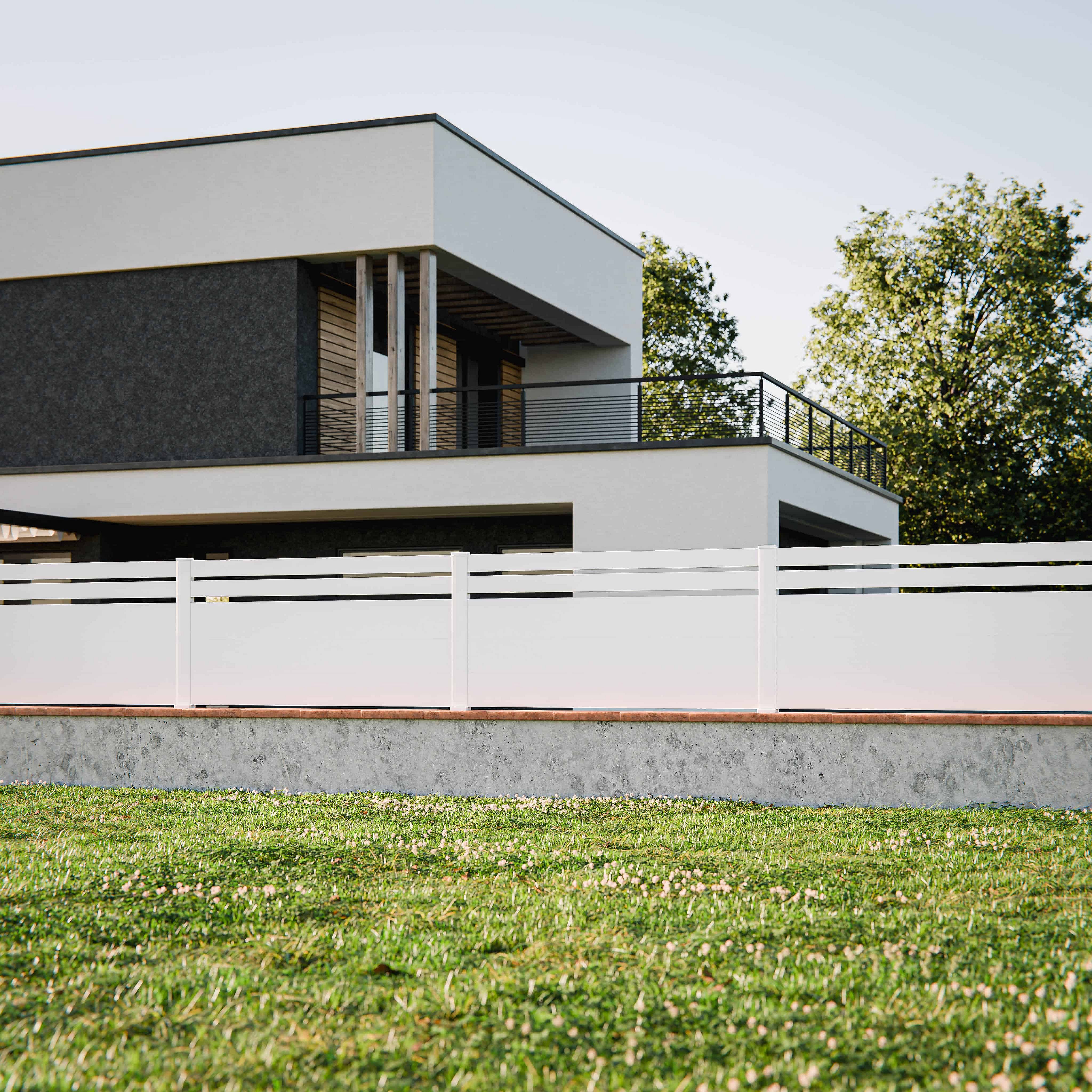 Kit Clôture SLIM PVC Blanc H. 90 cm x L. 5.60 m - 2 Lisses + 3 Soubassements