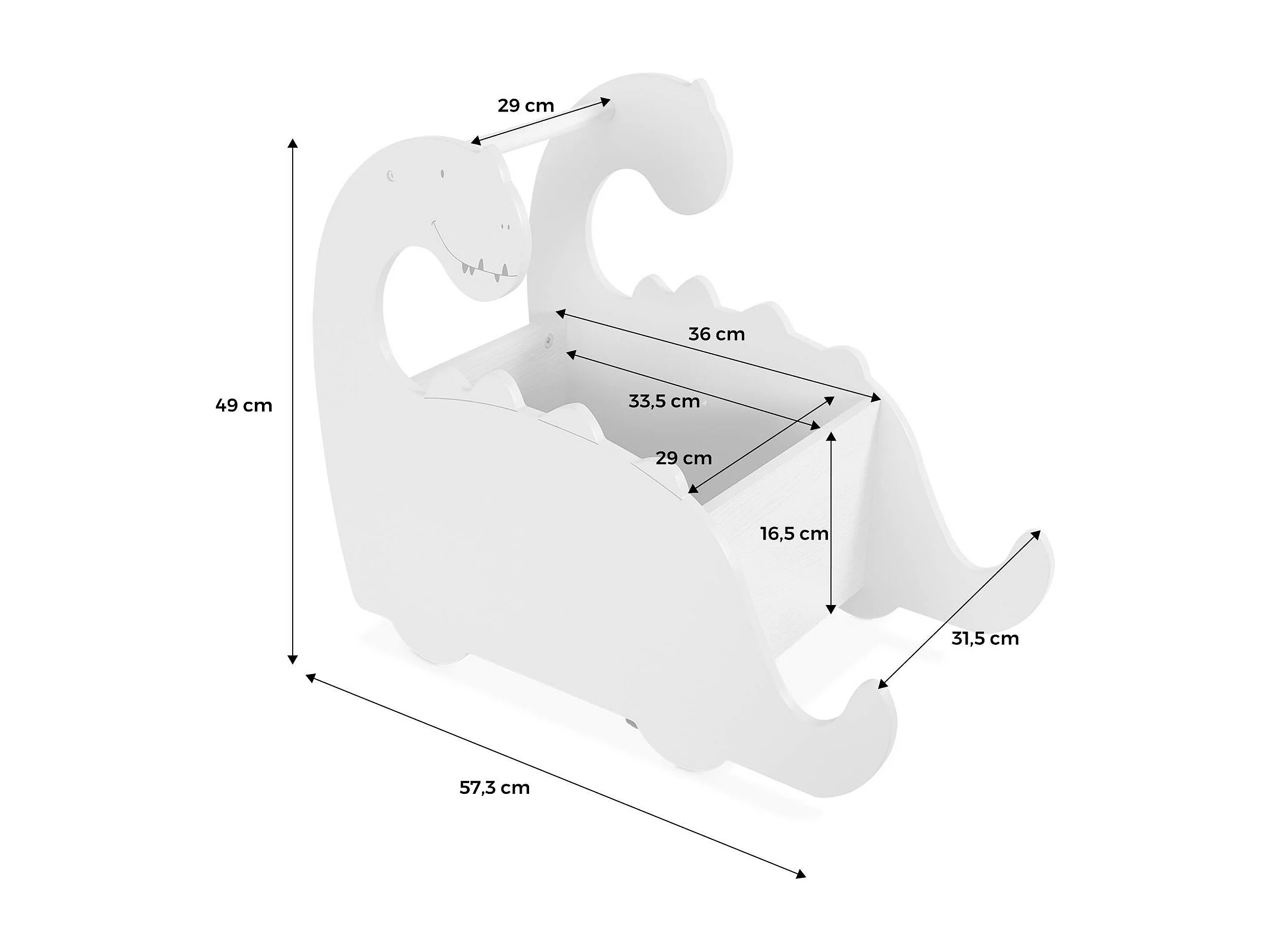 Joyz Coffre à jouets design dino bibliothèque bois à roulettes chambre d'enfant