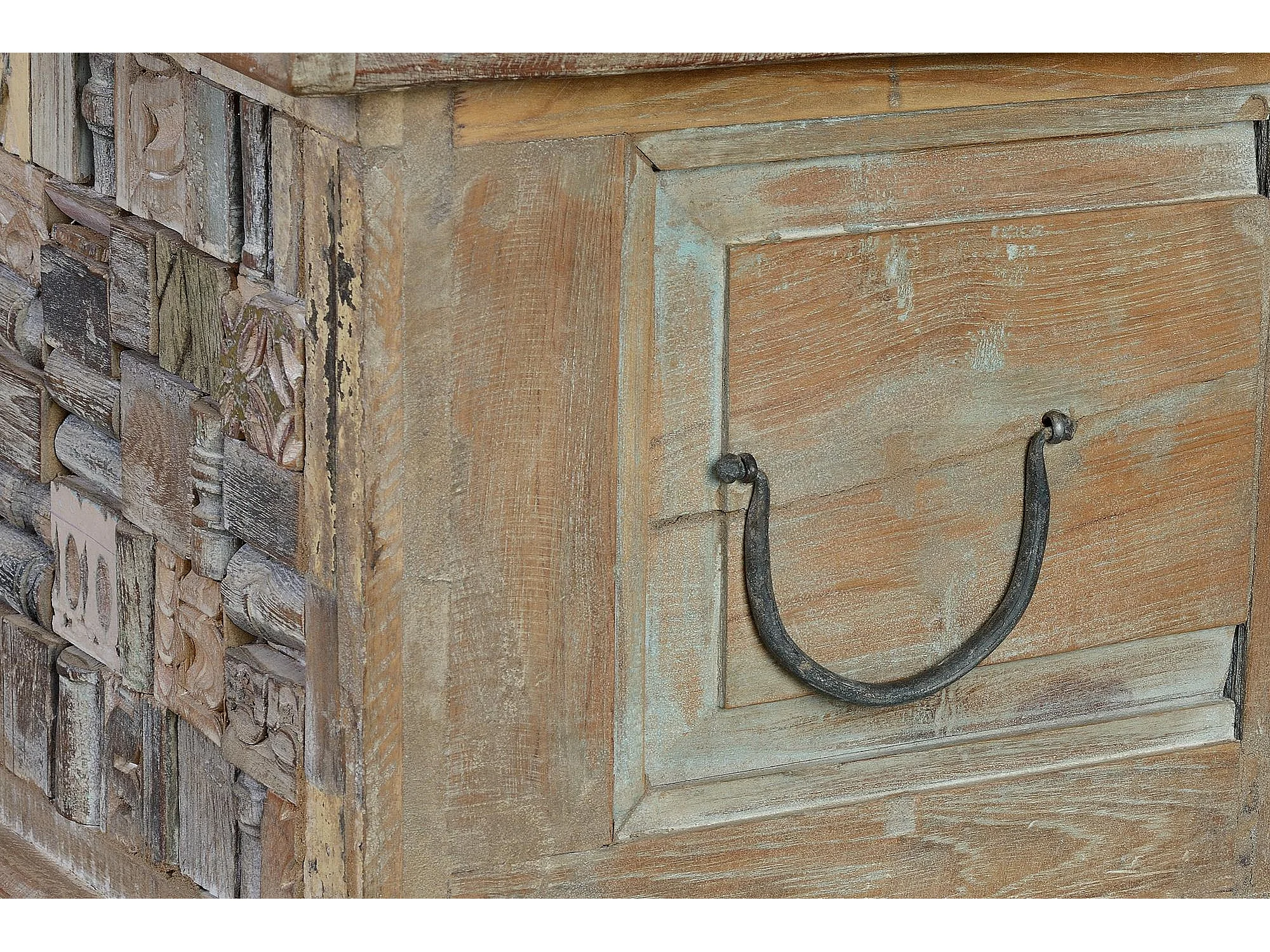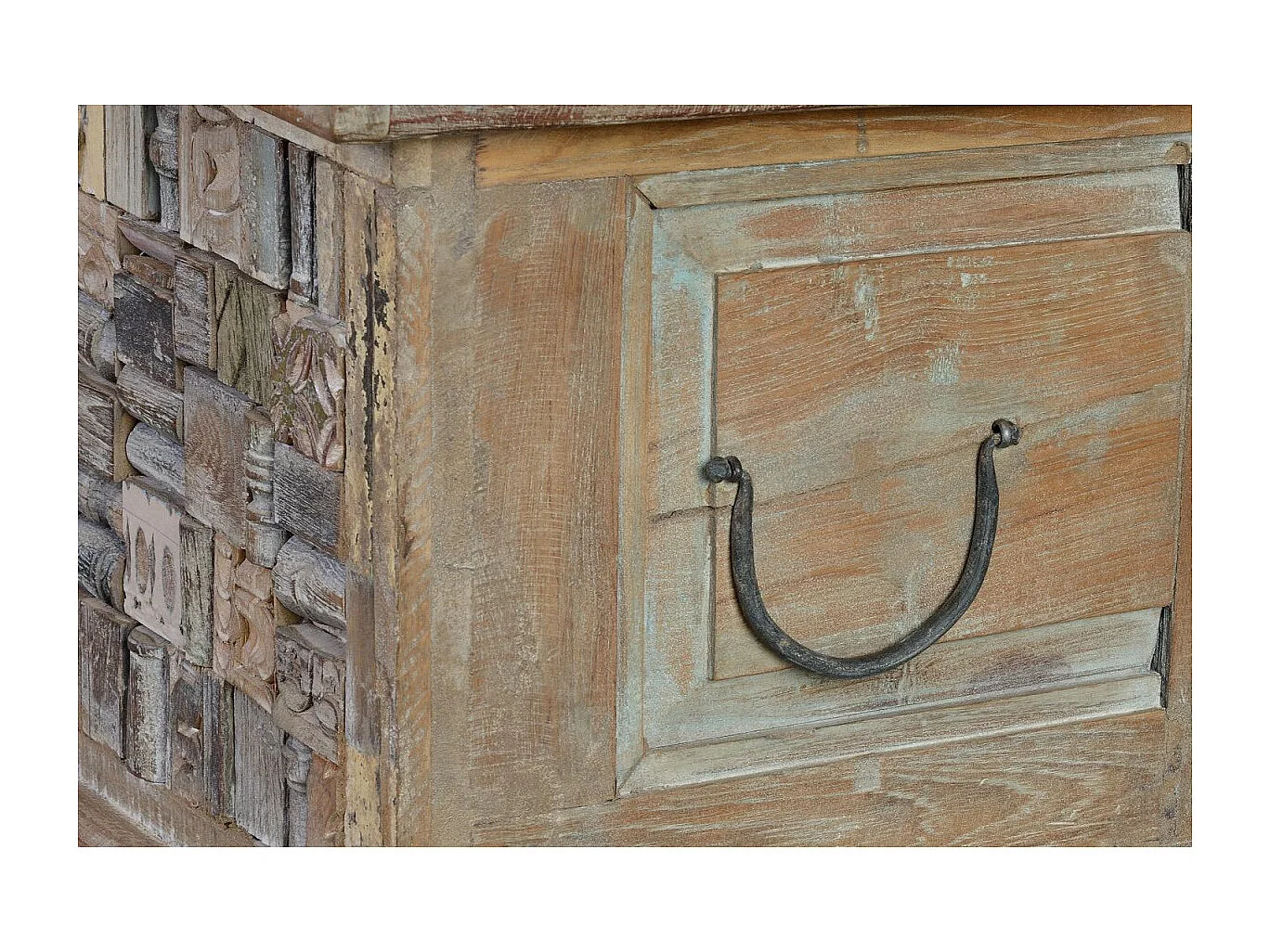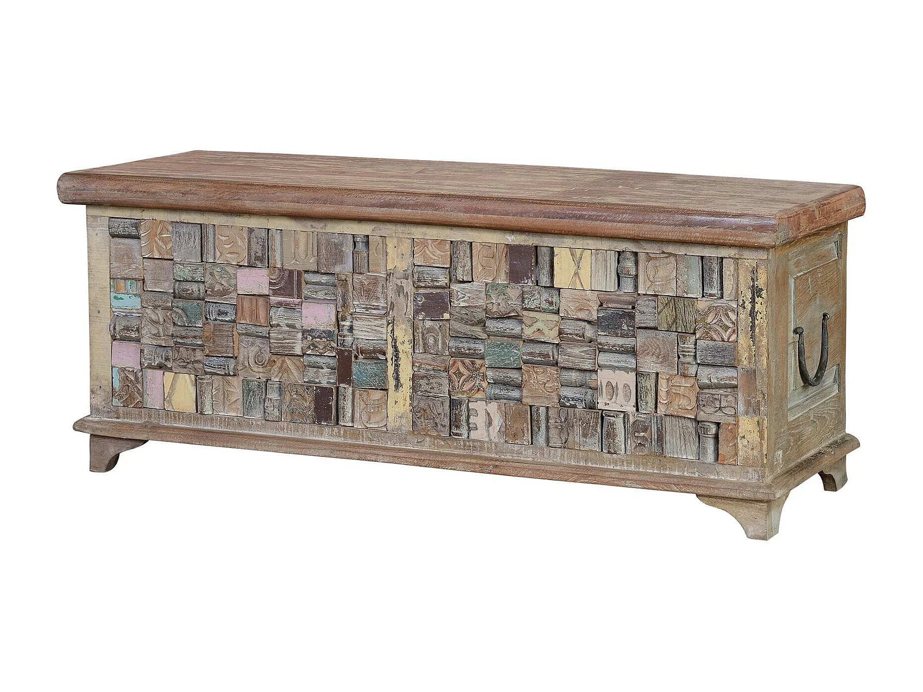 Coffre mélange en bois de manguier et recyclé finition multicolore