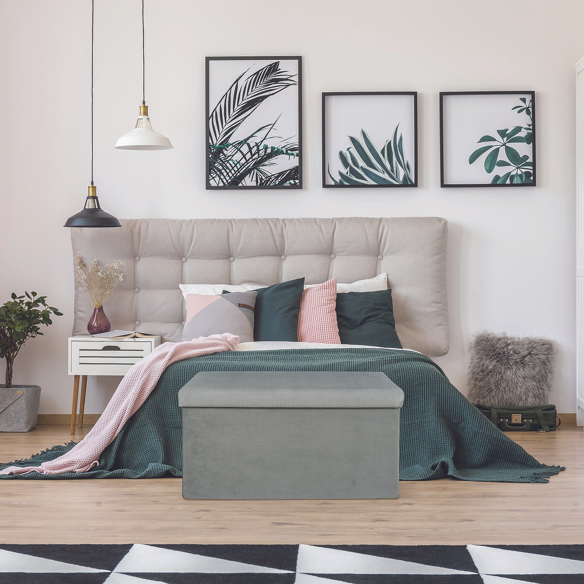 Coffre Pouf Pliable Gris Motif Blanc Gris