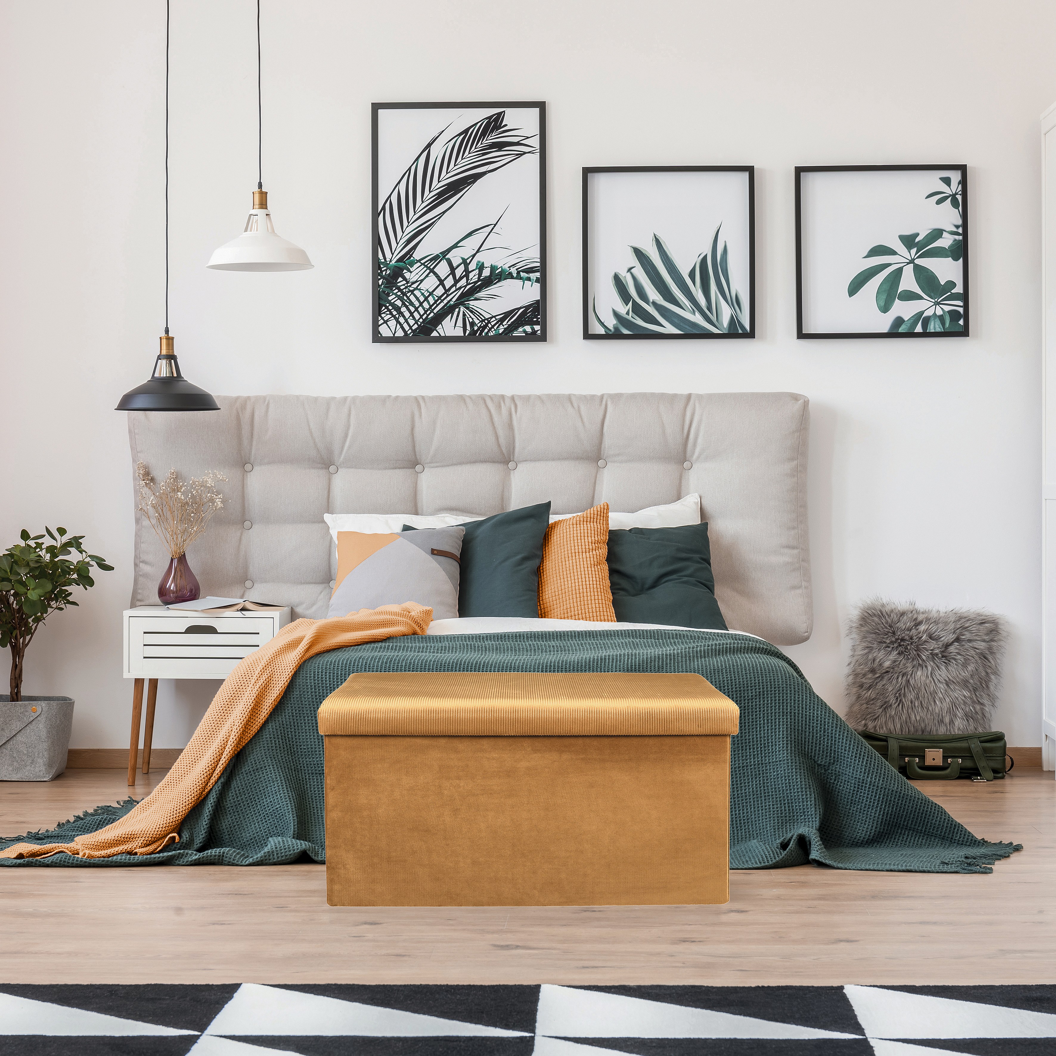 Coffre Banc Pliable Suedine Jaune Jaune