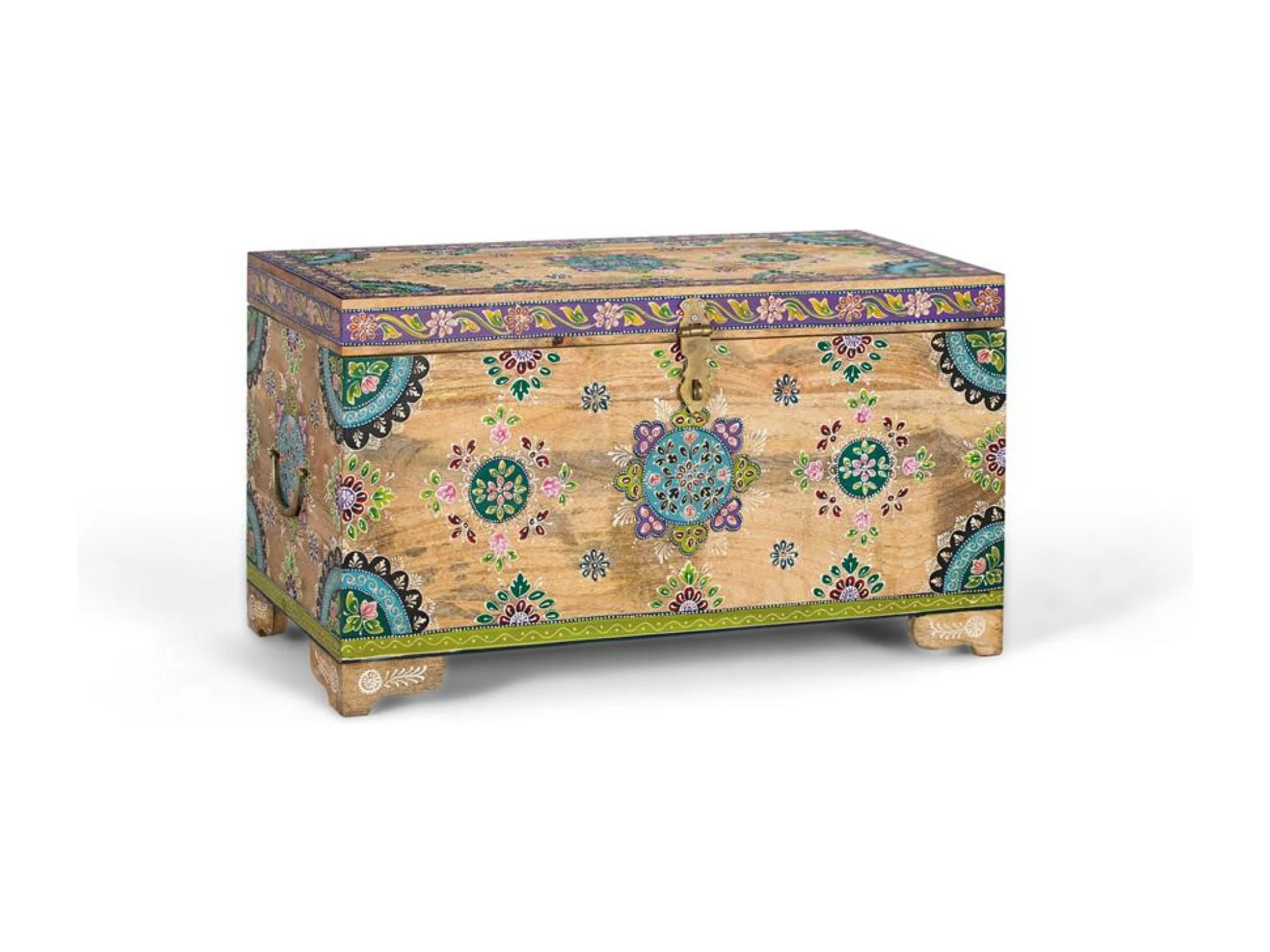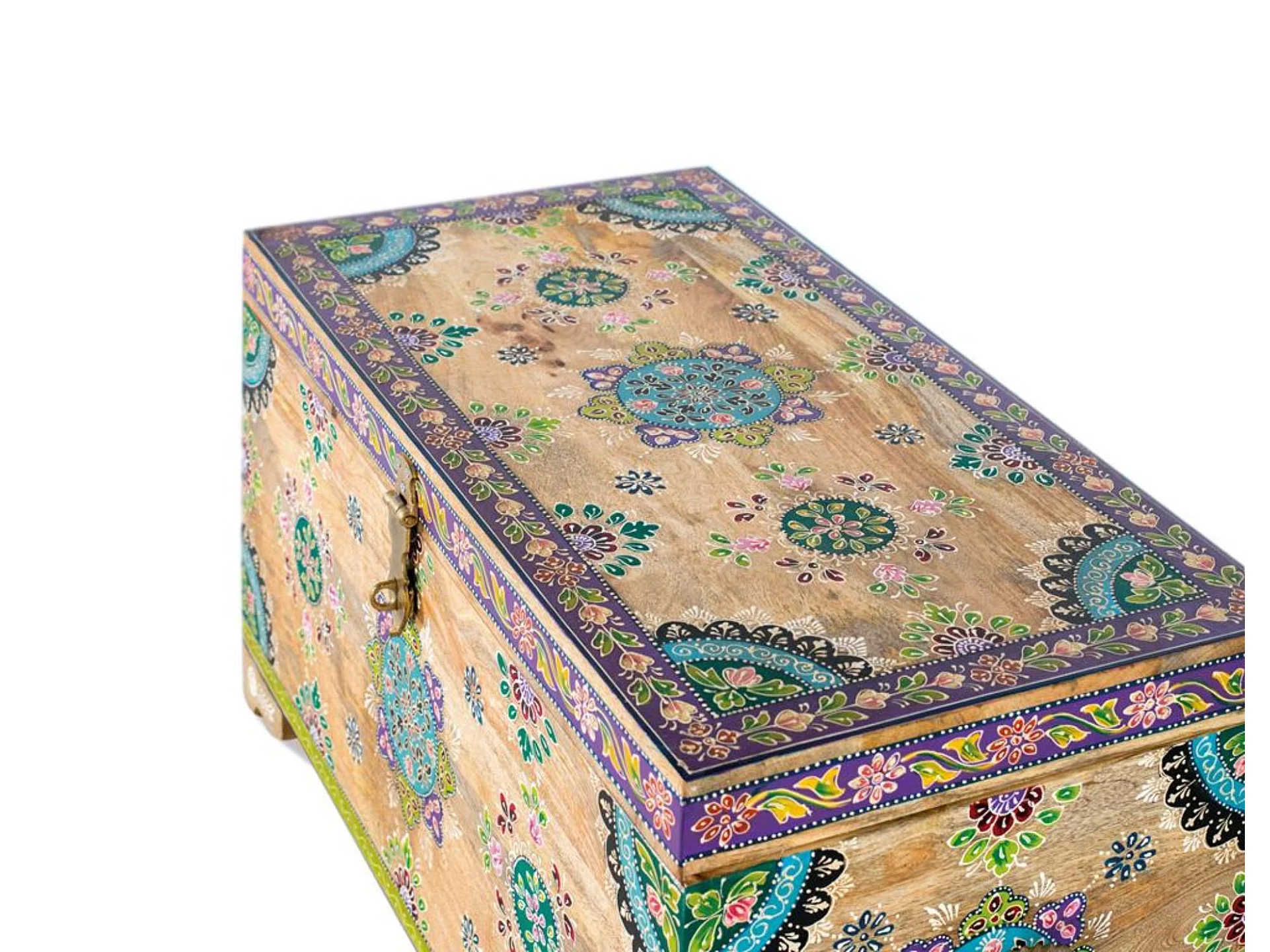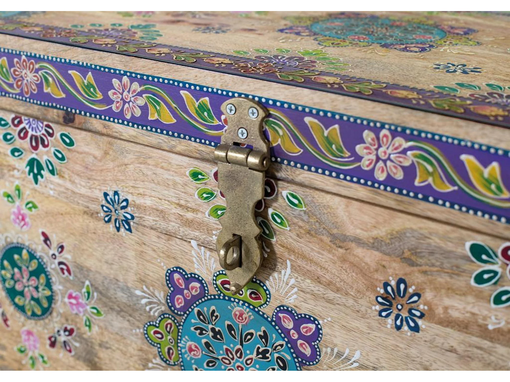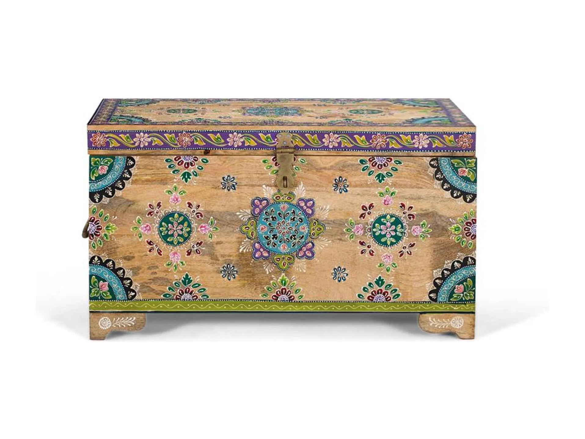 Coffre en bois de manguier peint à la main 81 cm