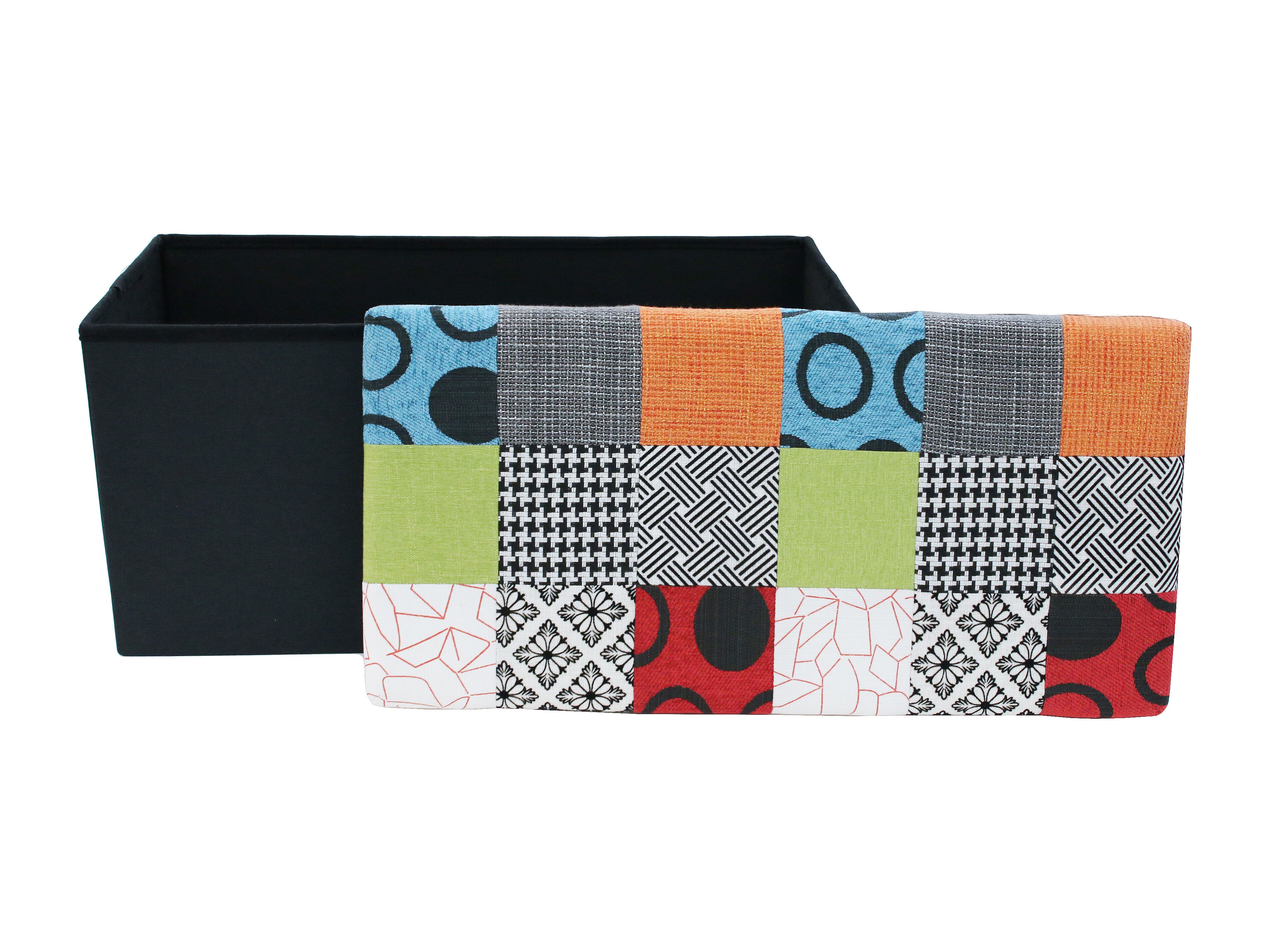Pouf patchwork avec coffre de rangement - Lot de 2