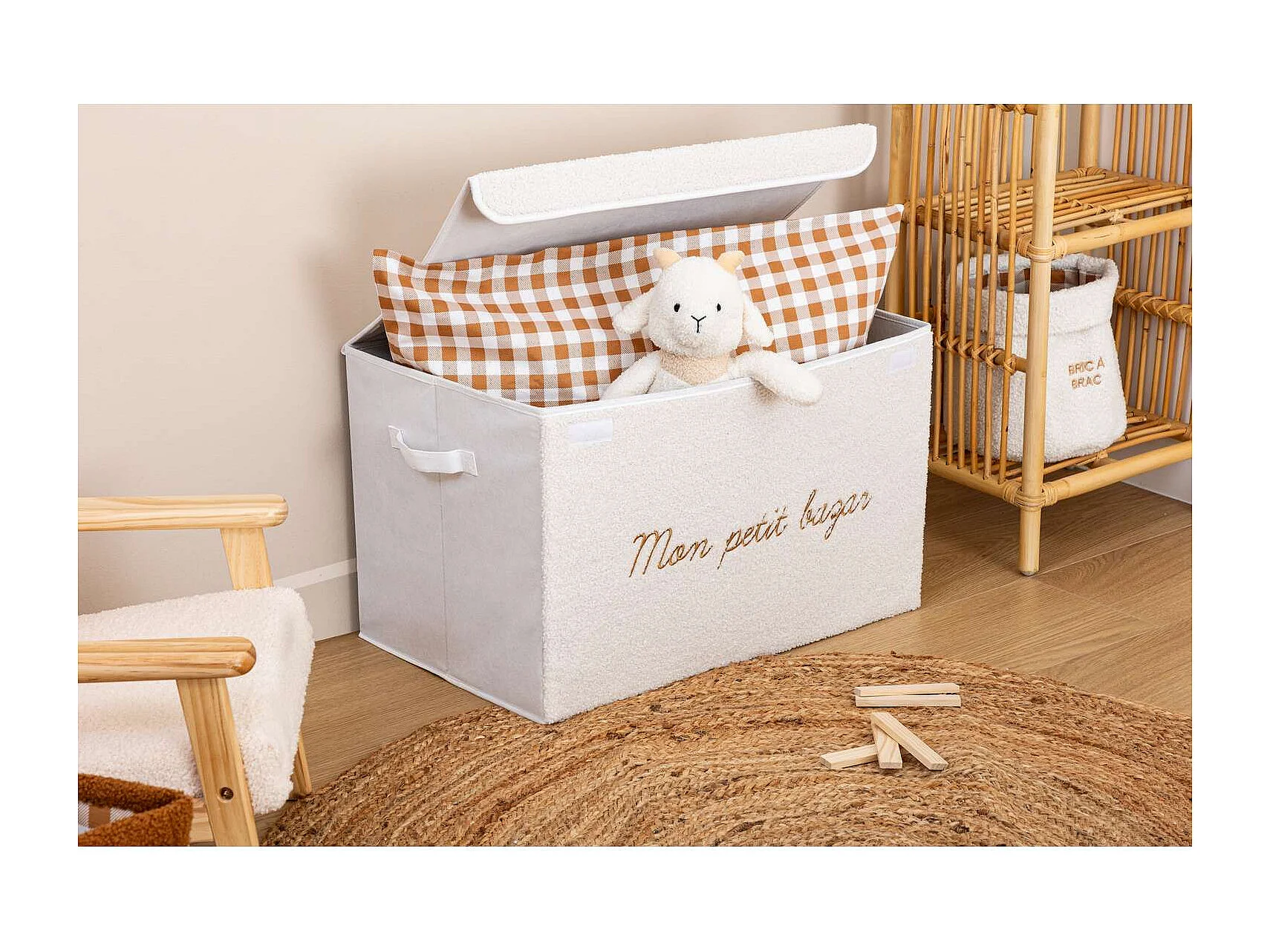 Coffre rangement en bouclette - Blanc