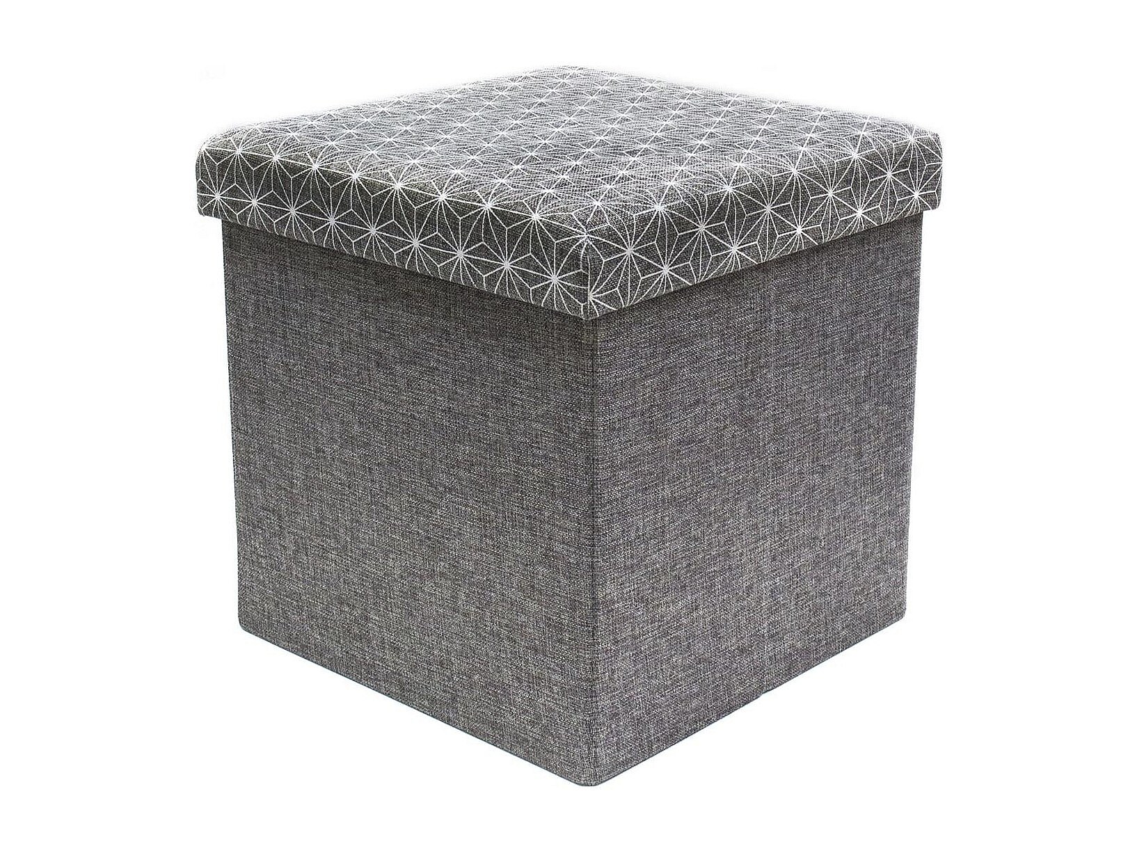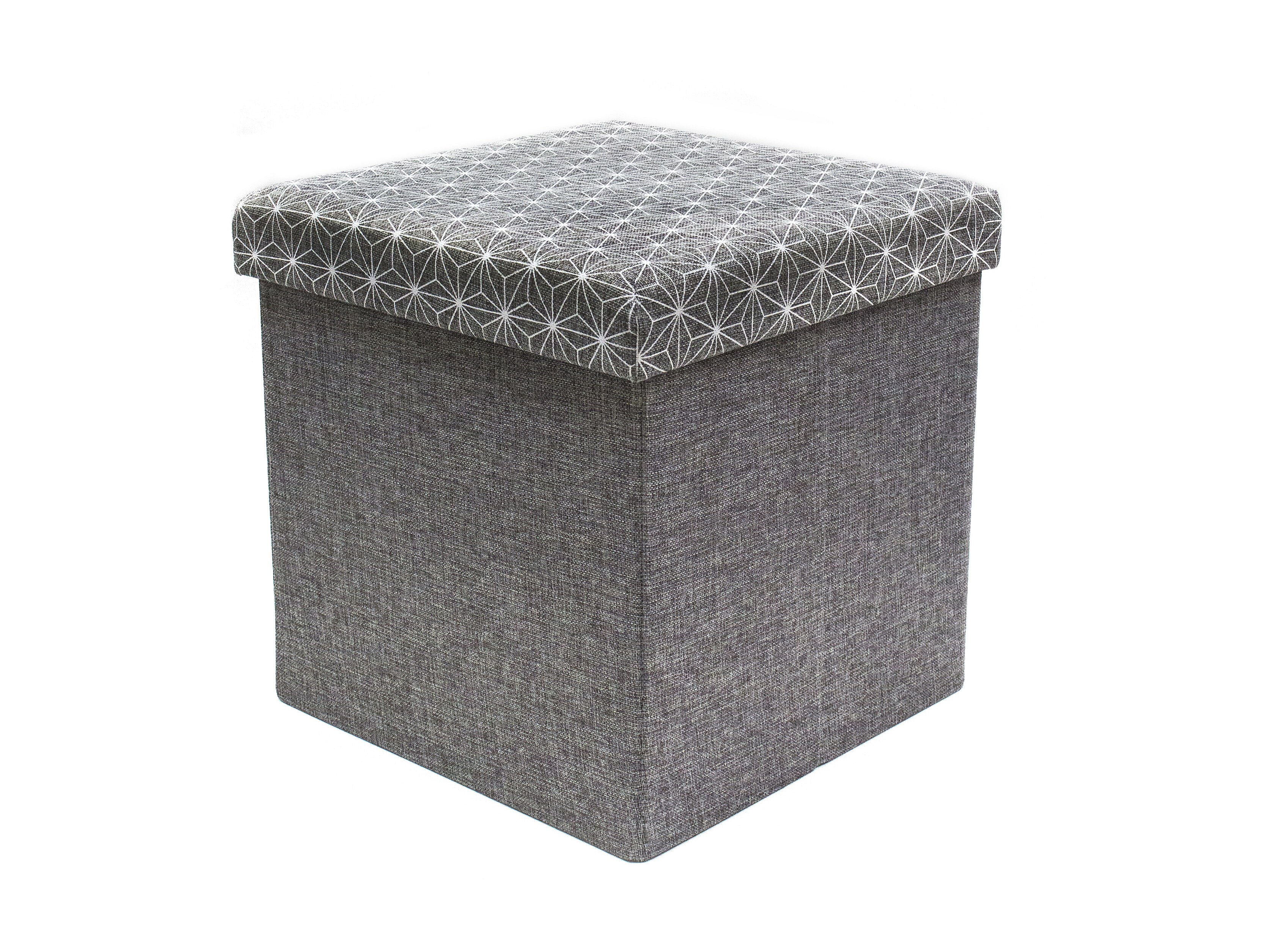 Coffre Pouf Pliable Gris Motif Blanc Gris