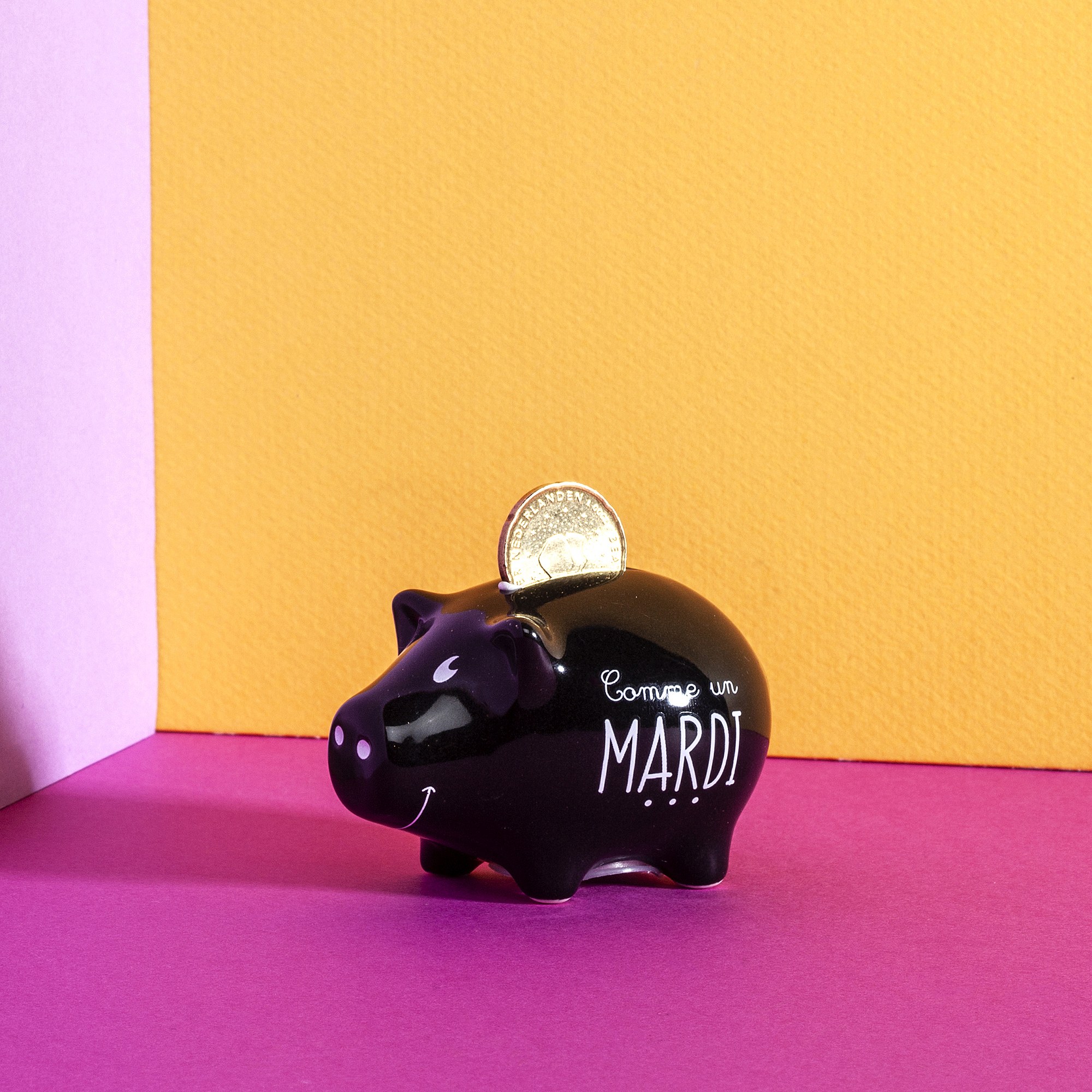 Tirelire Mini Cochon Semainier X6 Blanc, Noir