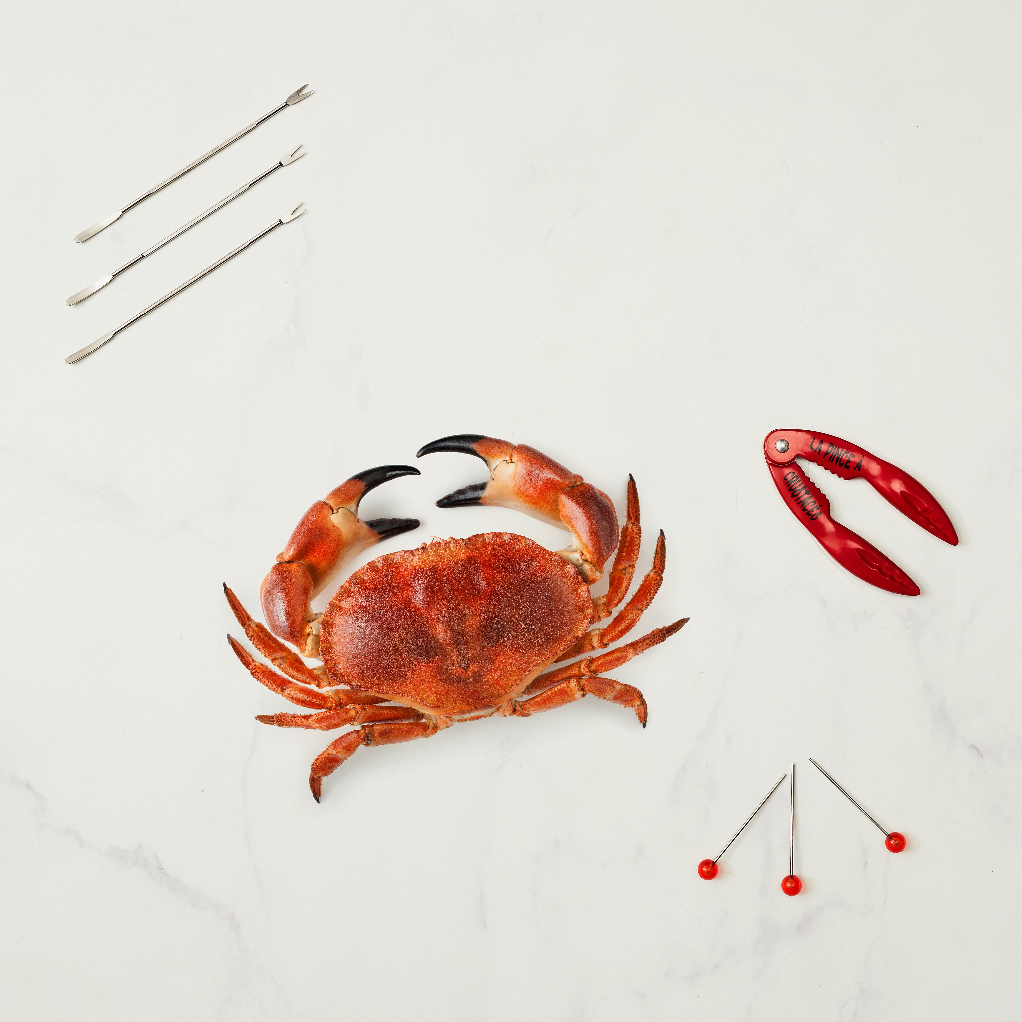 Coffret Crustaces Pince X1 Pique Fourchette X6 Rouge, Argent