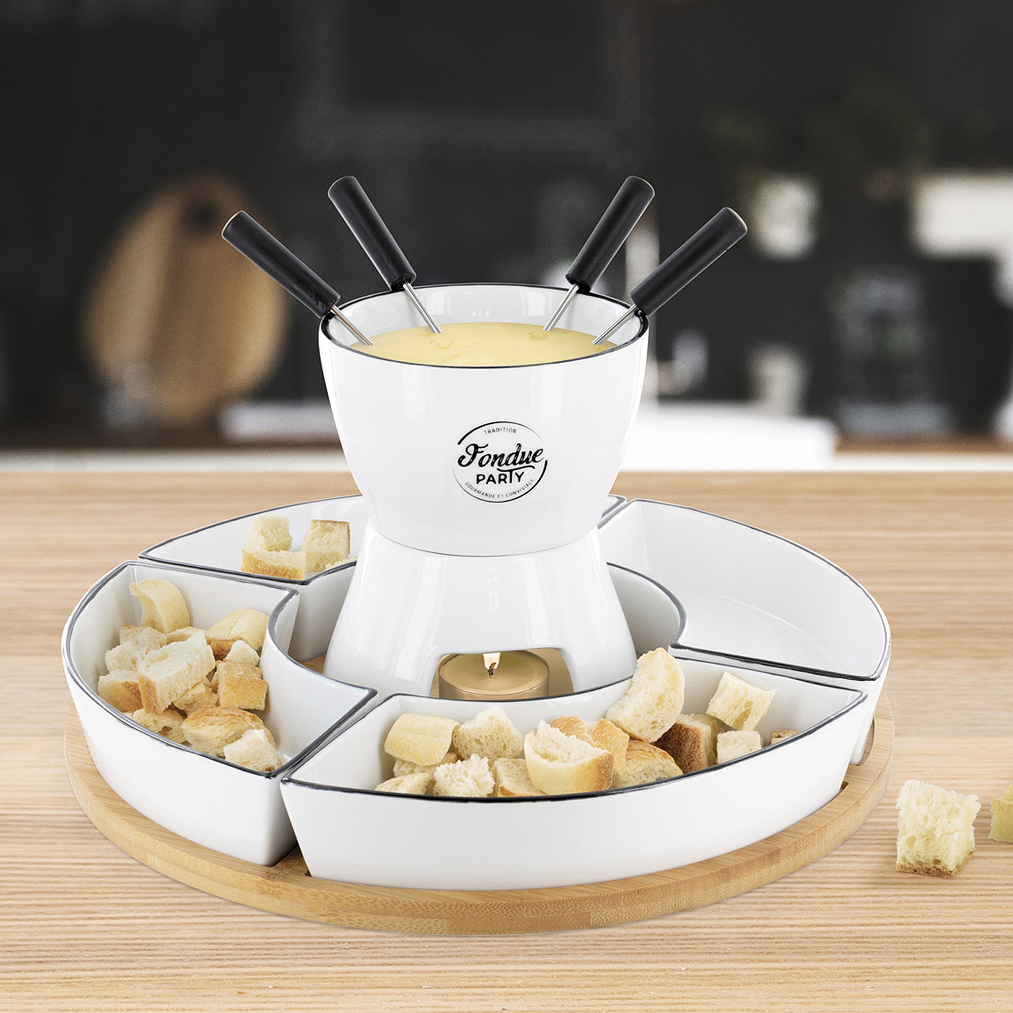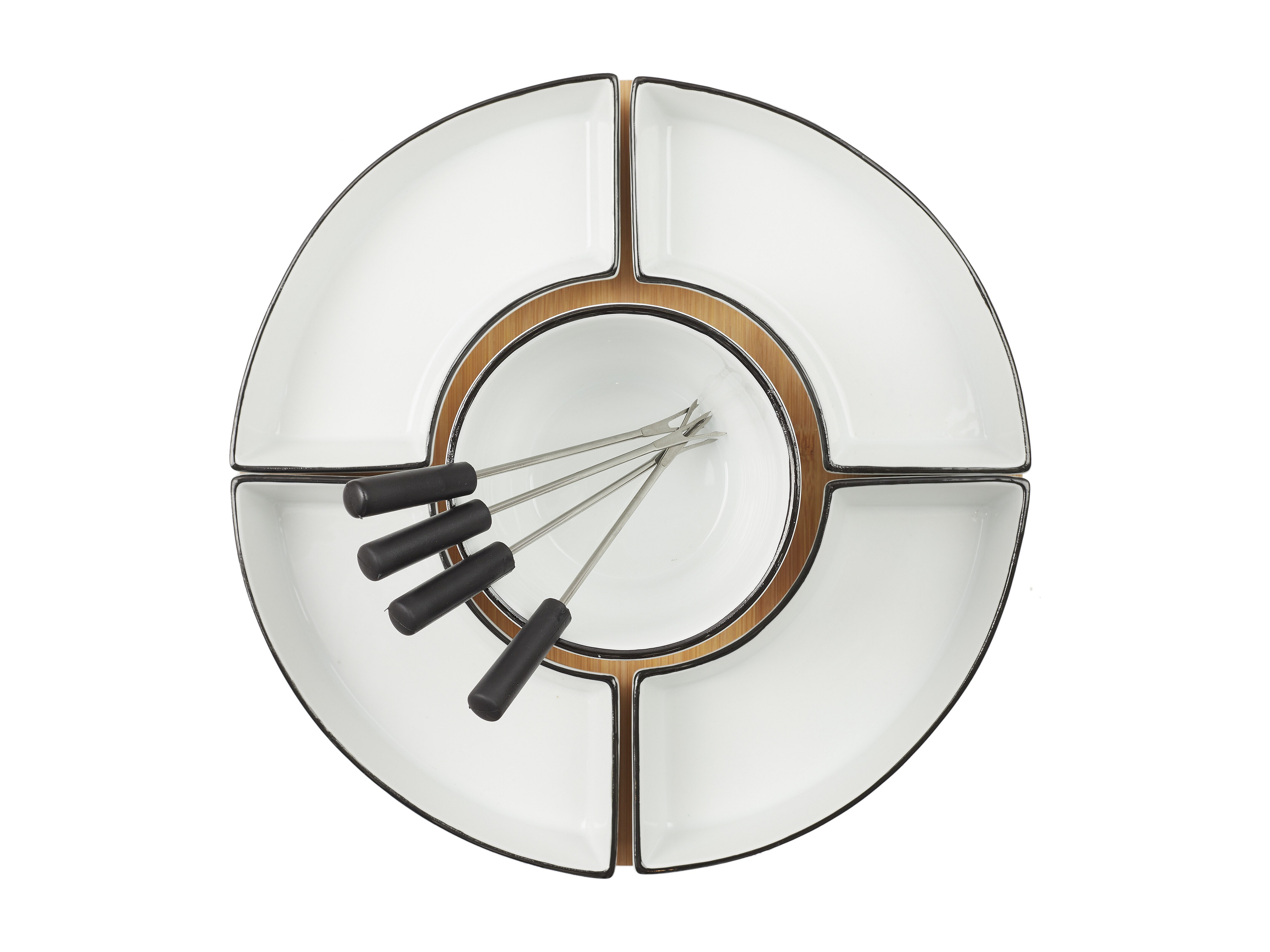Service A Fondue Chauffe-plat Et Pique X4 Blanc, Noir, Marron