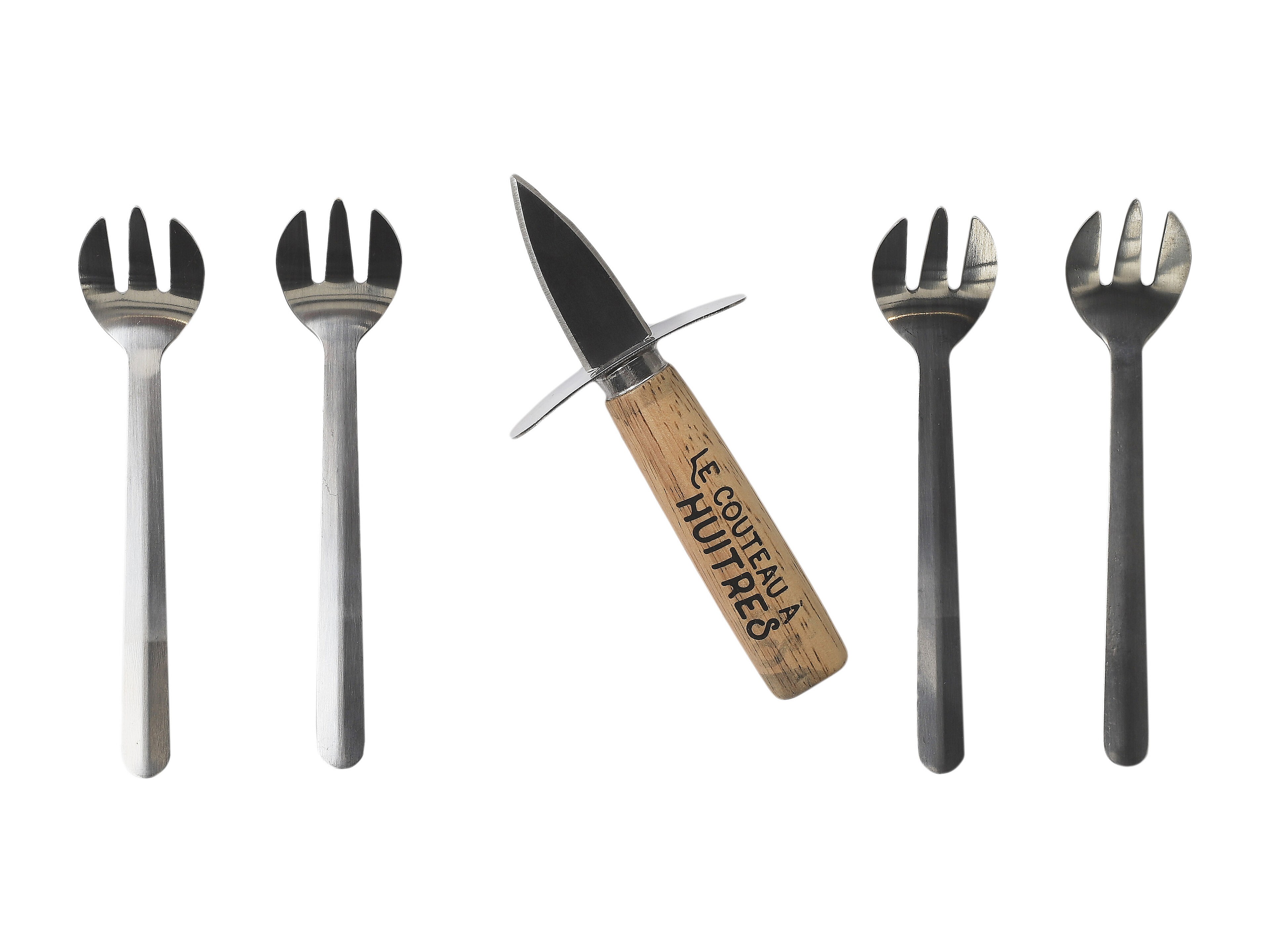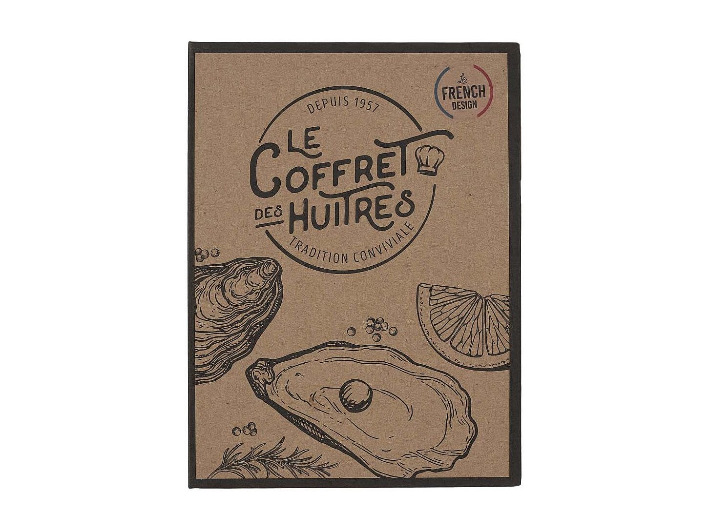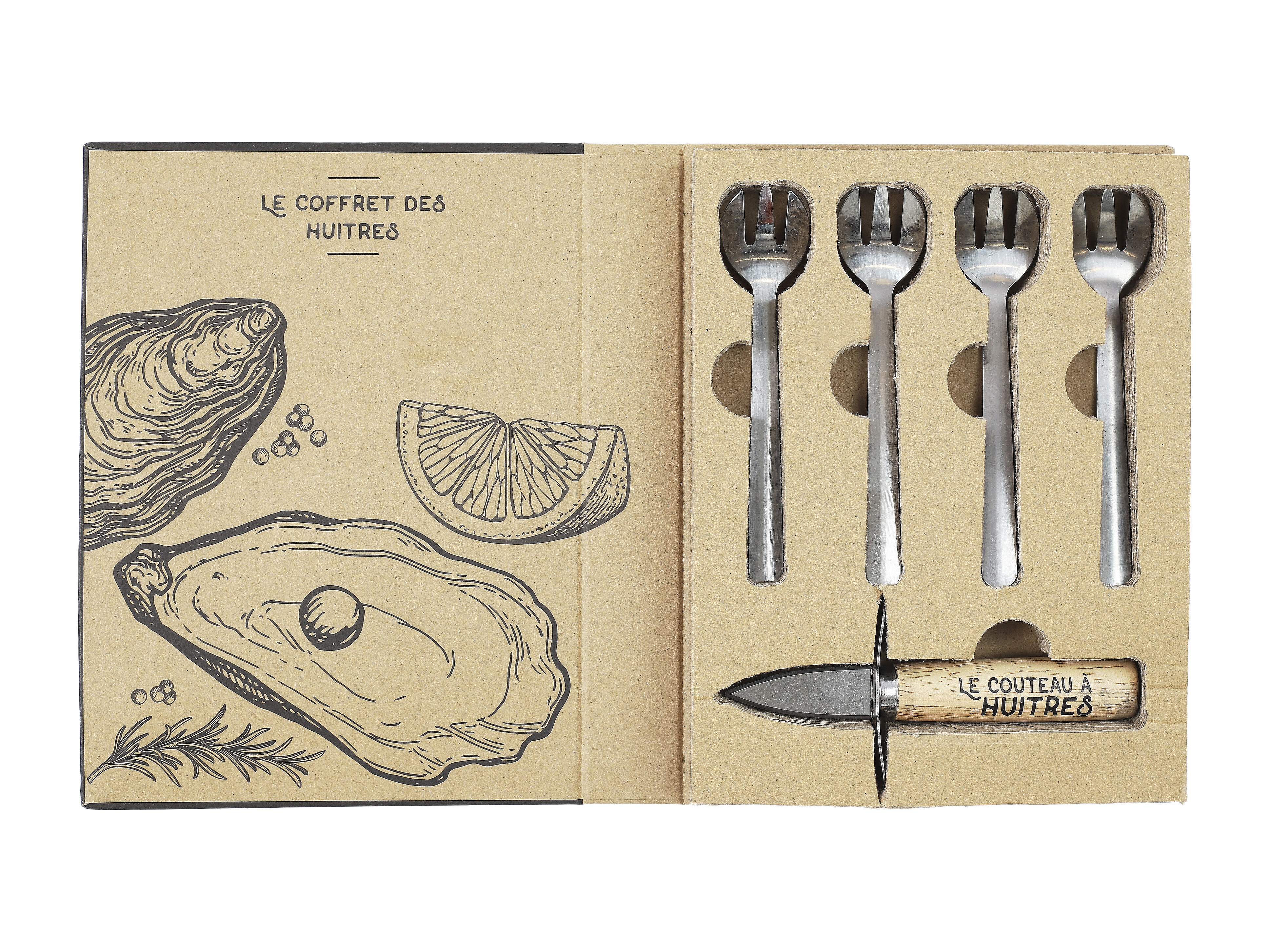 Coffret Huitres Couteau X1 Et Fourchette X4 Marron, Argent