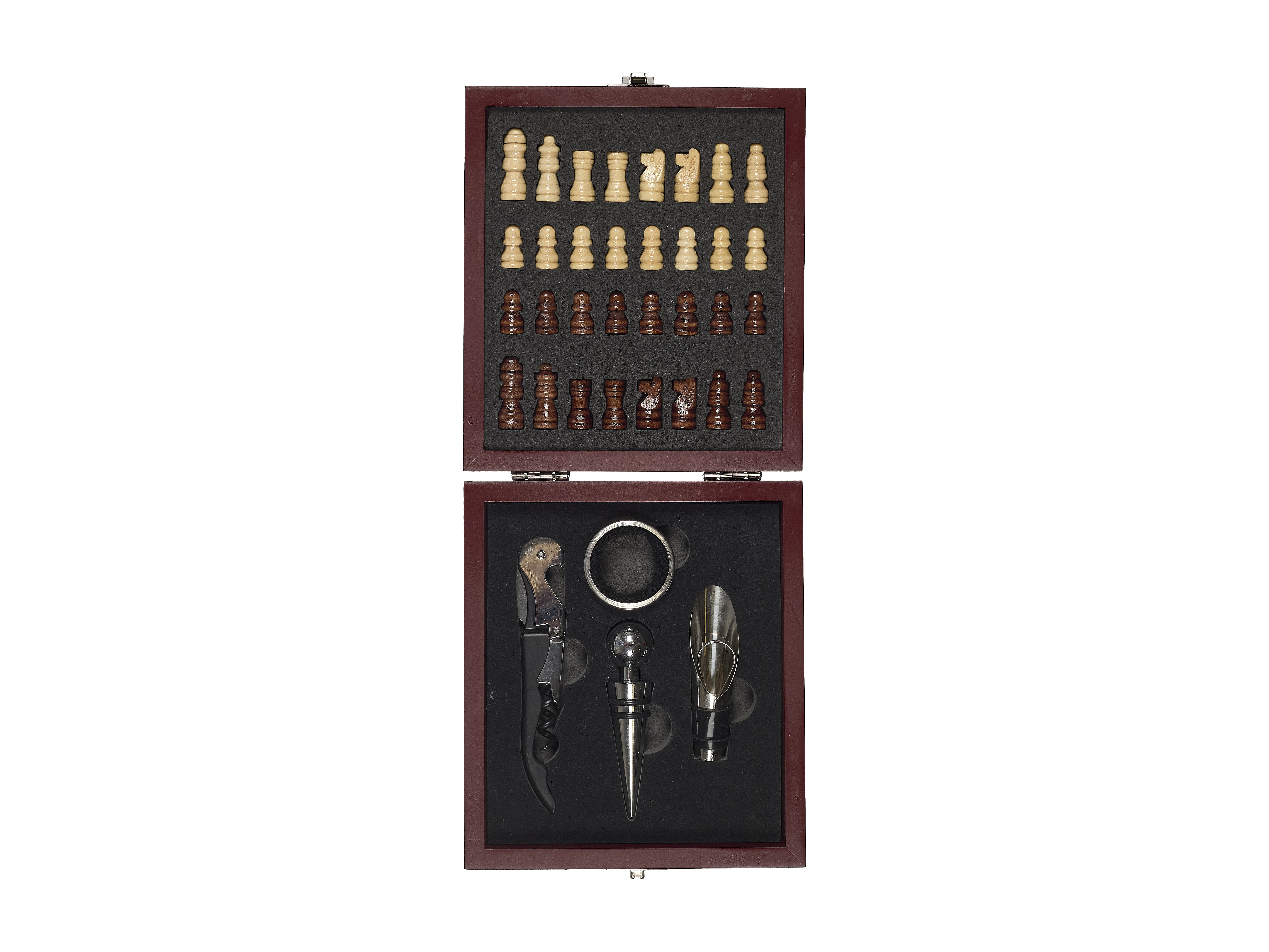 Coffret Vin 4 Pieces Avec Echiquier Marron