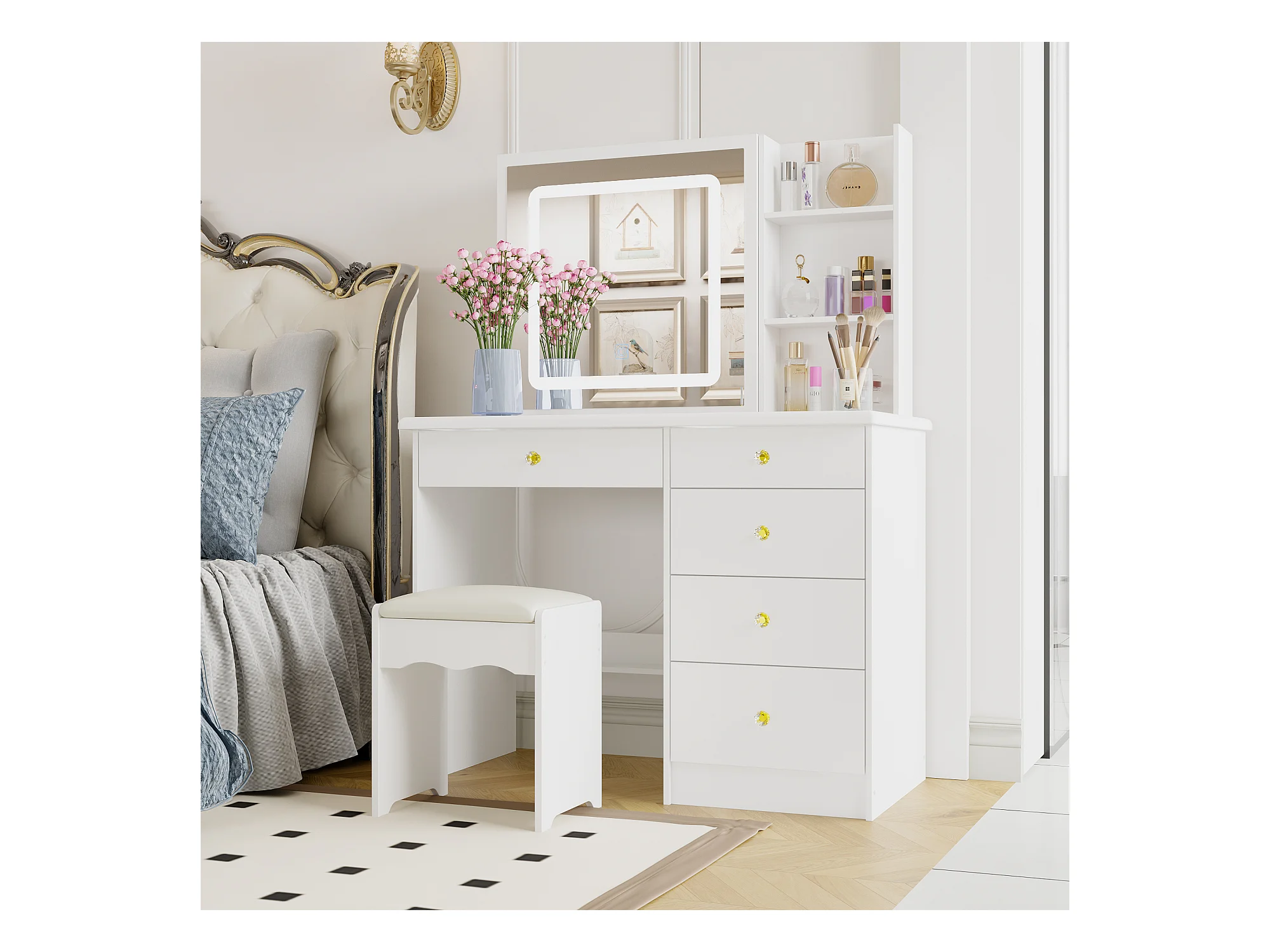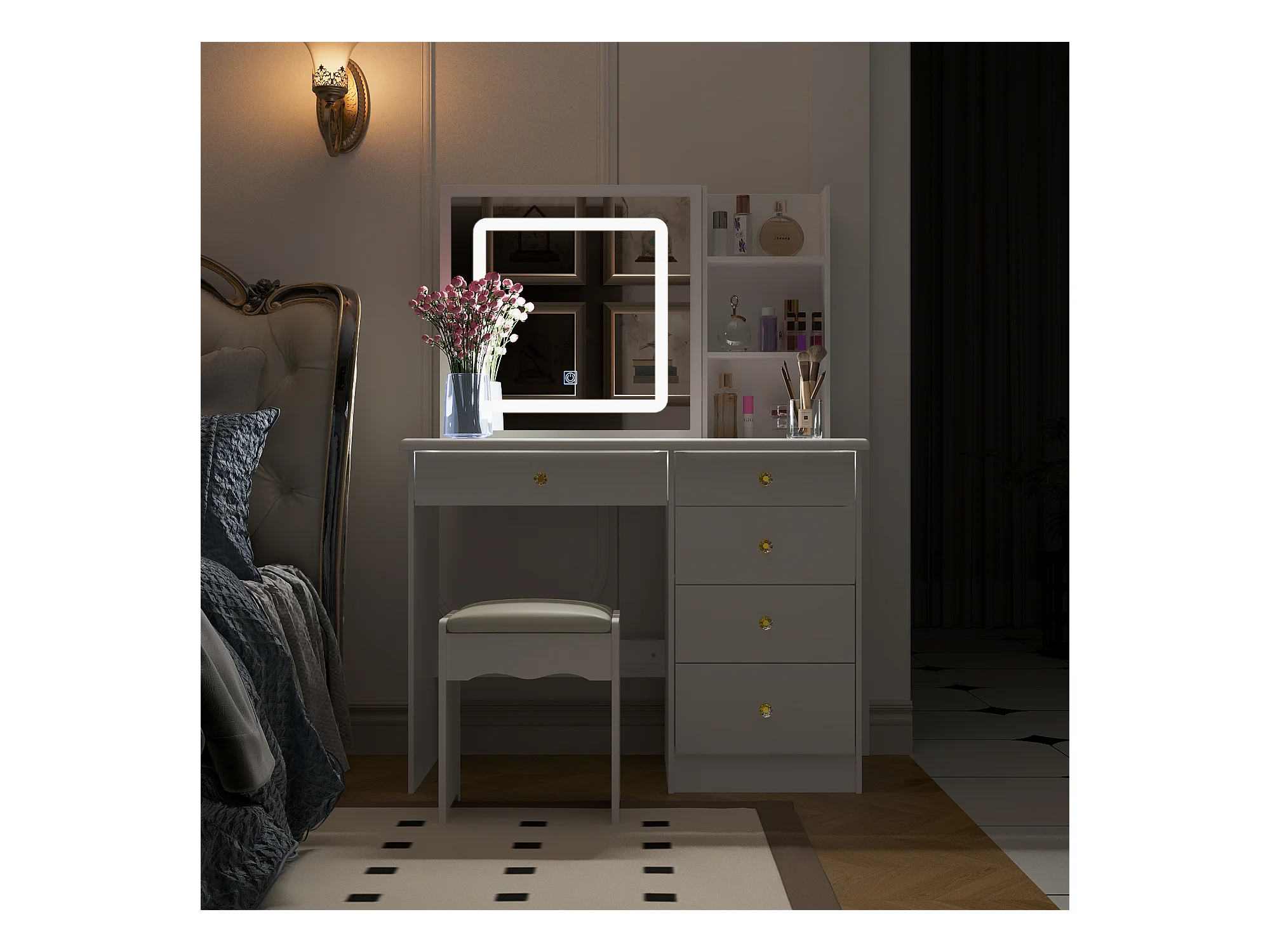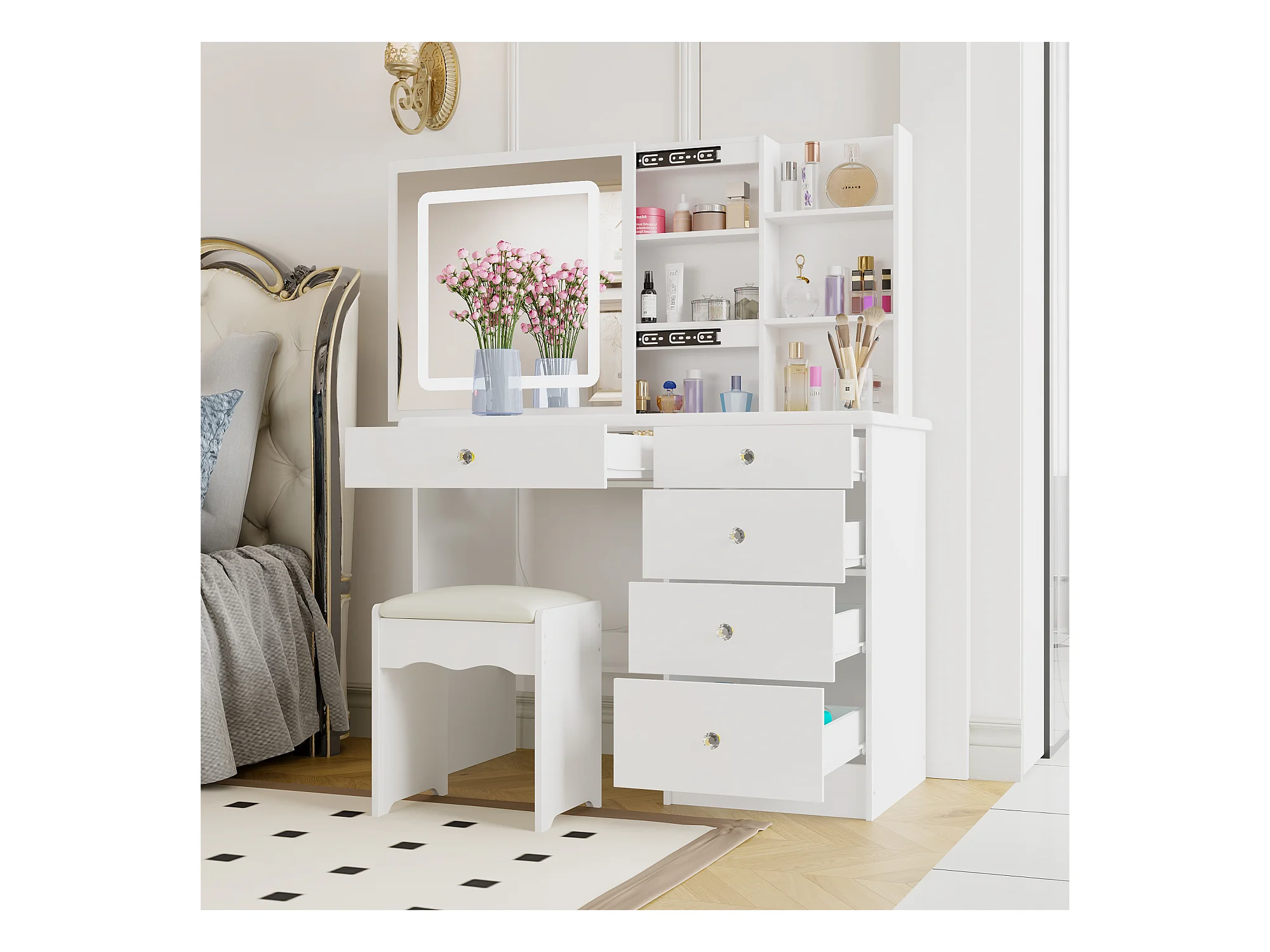 Coiffeuse avec éclairage LED et miroir coulissant,éclairage tricolore,tabouret,5 tiroirs,100x50x136cm