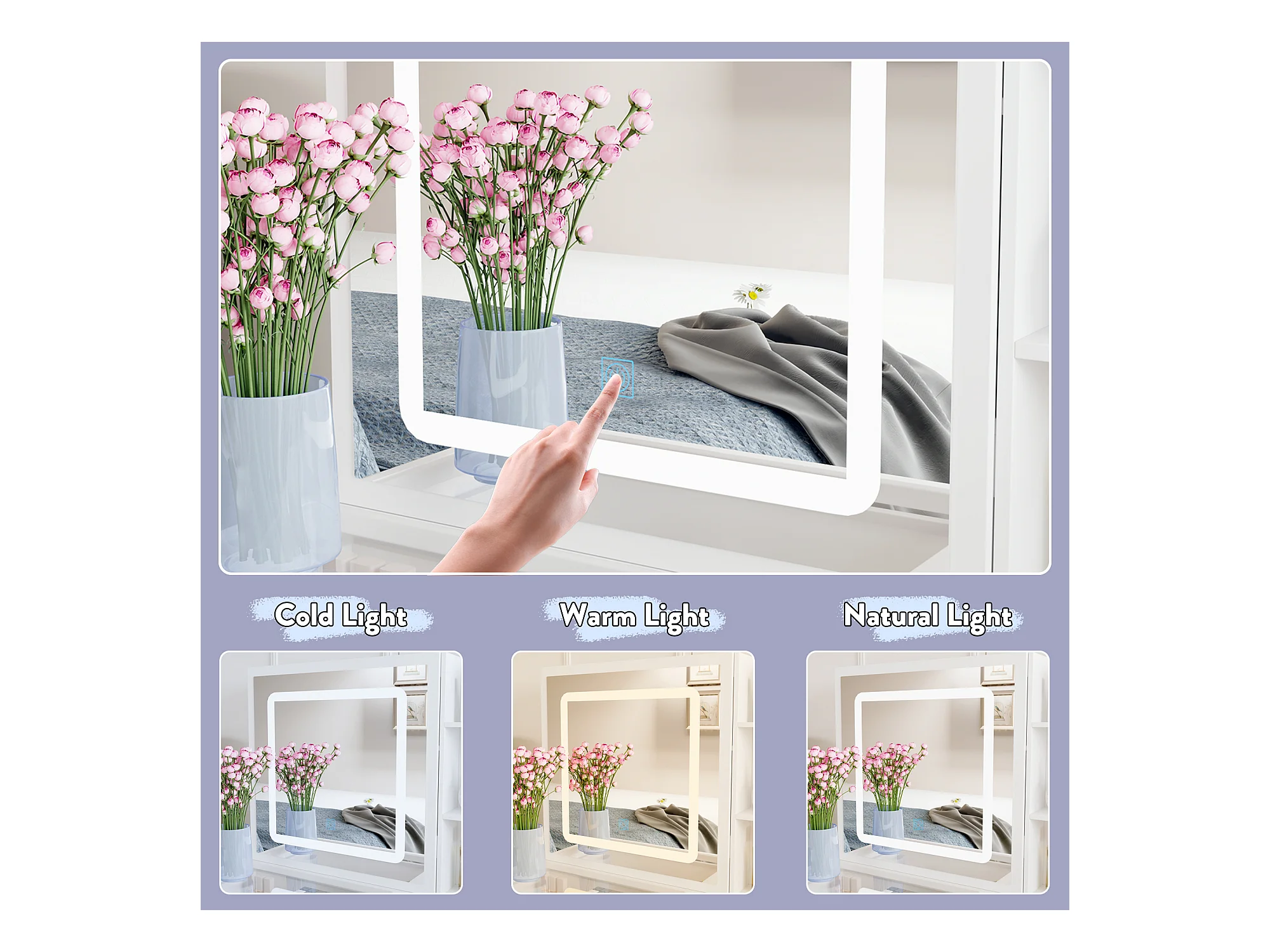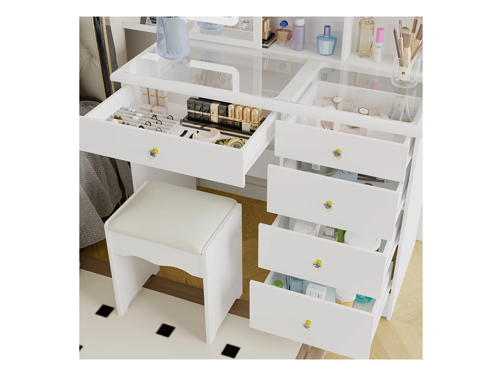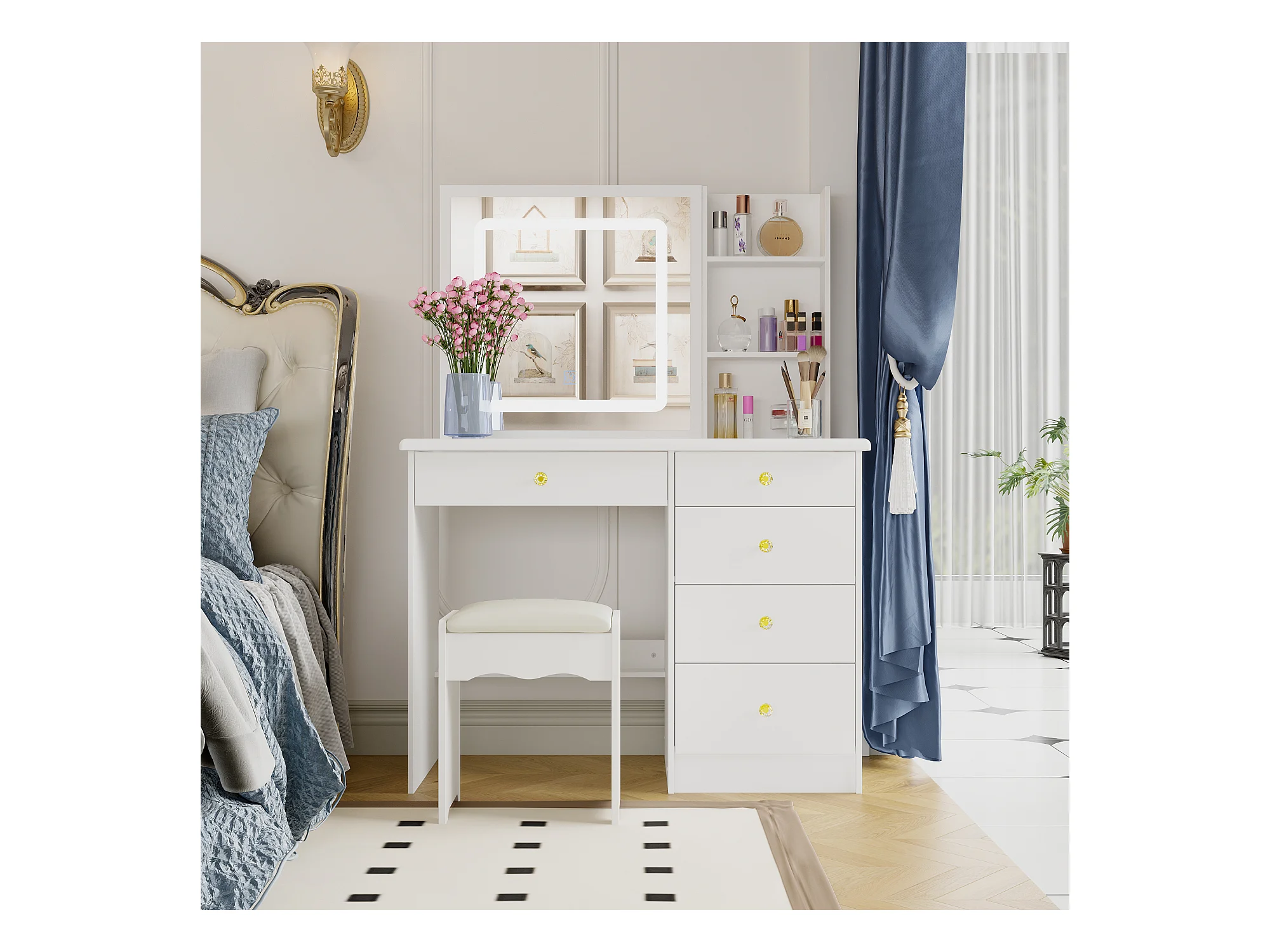 Coiffeuse avec éclairage LED et miroir coulissant,éclairage tricolore,tabouret,5 tiroirs,100x50x136cm