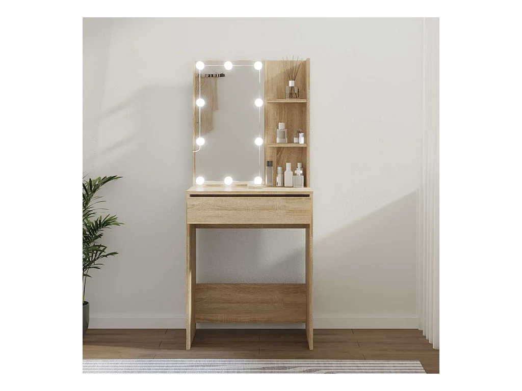 Coiffeuse à LED avec armoire Chêne sonoma Bois d'ingénierie