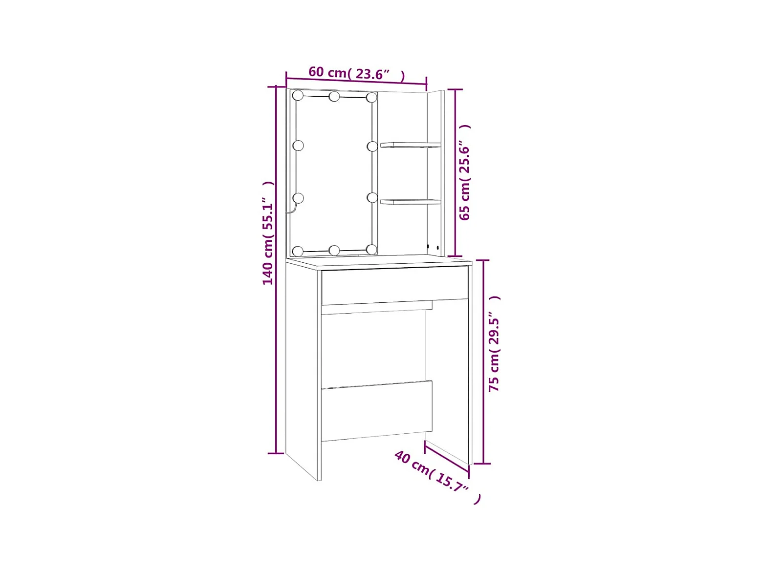 Coiffeuse avec LED Chêne fumé 60x40x140 cm