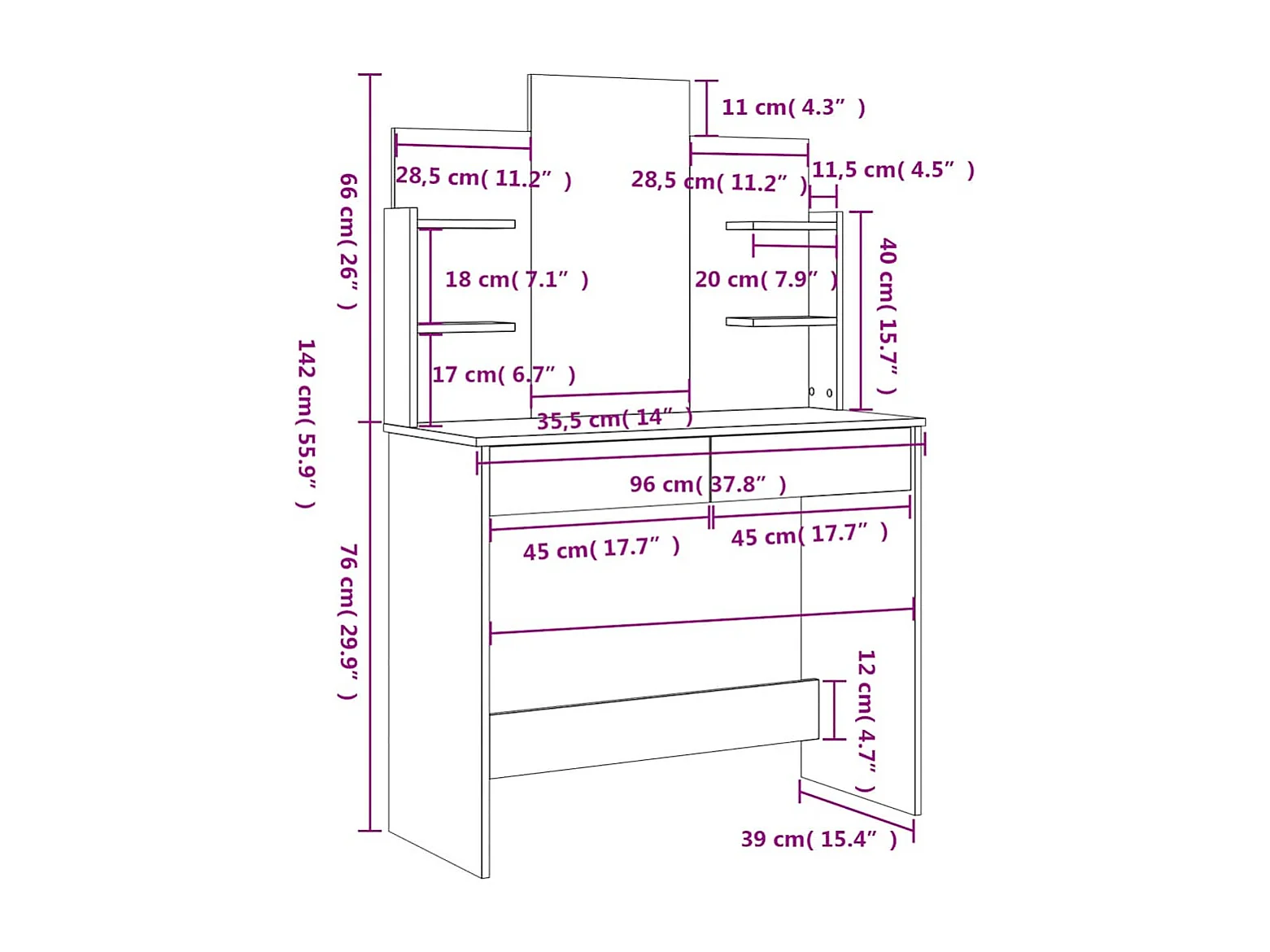 Coiffeuse avec miroir blanc 96x39x142 cm