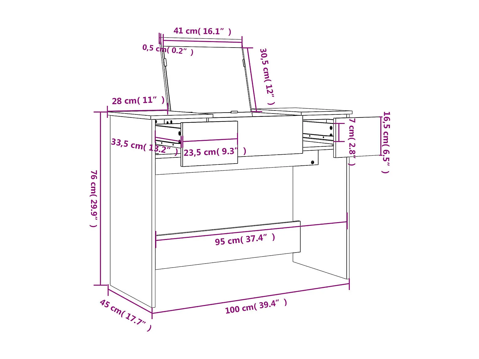 Coiffeuse avec miroir chêne fumé 100x45x76 cm