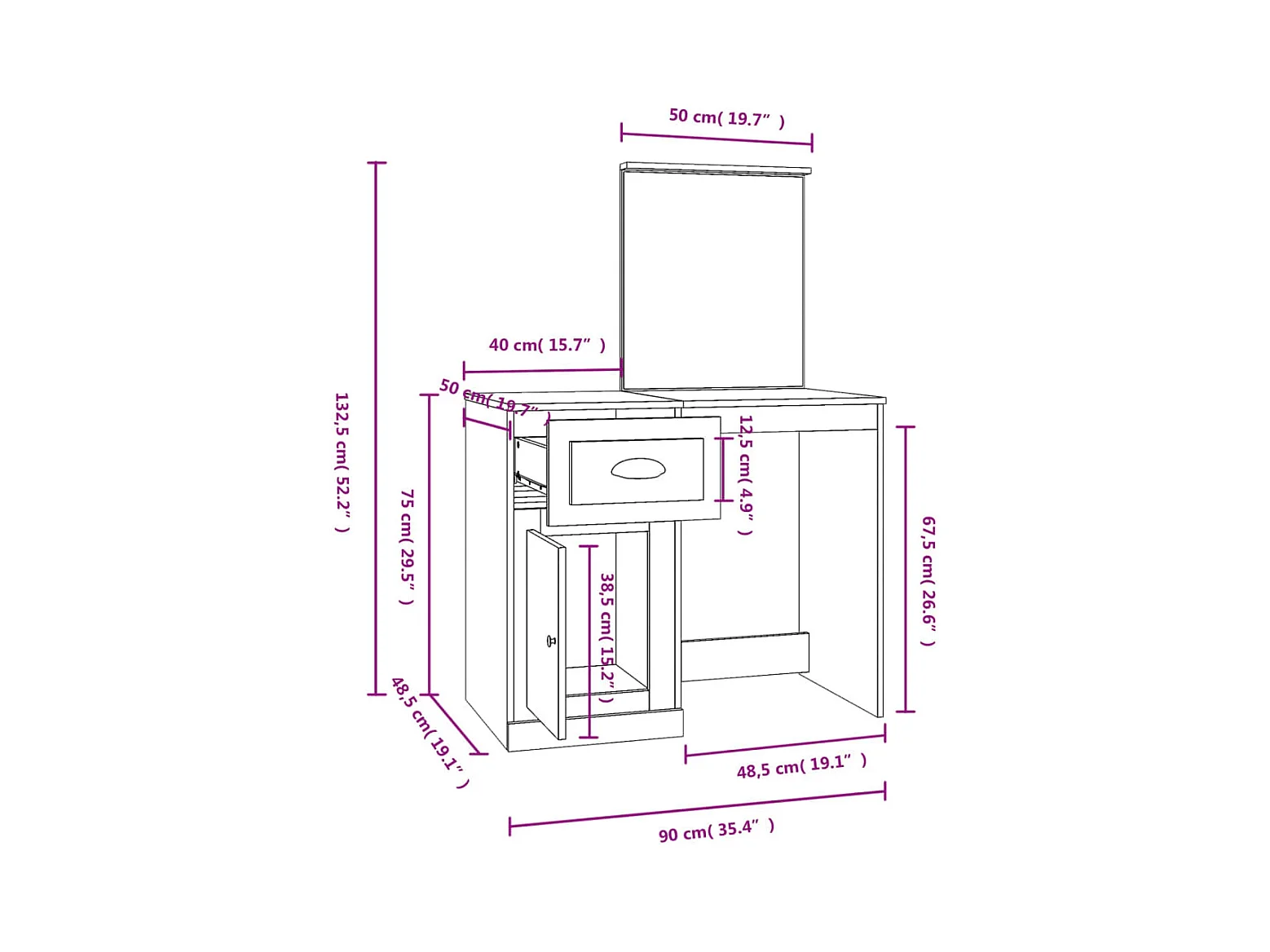 Coiffeuse avec miroir chêne sonoma 90x50x132,5