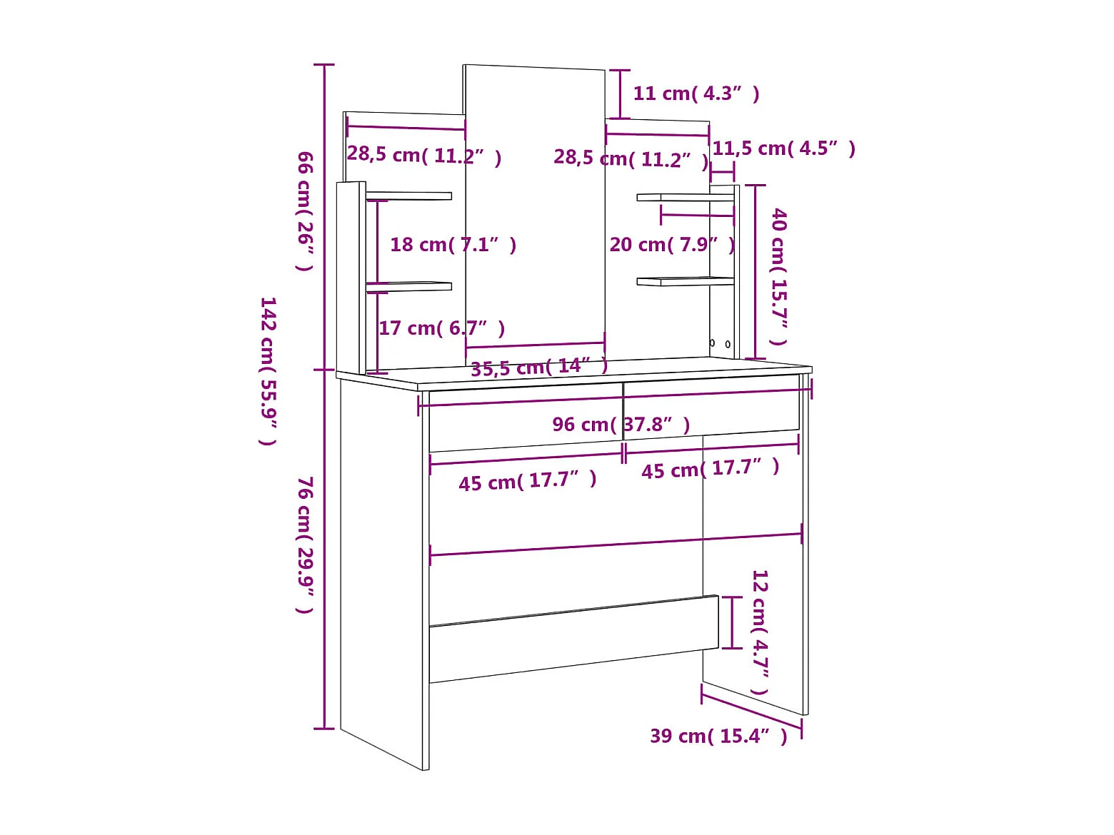 Coiffeuse avec miroir gris béton 96x39x142