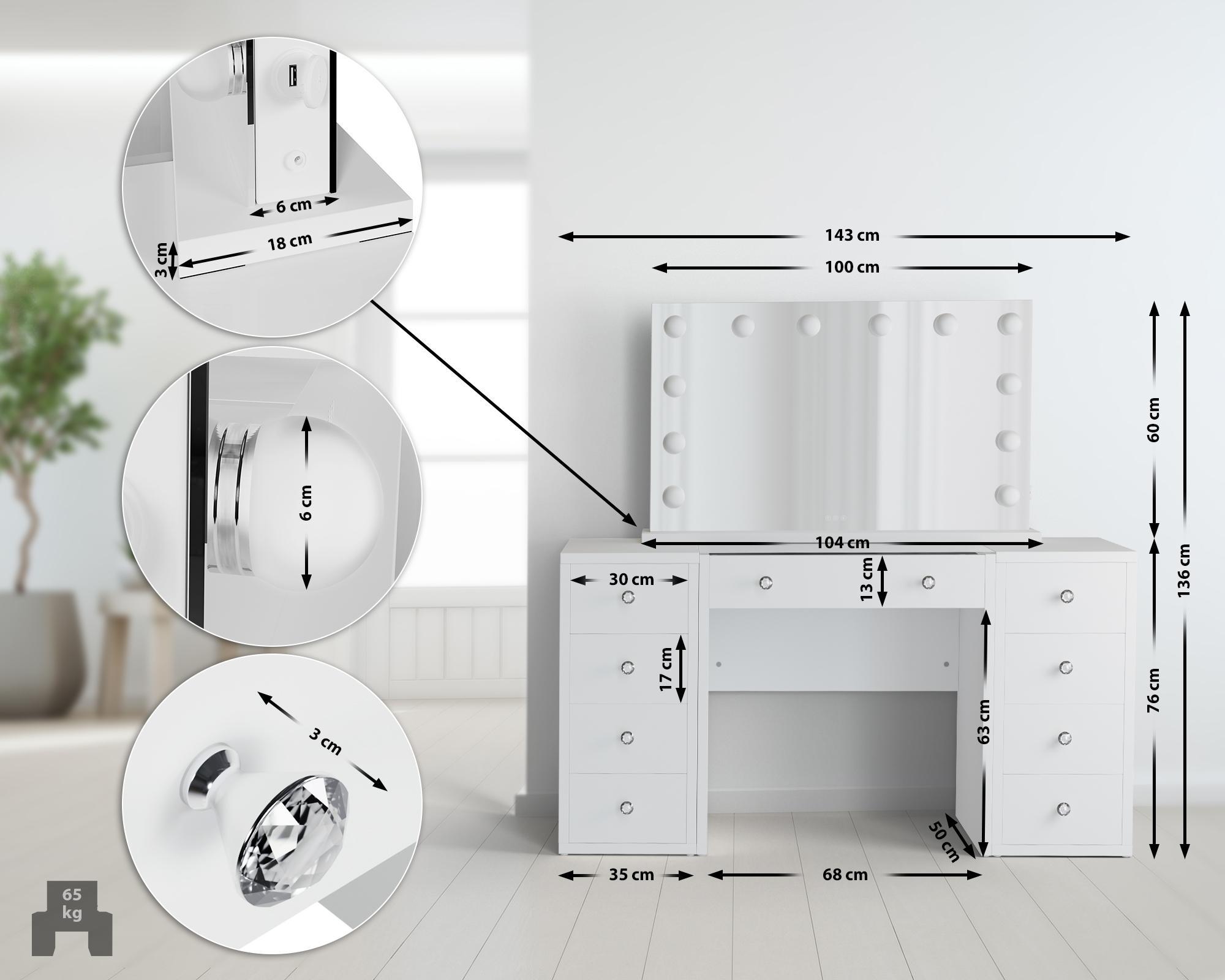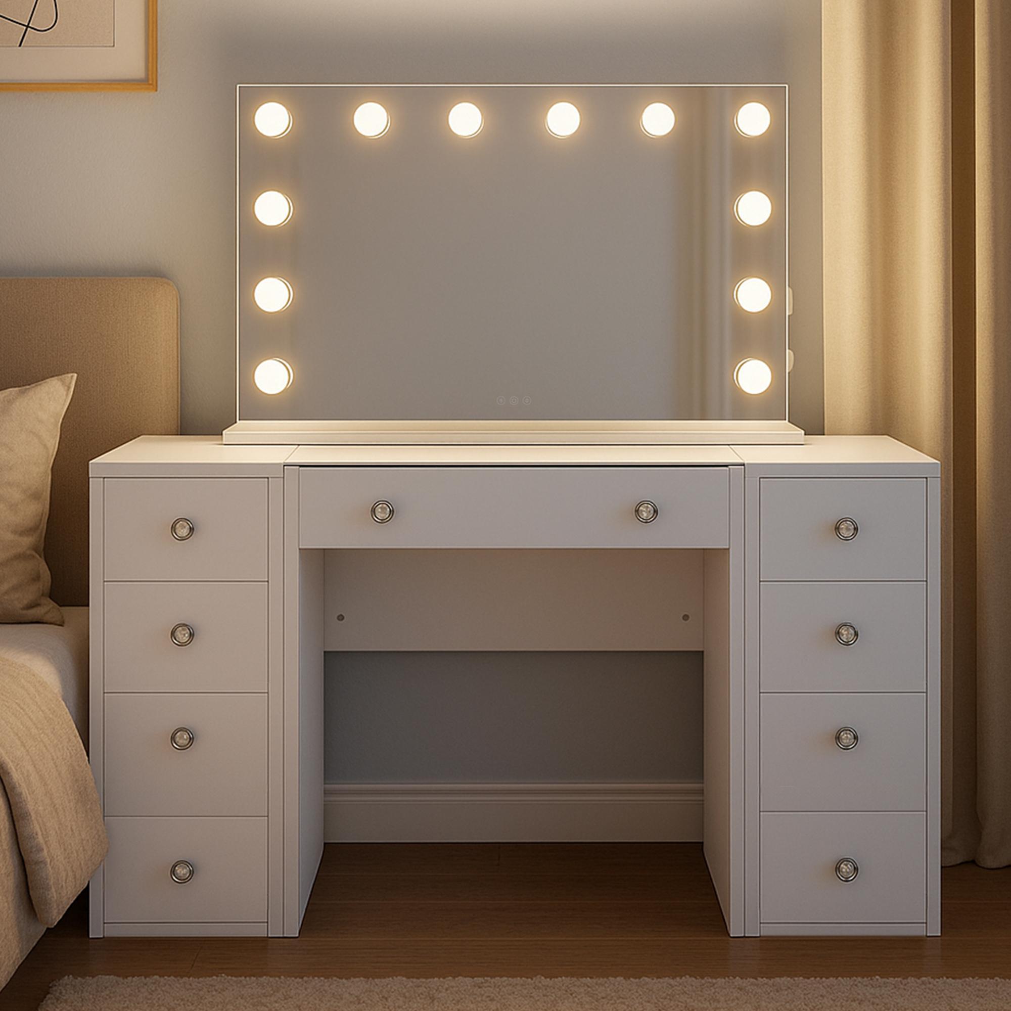 Coiffeuse - carré - Bois - 143 x 50 cm - Blanc - Tiline