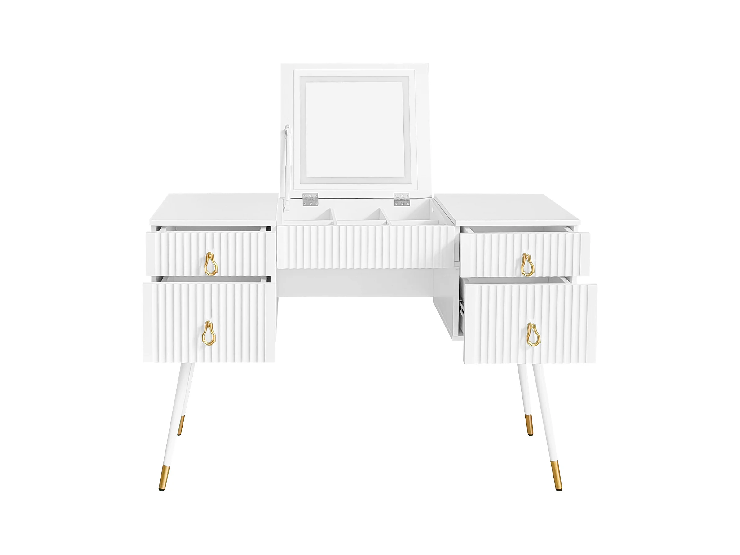Coiffeuse Comprend un miroir LED à luminosité réglable,Table de rangement à 4 tiroirs,Bureau univer,Sans chaises,Blanc