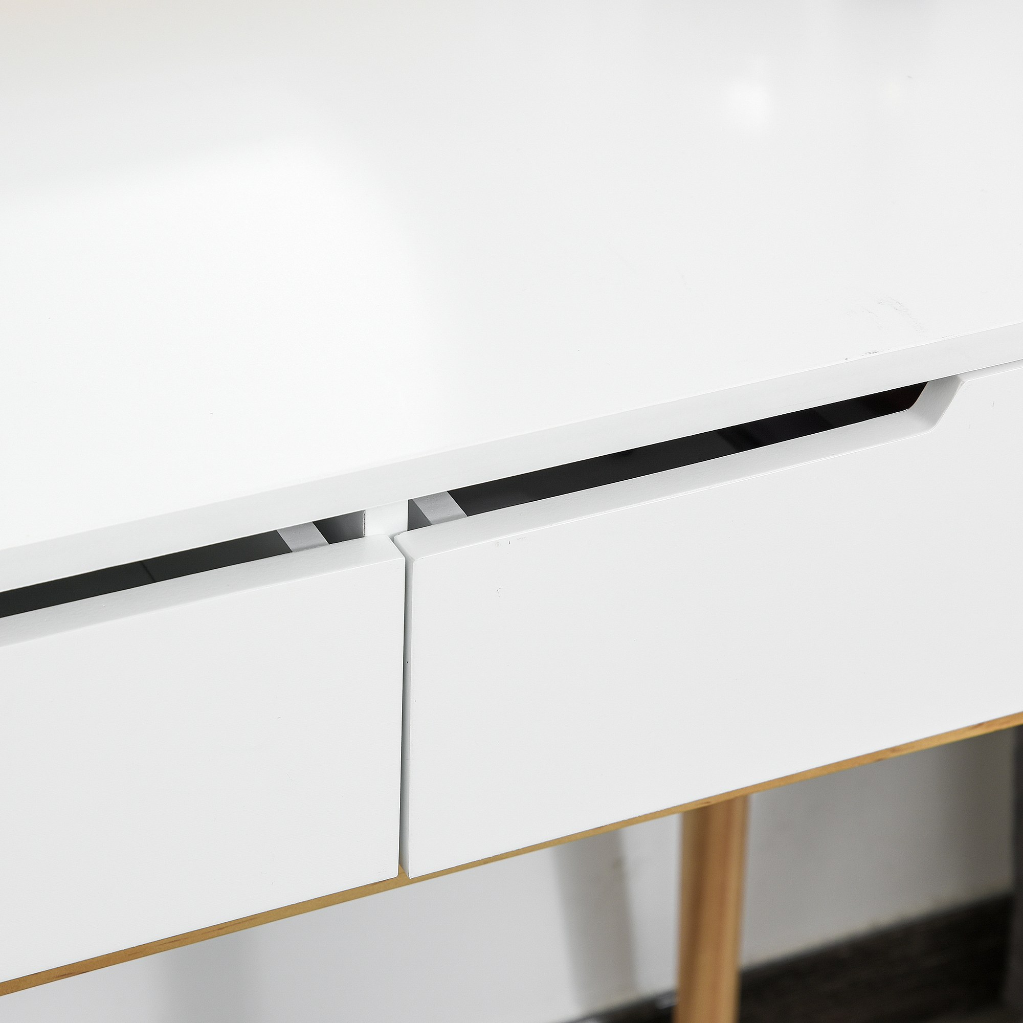Coiffeuse design scandinave table de maquillage avec miroir, 2 tiroirs et tabouret blanc pin clair