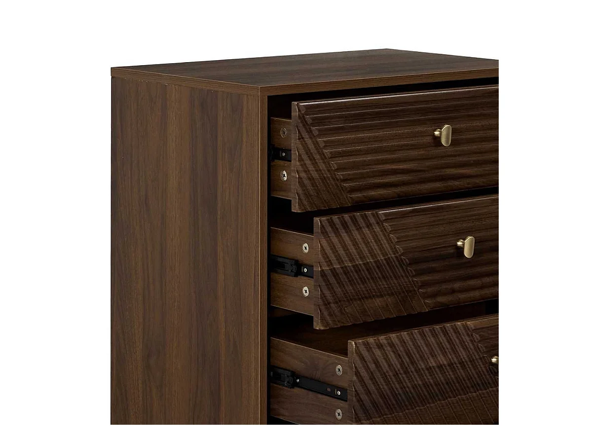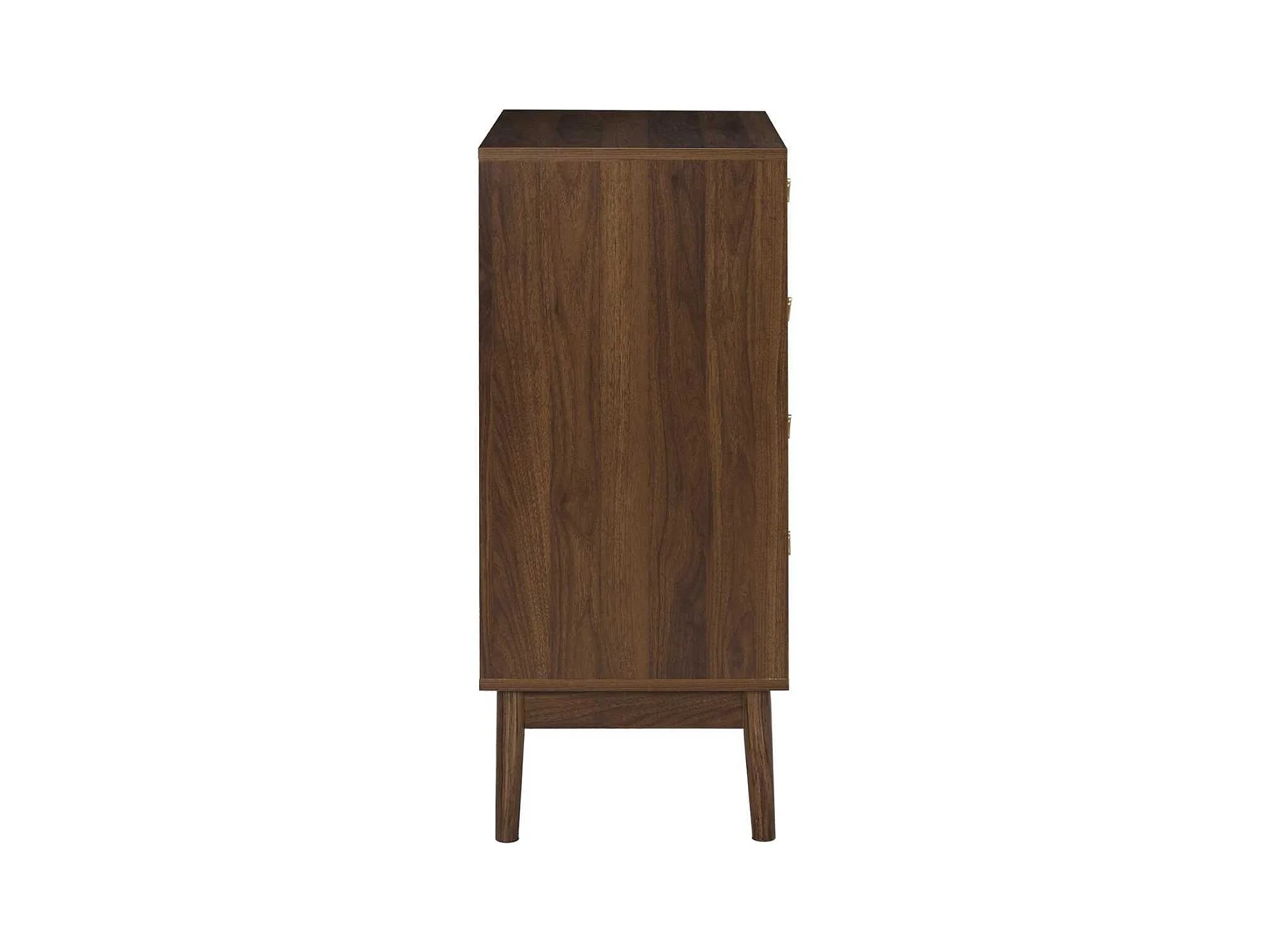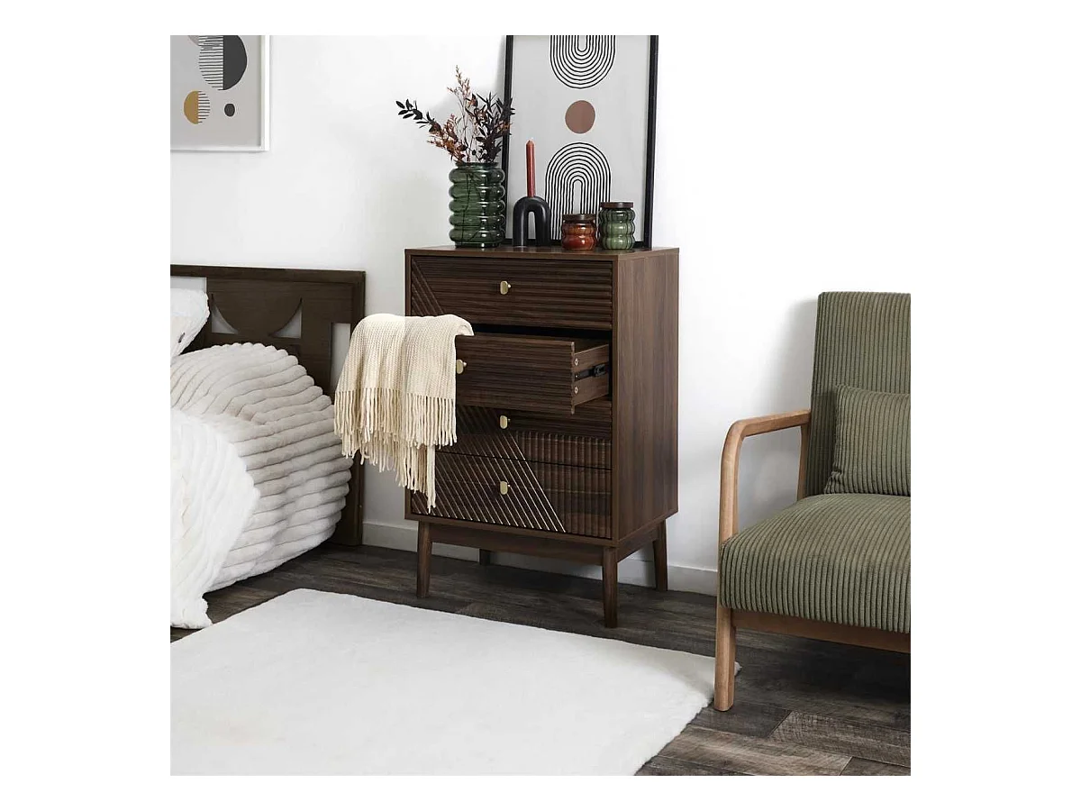 Commode 4 tiroirs en bois et MDF pieds en pin teinté chêne foncé - COLETTE