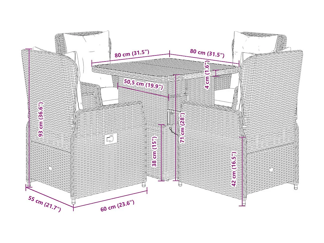 Coleville Ensemble à manger de jardin 5 pcs coussins gris résine tressée