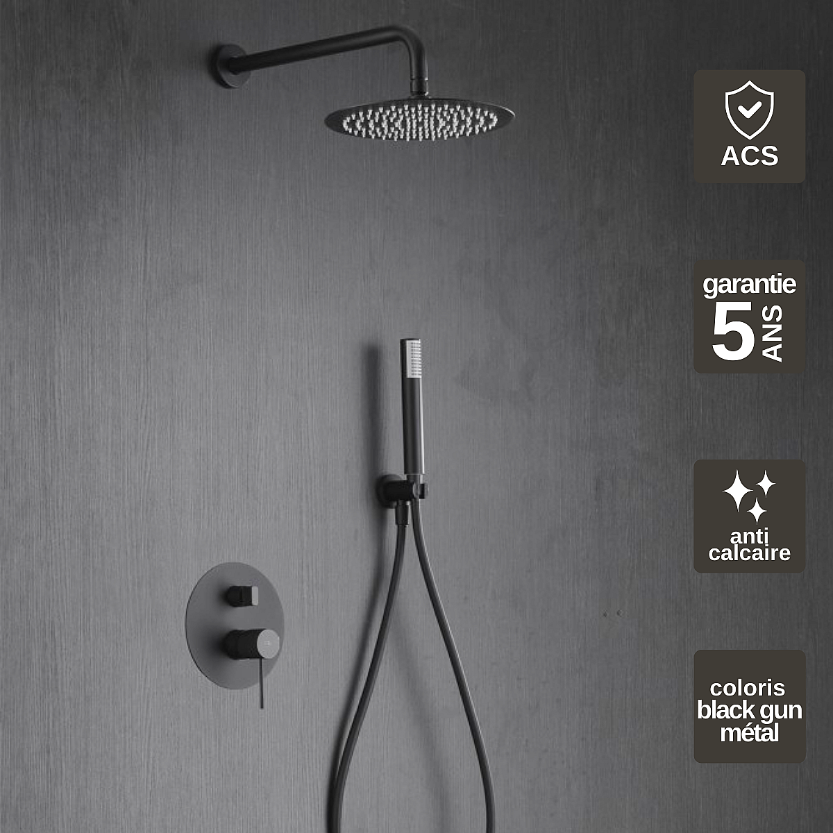 Colonne de Douche Encastrée noir métal anti-calcaire - Design Moderne et Économie d'eau - Kit Complet LINE IMEX
