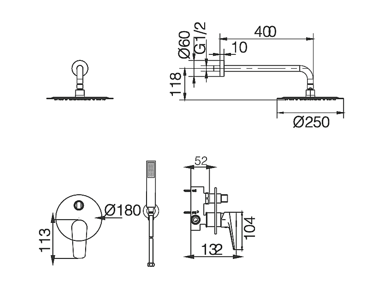 Colonne de Douche Encastrée chromé anti-calcaire - Design Moderne et Économie d'eau - Kit Complet BELGICA IMEX