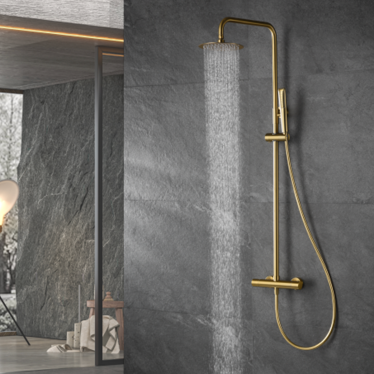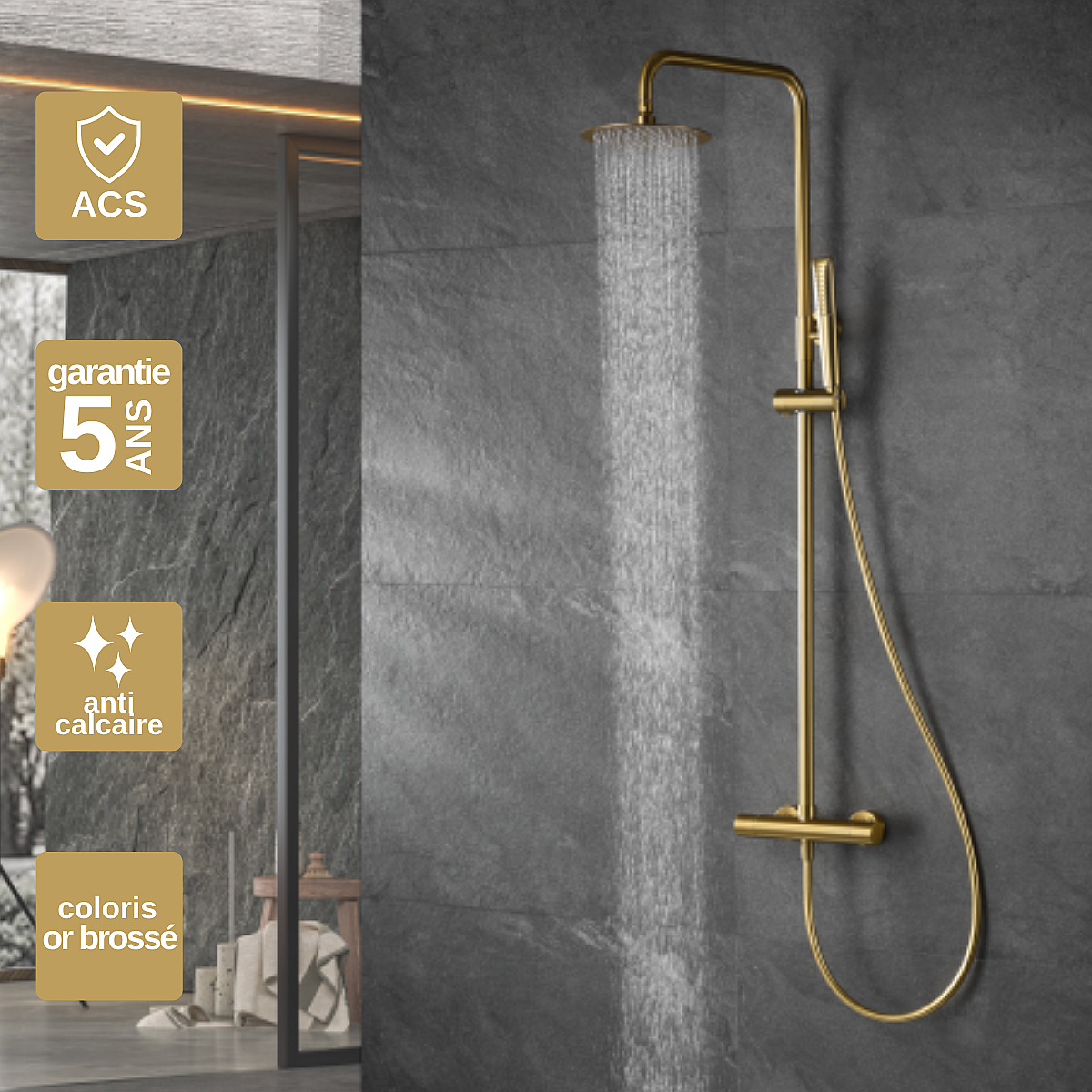 Colonne de Douche avec Mitigeur Thermostatique or brossé anti-calcaire - Design Moderne - NAPOLES IMEX