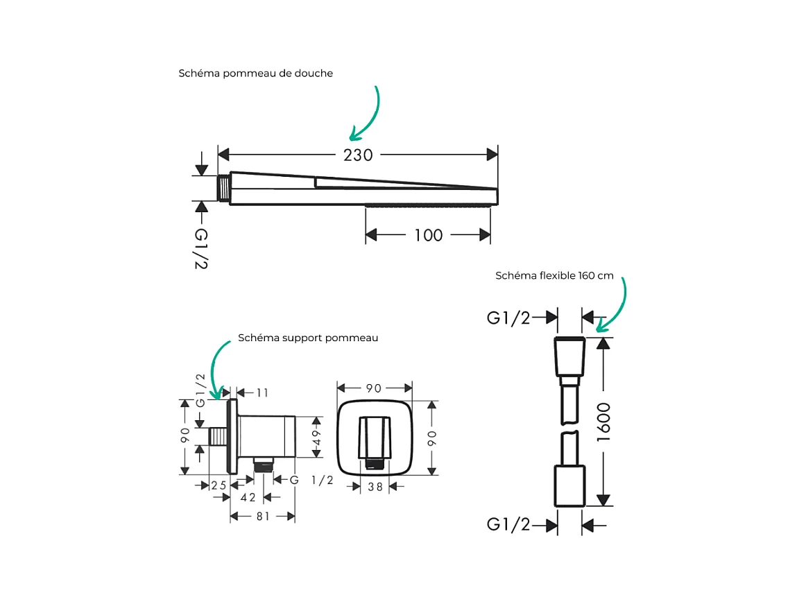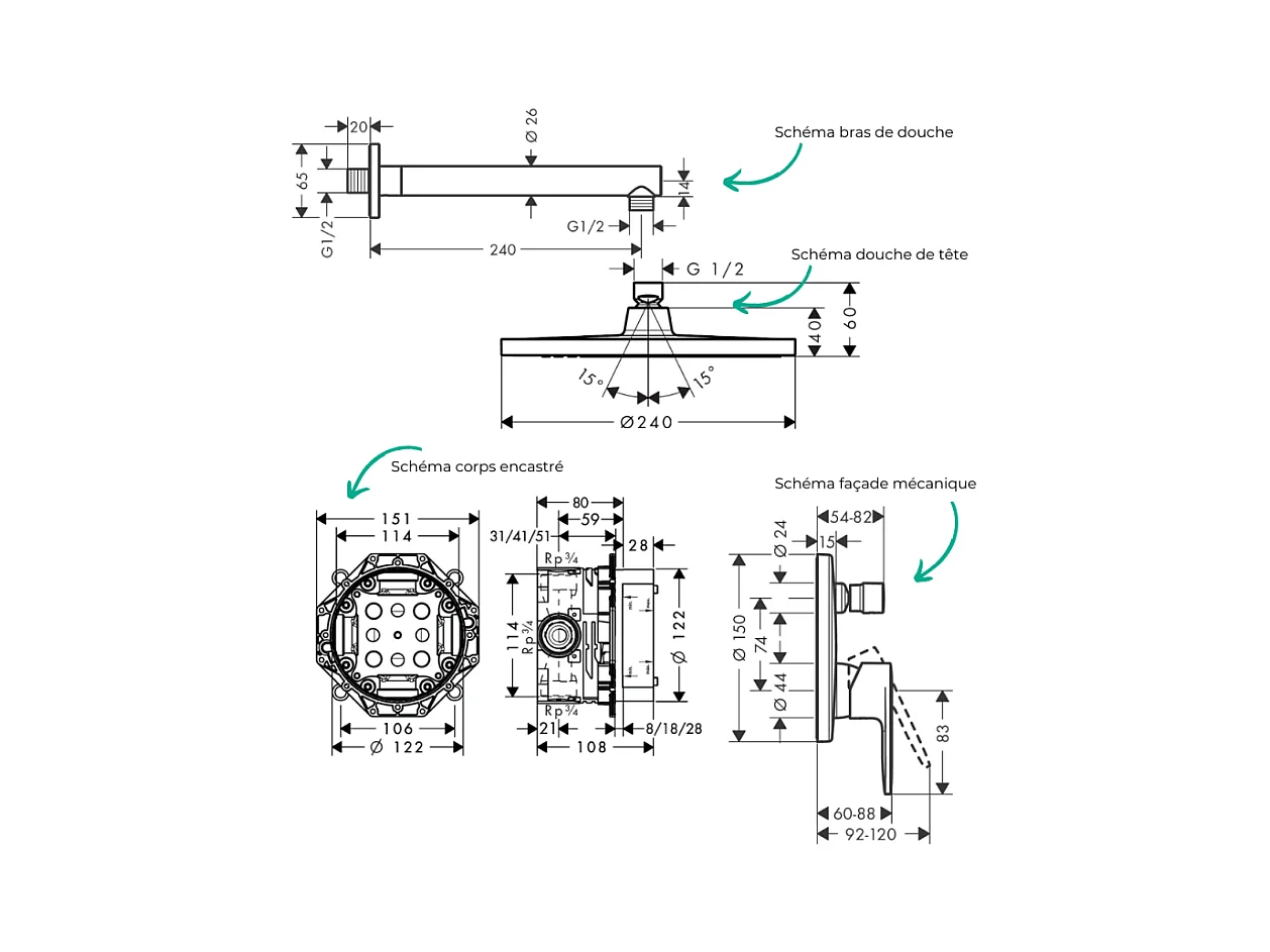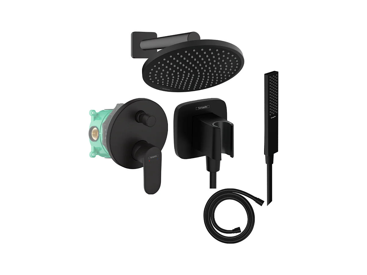 Colonne de douche encastrée mécanique HANSGROHE Vernis Blend Douche de tête Crometta Flexible Isiflex Douchette PulsifyE noir