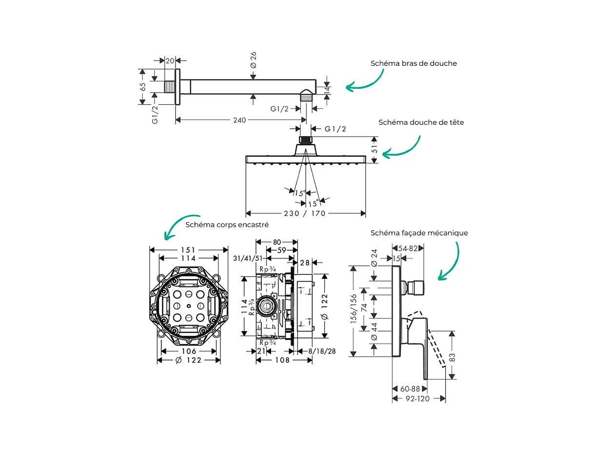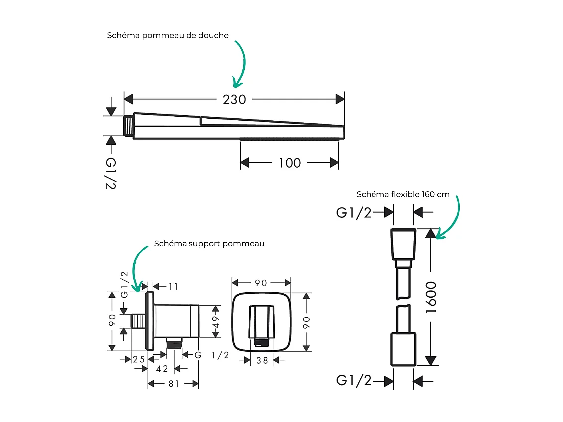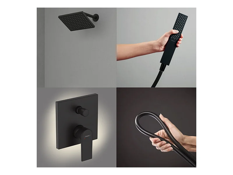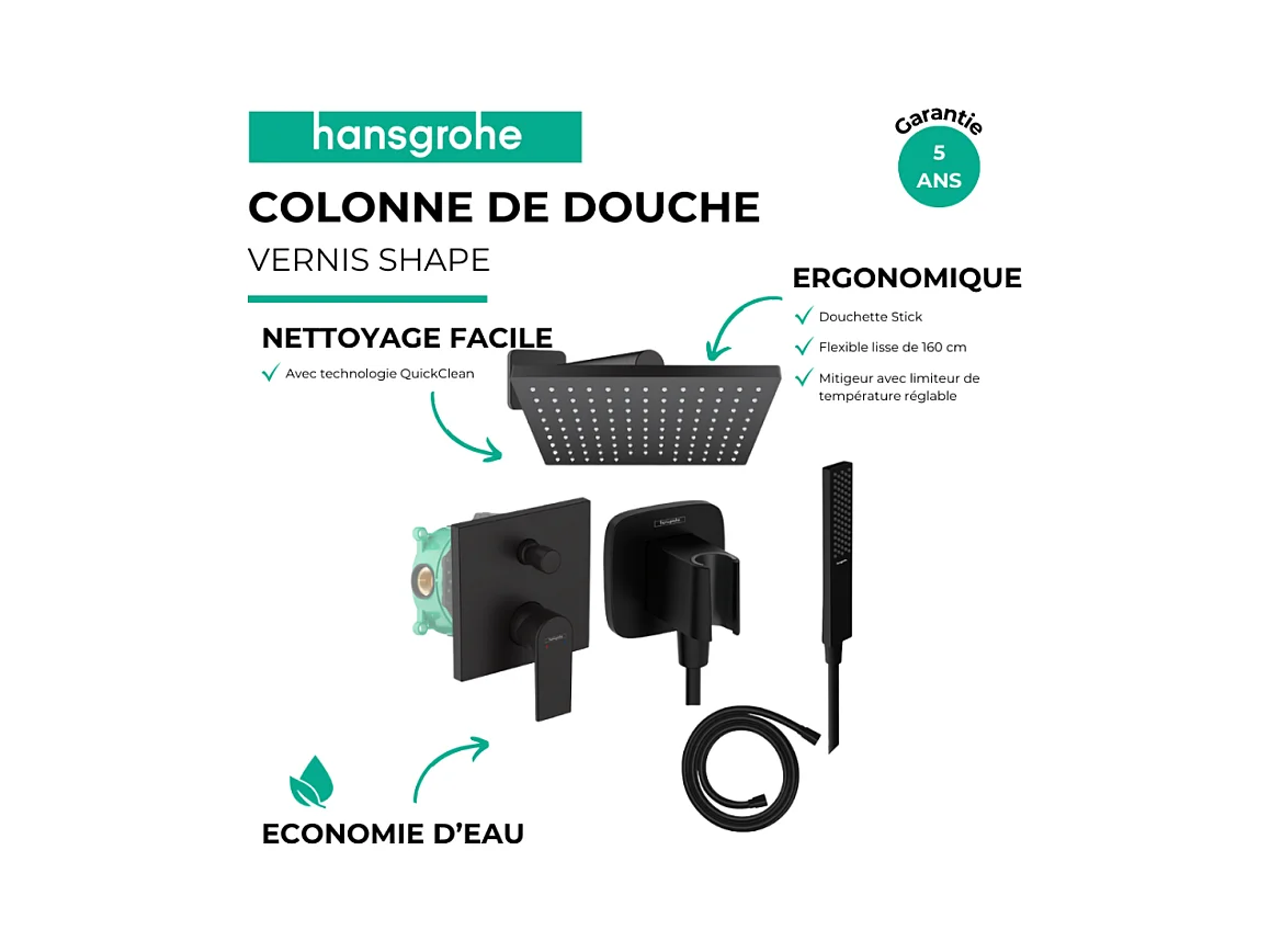 Colonne de douche encastrée mécanique HANSGROHE Vernis Shape Douche de tête Vernis Shape Flexible Isiflex Douchette PulsifyE noir