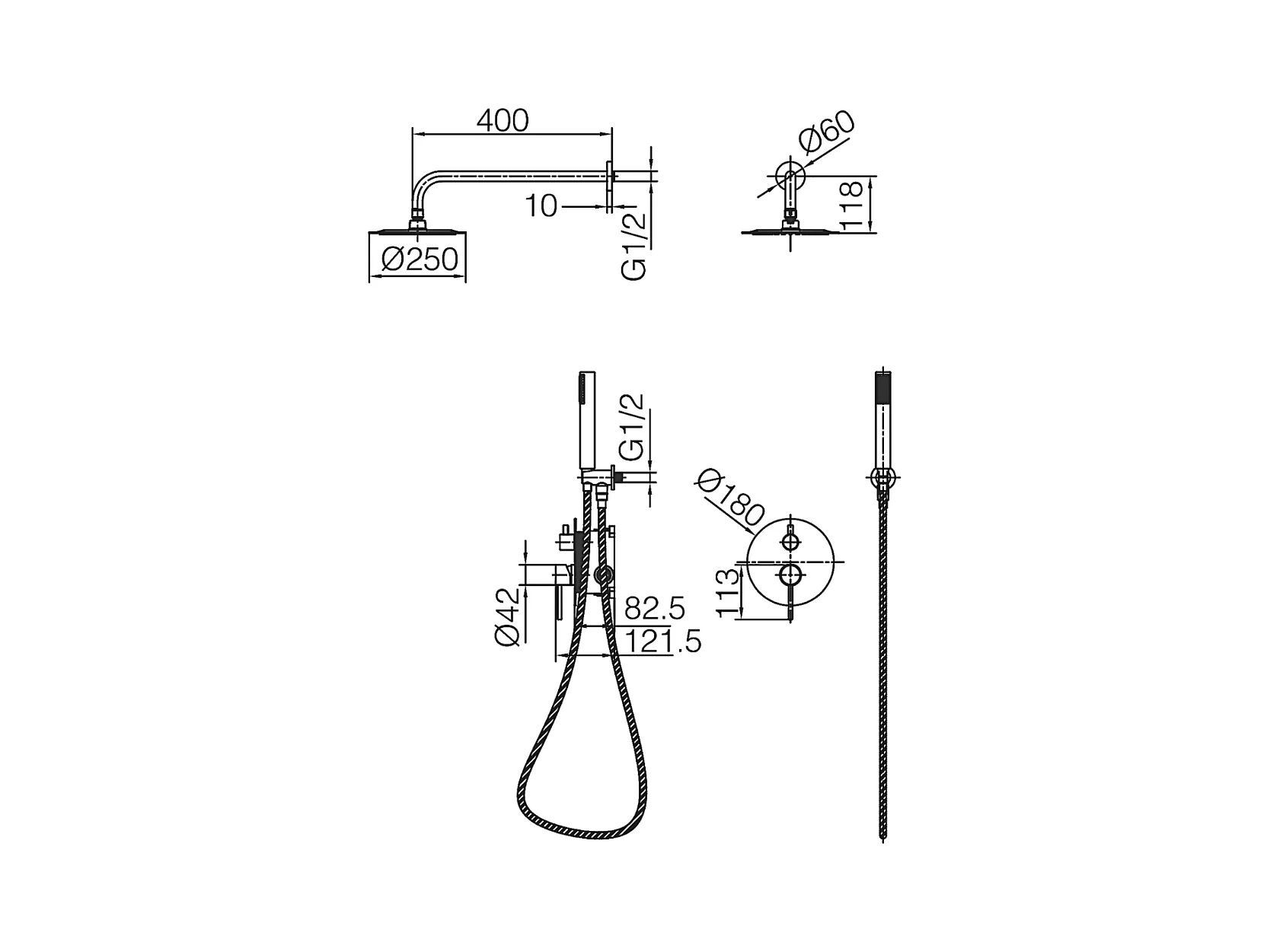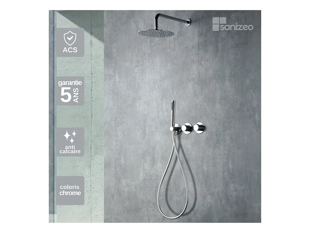 Colonne de Douche Encastrée avec Mitigeur Thermostatique chromé anti-calcaire - Design Moderne - ASSEN IMEX