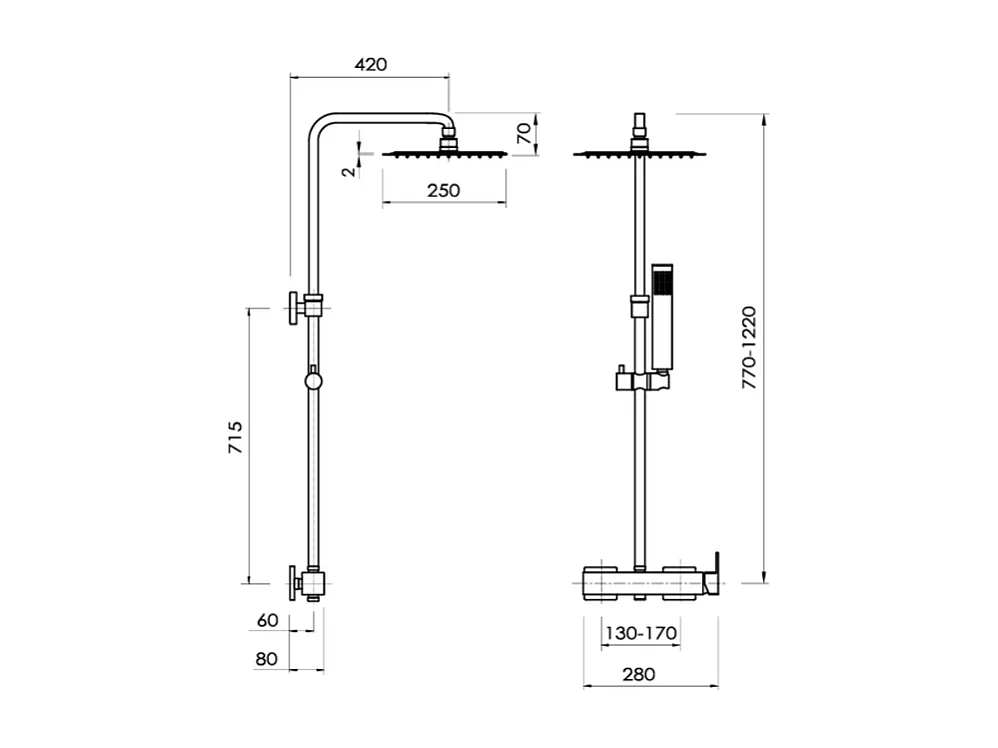 Colonne de douche mitigeur CUBO Chromé brillant