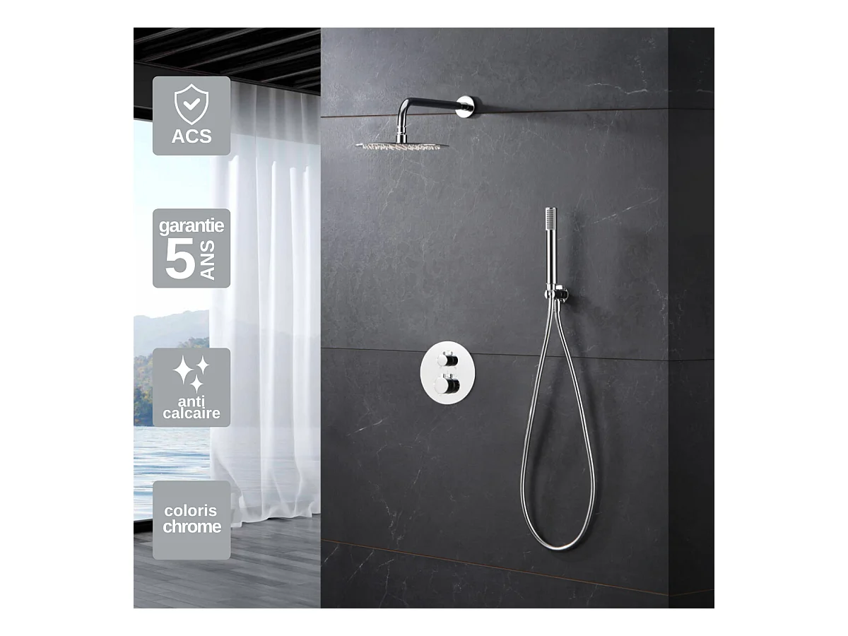 Colonne de Douche Encastrée Thermostatique Anti-Calcaire Chrome IMEX MONZA GTM039