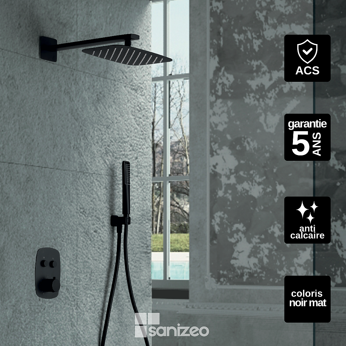 Colonne de Douche Encastrée noir mat anti-calcaire - Design Moderne et Économie d'eau - Kit Complet HIDRA IMEX